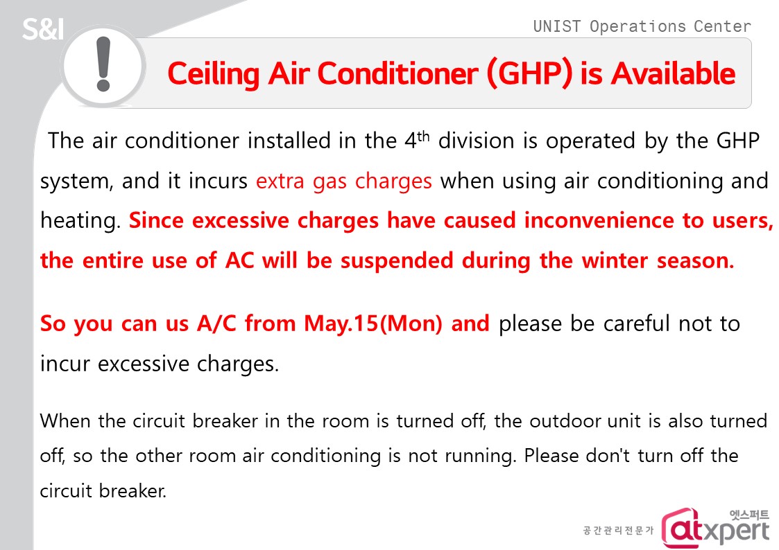| 769 | 천장 냉난방기[GHP] 하절기 사용 가능 조치 안내 (Ceiling A.. | 2023-05-15 | 1476 |