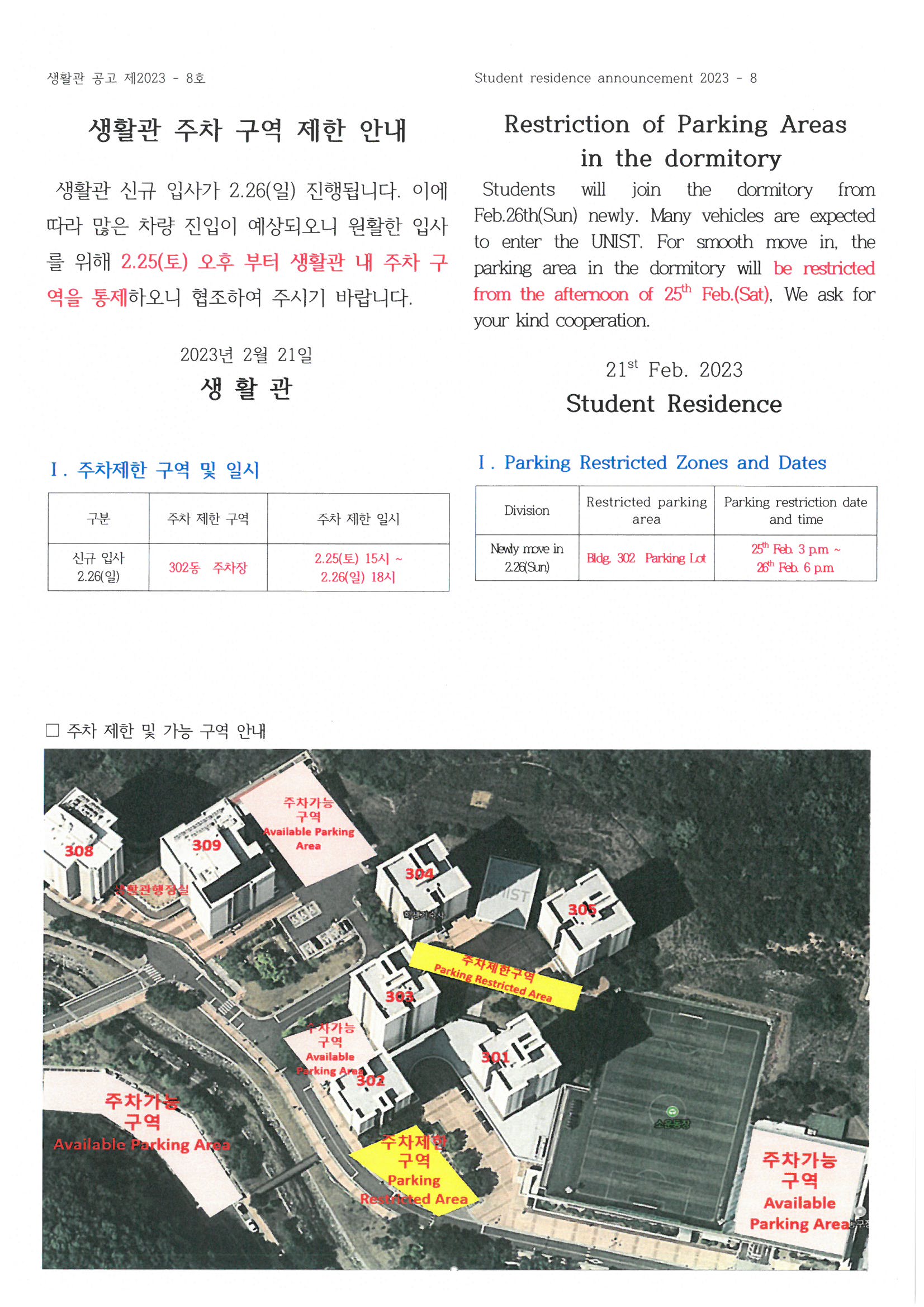 | 742 | [No.2023-8] 302동 주차구역 주차 제한 안내 Restriction of.. | 2023-02-21 | 1095 |