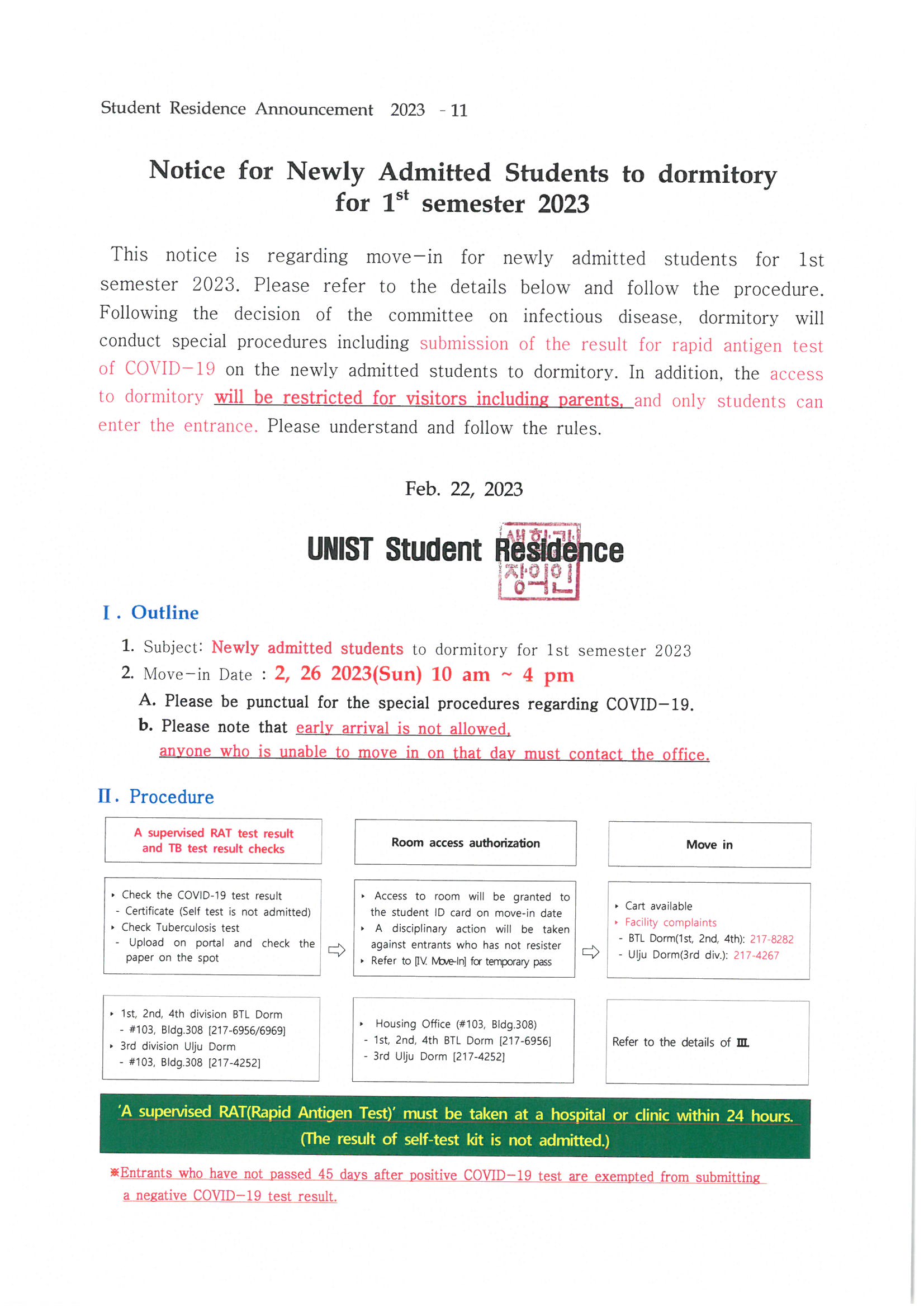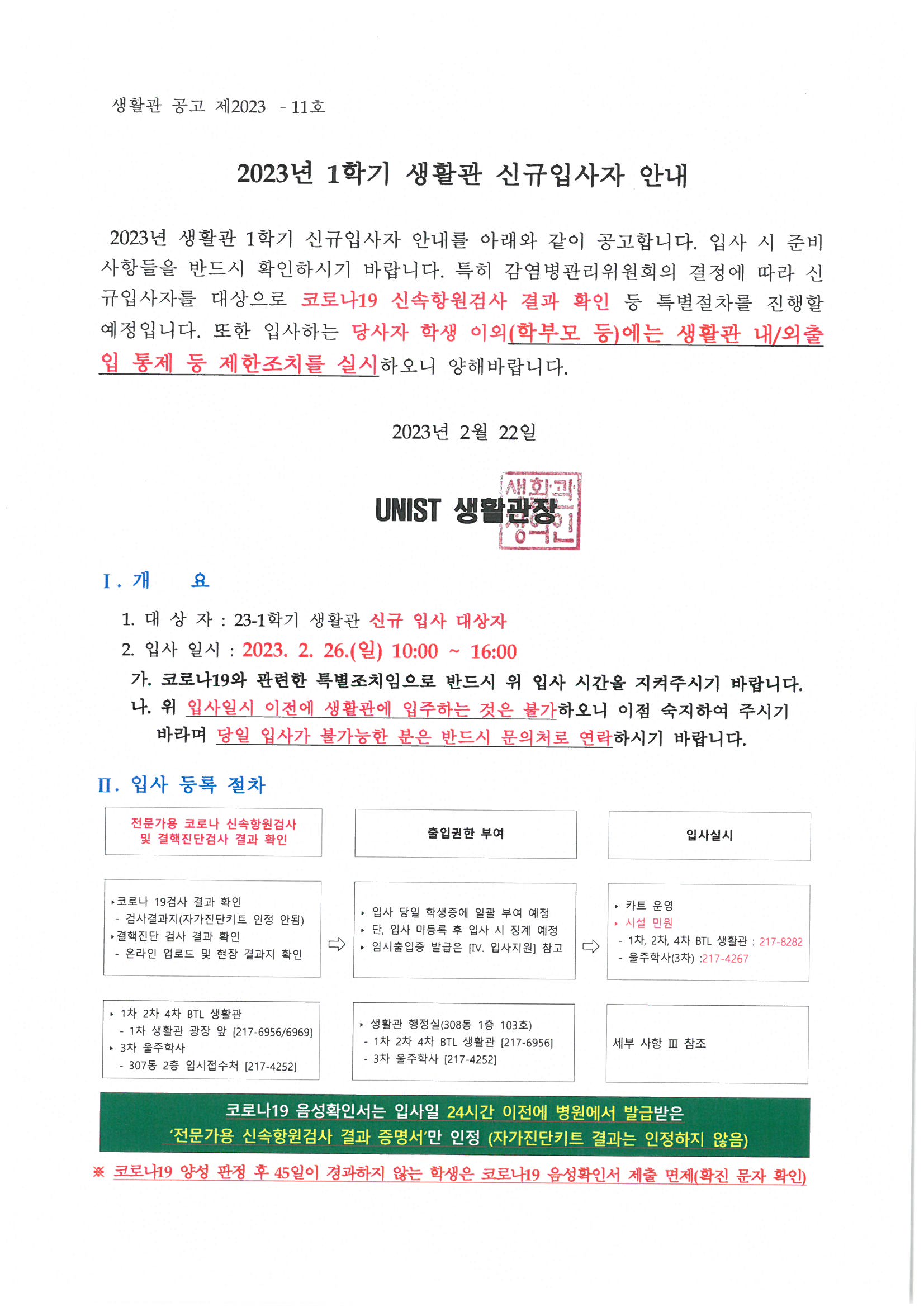 | 745 | [No. 2023-11] 2023년 1학기 생활관 신규입사자 안내 Notic.. | 2023-02-22 | 3961 |