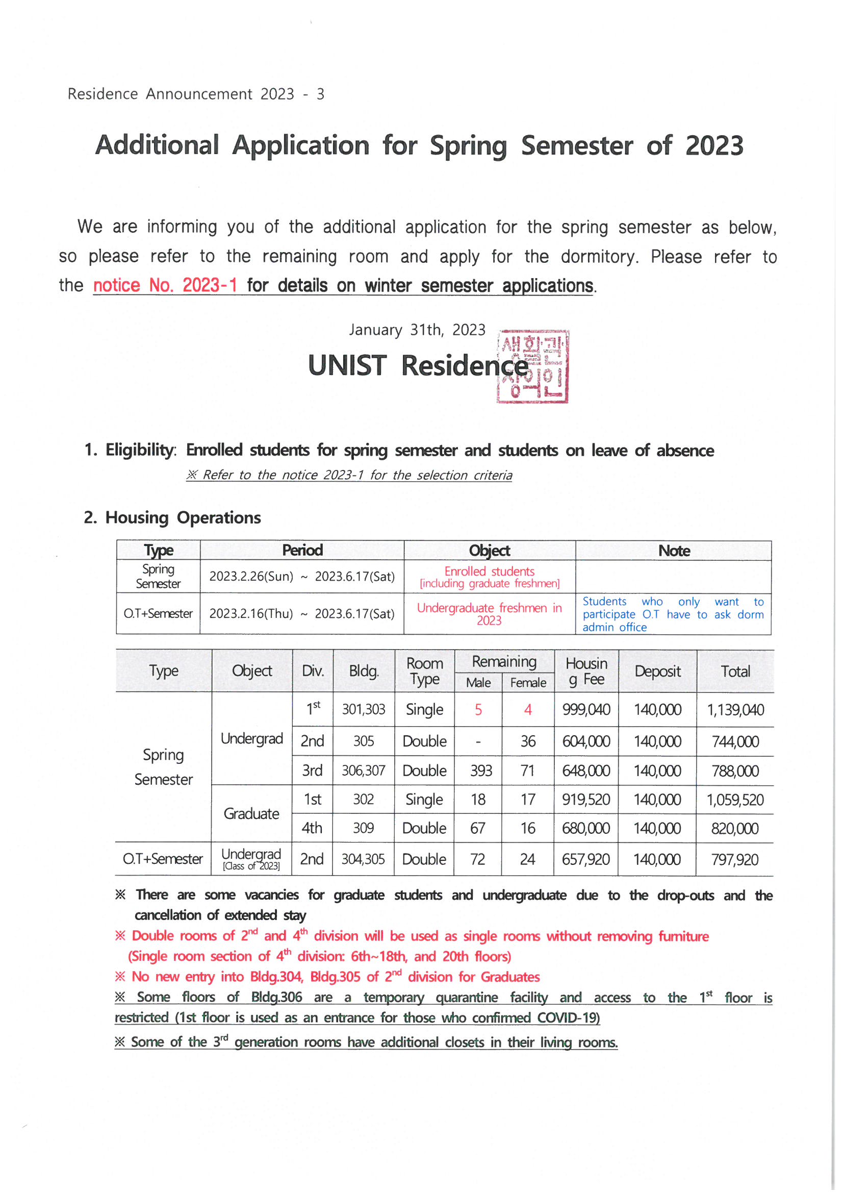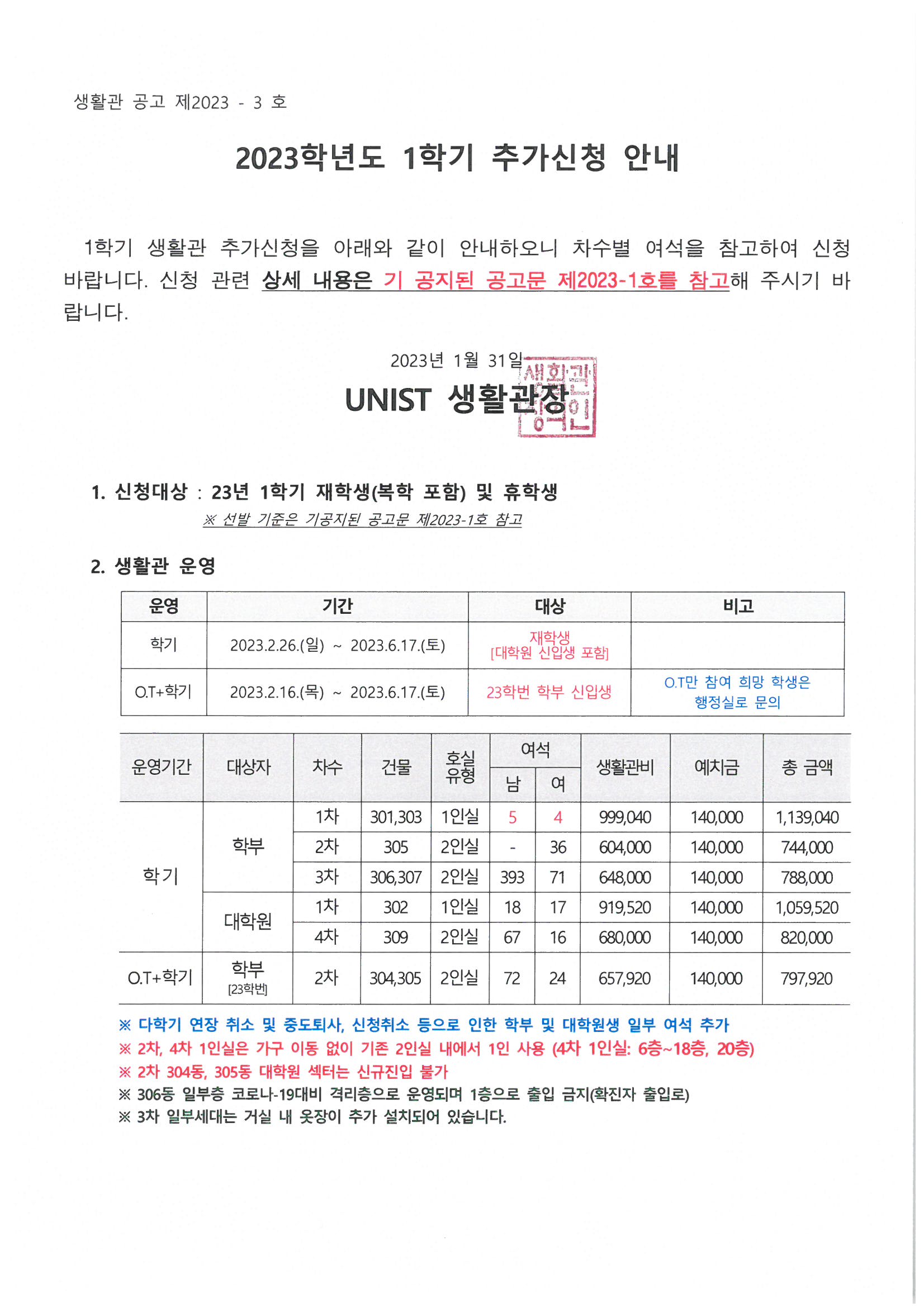 | 737 | 2023년도 생활관 가이드북 안내 The 2023 Dormitory Guidebo.. | 2023-02-09 | 2797 |