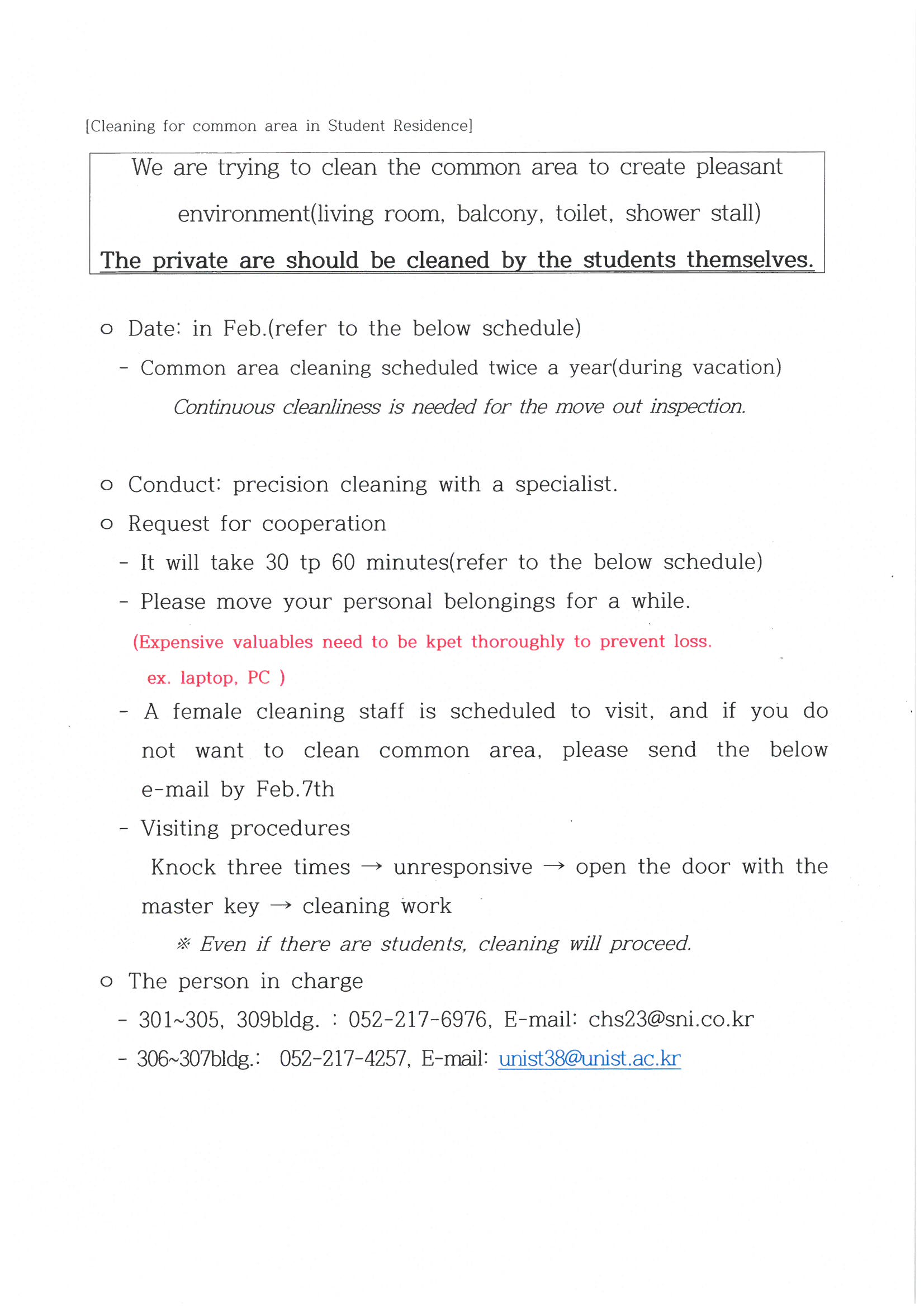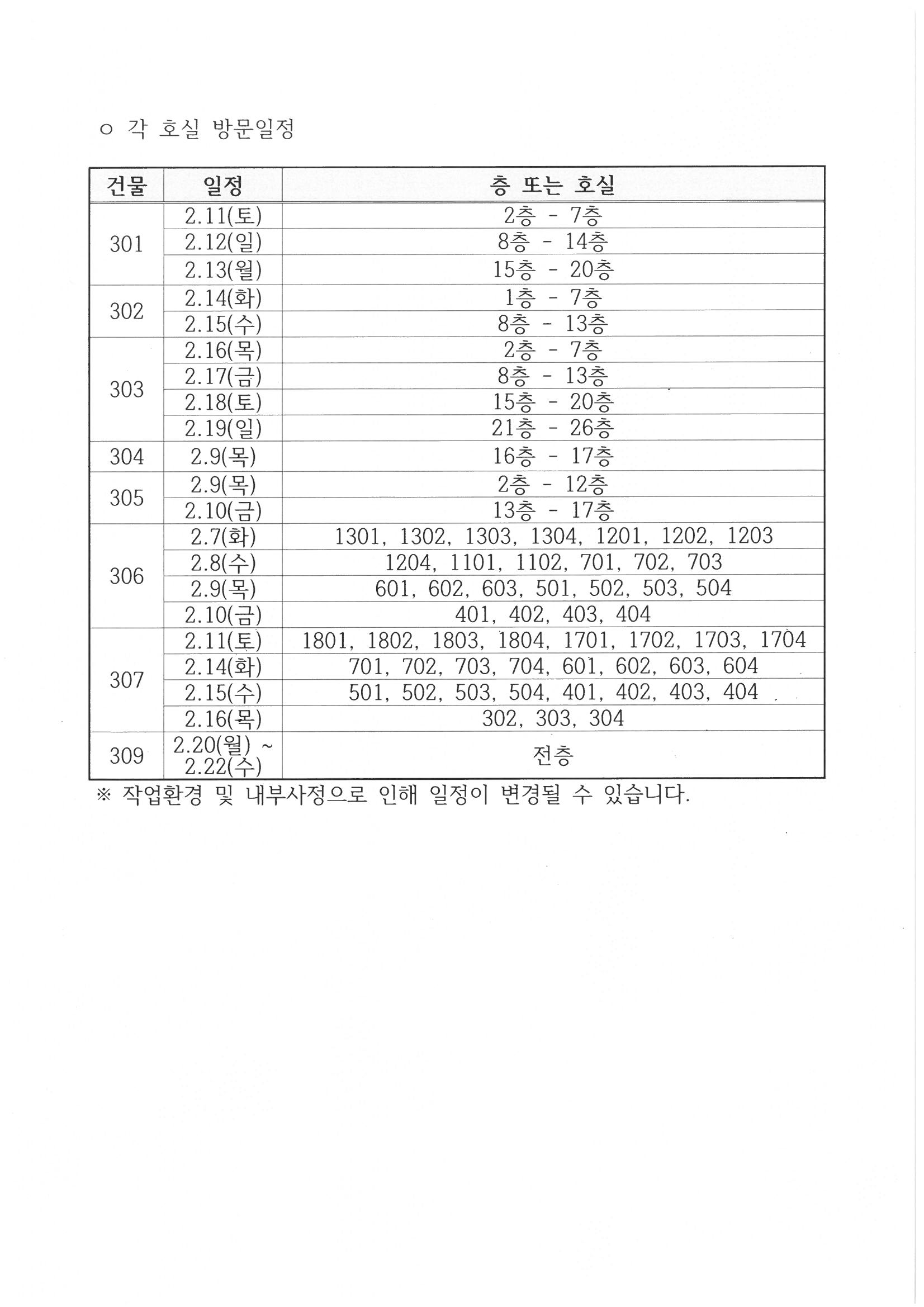 | 732 | (수정)공용구역청소공지(Cleaning for common area) | 2023-02-03 | 1836 |