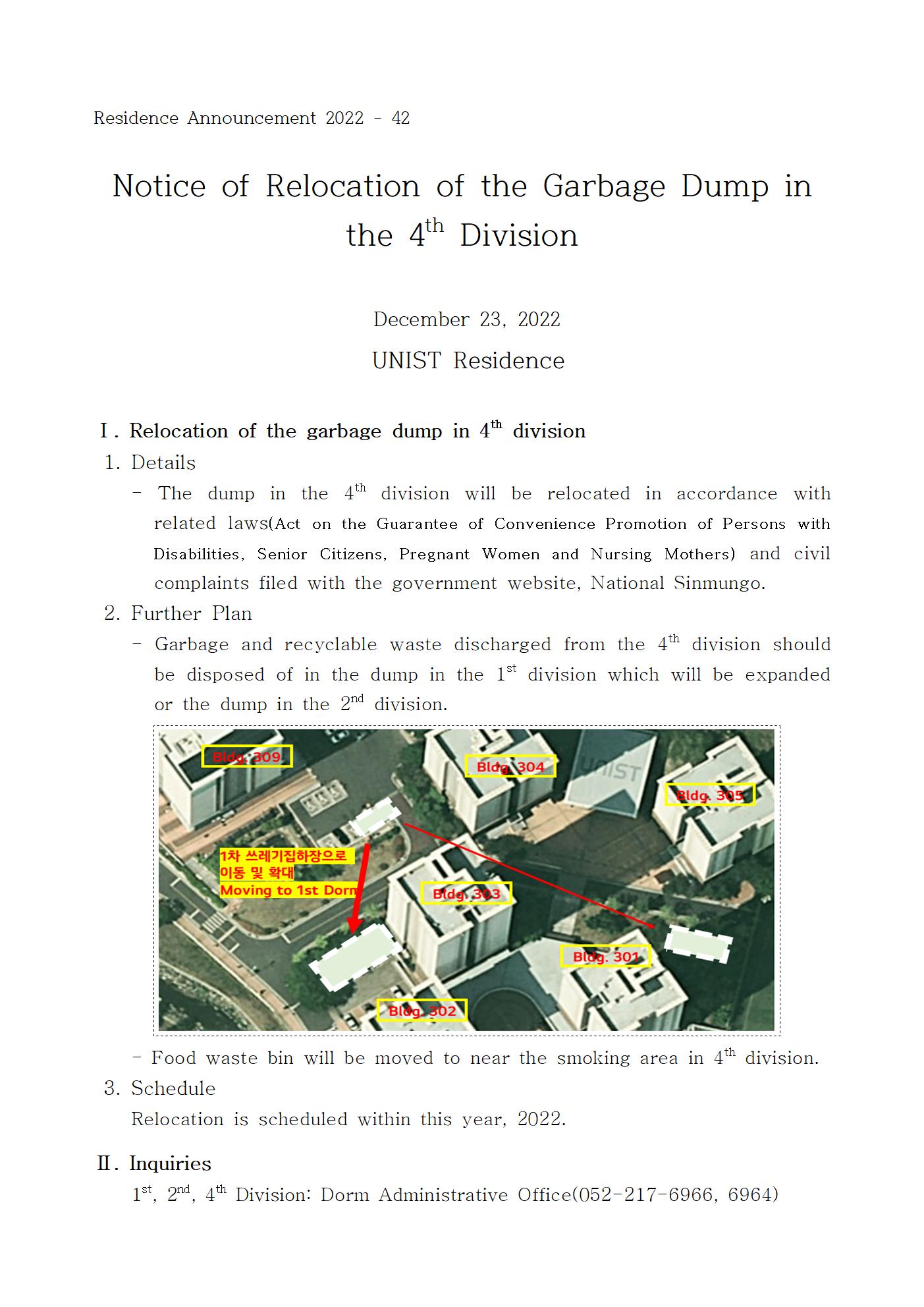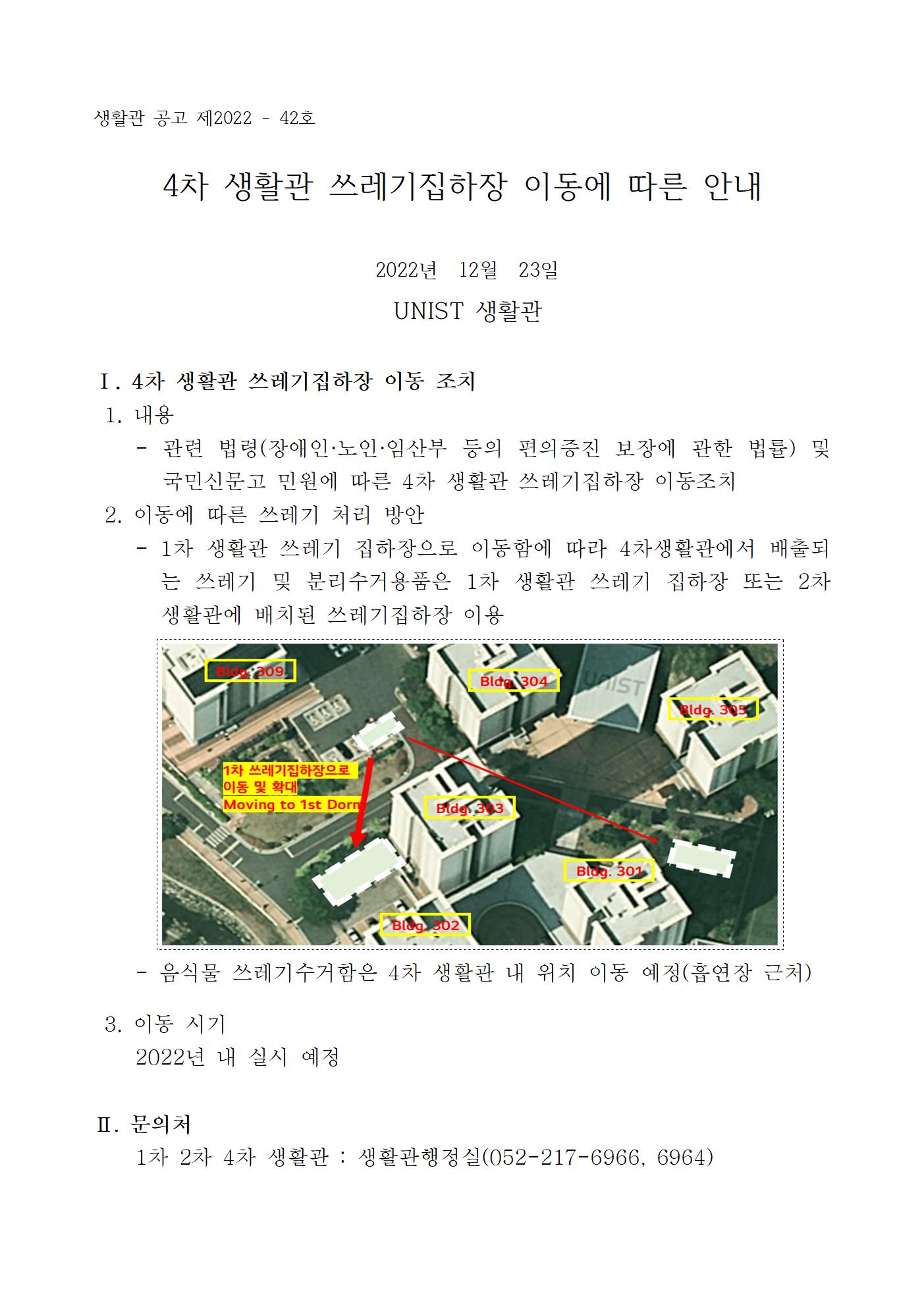 | 720 | [No.2022-42] 4차 생활관 쓰레기집하장 이동에 따른 안내(No.. | 2022-12-23 | 1540 |