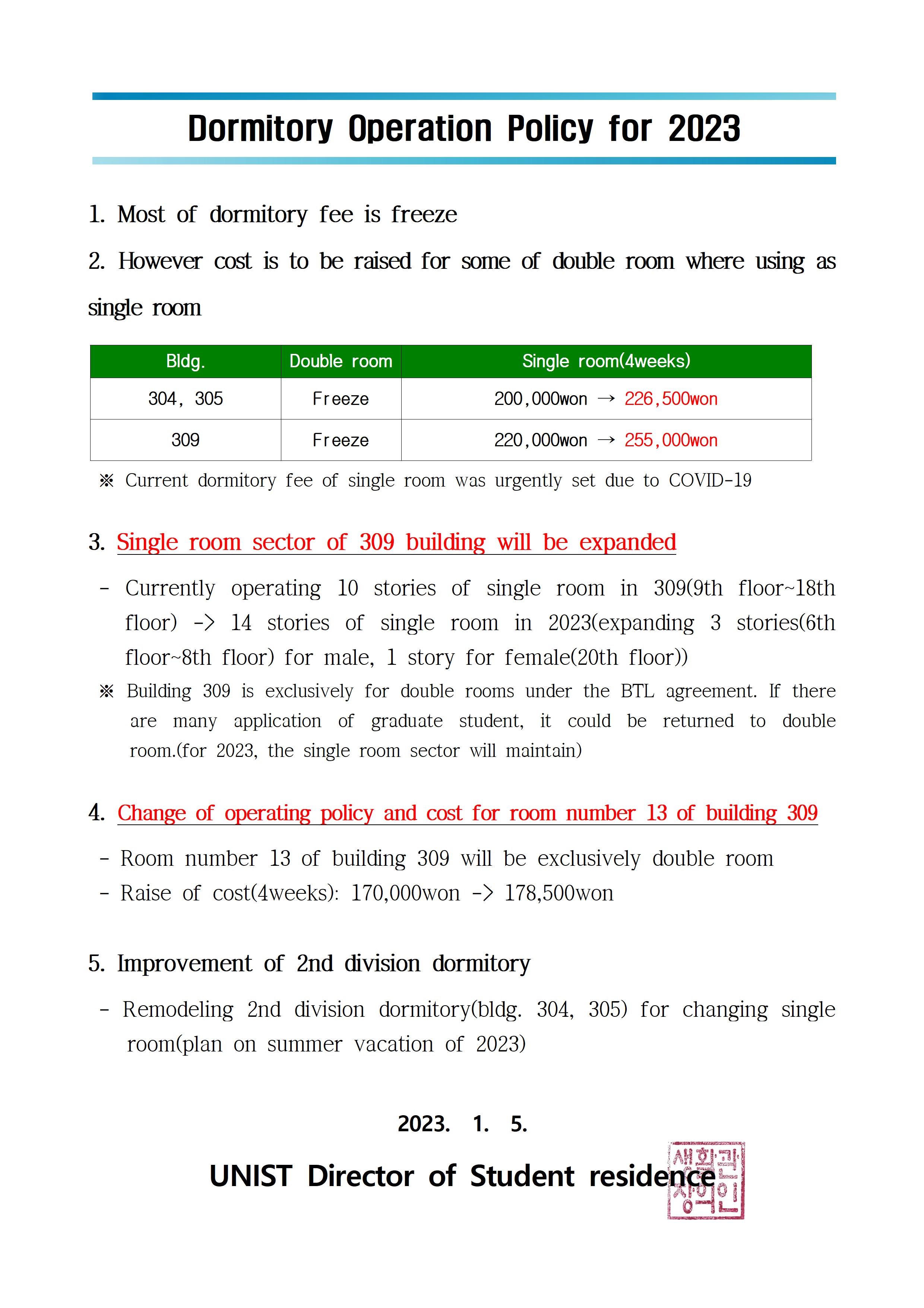 | 722 | 2023학년도 생활관 운영 정책 안내(Dormitory Operation Pol.. | 2023-01-05 | 3126 |