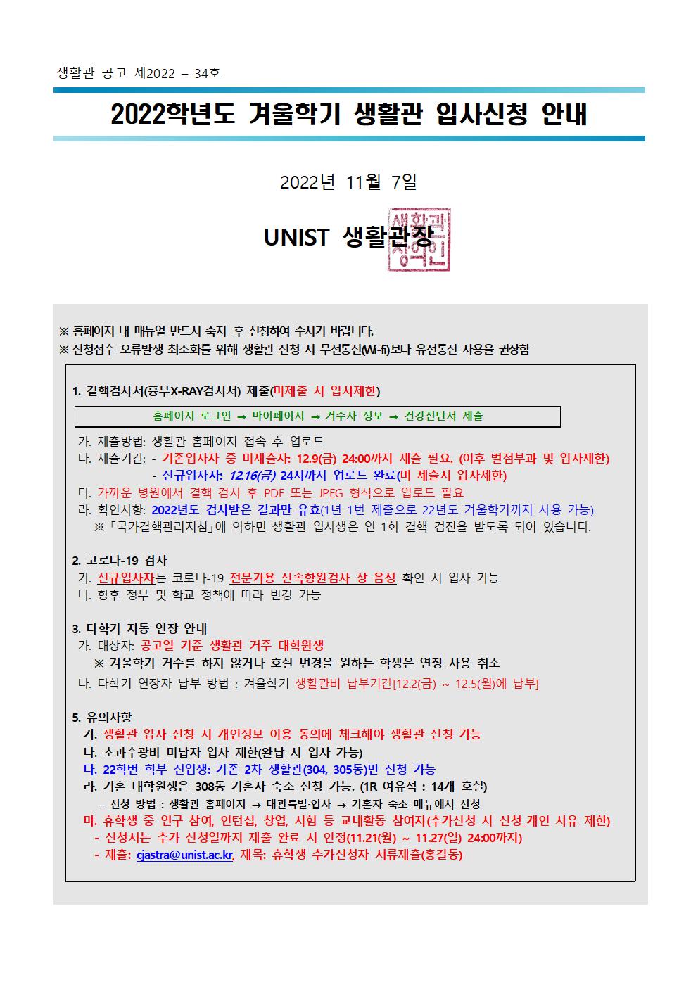 | 700 | (No.2022-34) 2022학년도 겨울학기 생활관 입사신청 안내(Ap.. | 2022-11-07 | 6078 |