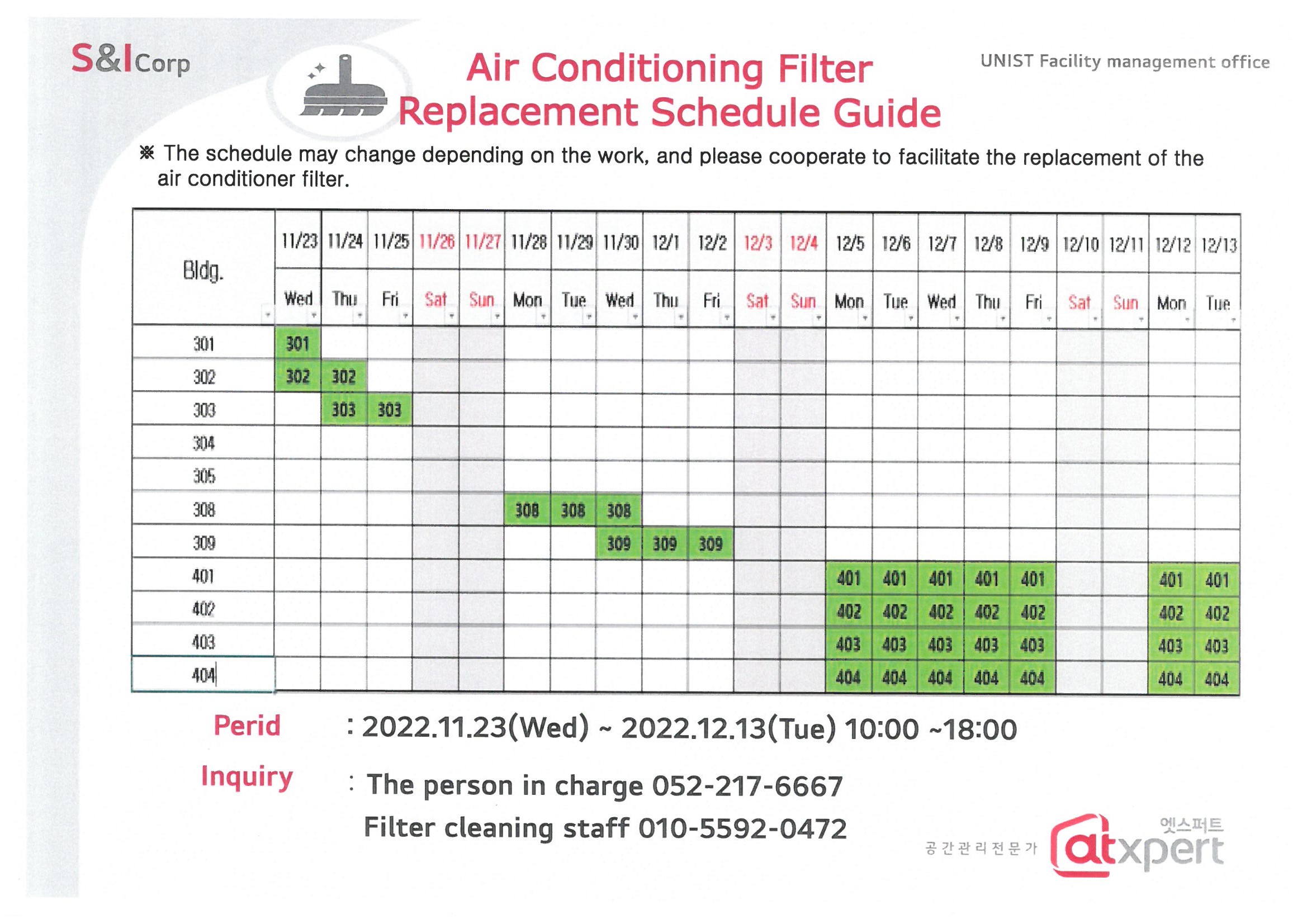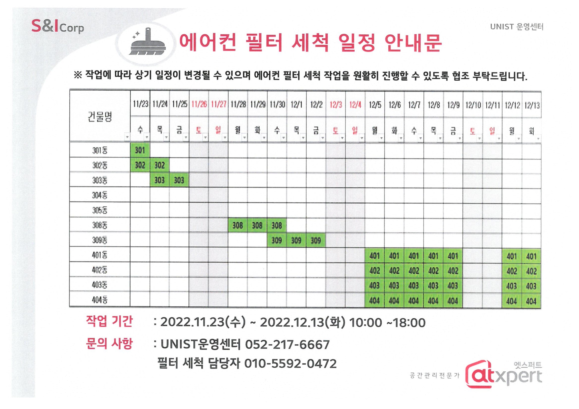 | 701 | 22년 하반기 에어컨 필터 세척 일정 (Air Conditioning Filt.. | 2022-11-08 | 1700 |