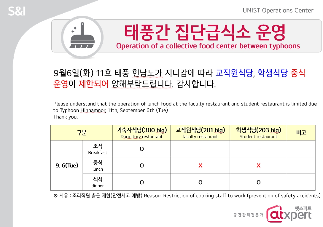 | 681 | 태풍간 집단급식소 운영(Operation of a collective food ce.. | 2022-09-05 | 1027 |