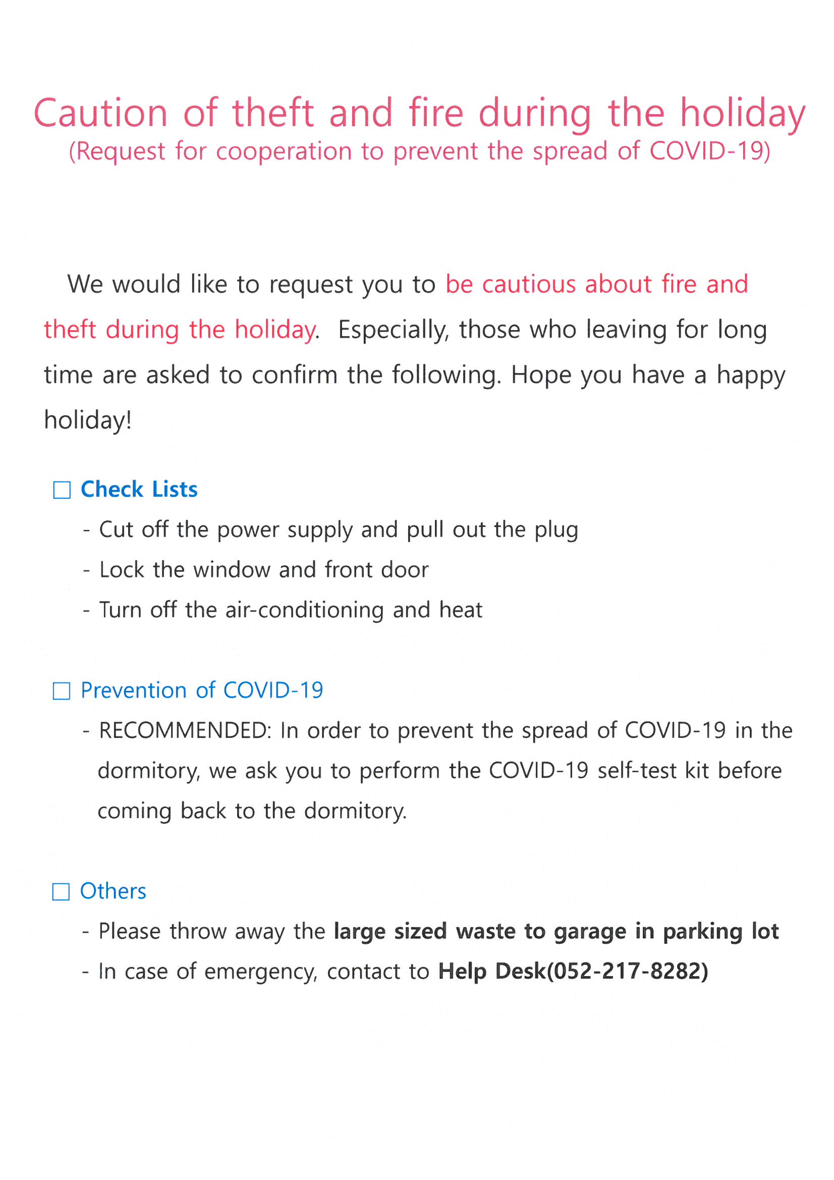 | 685 | 생활관 추석연휴 중 화재 및 도난 주의 안내(코로나 확산방.. | 2022-09-08 | 1002 |