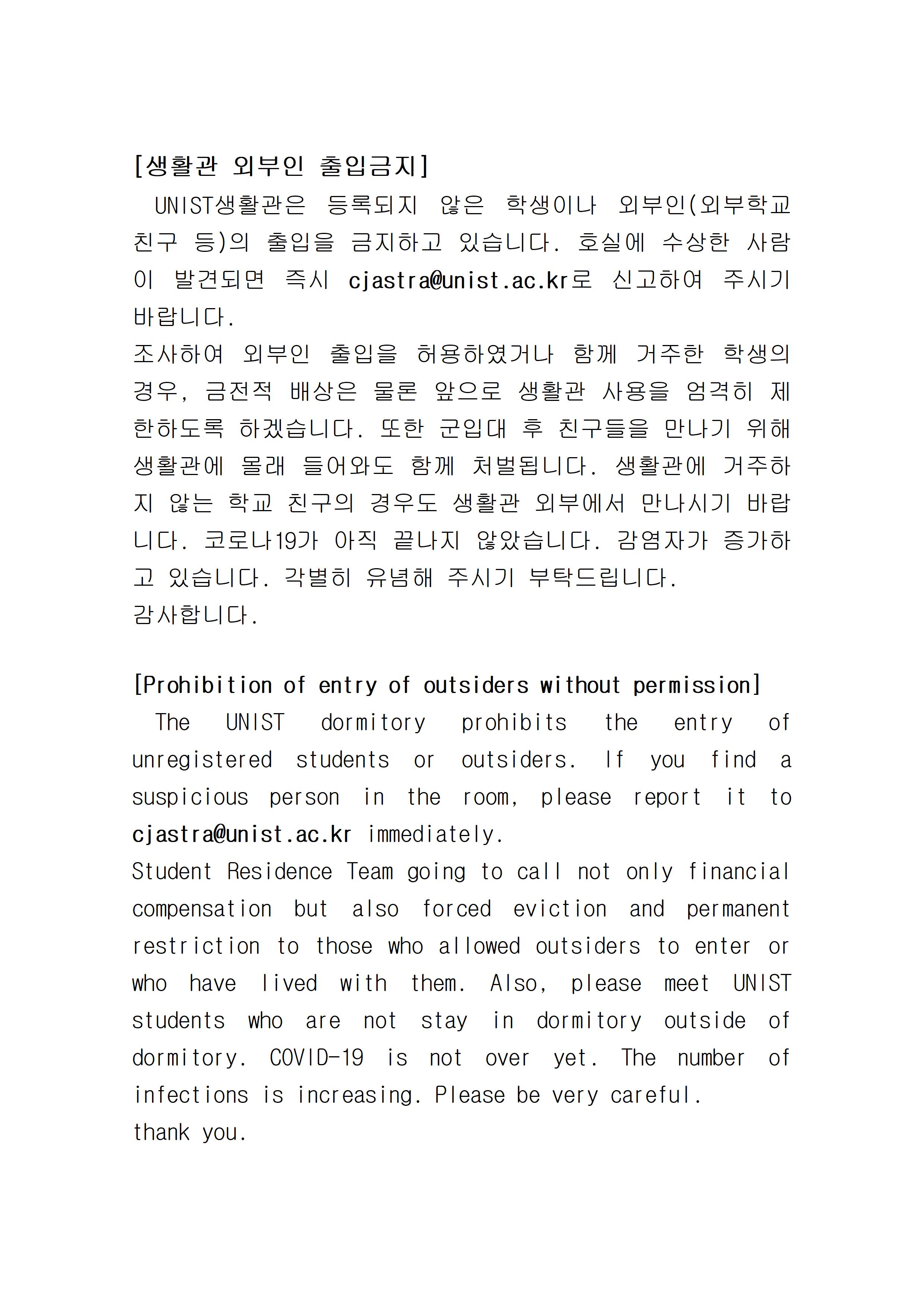 | 686 | 생활관 외부인 출입금지[Prohibition of entry of outsiders.. | 2022-09-08 | 1746 |
