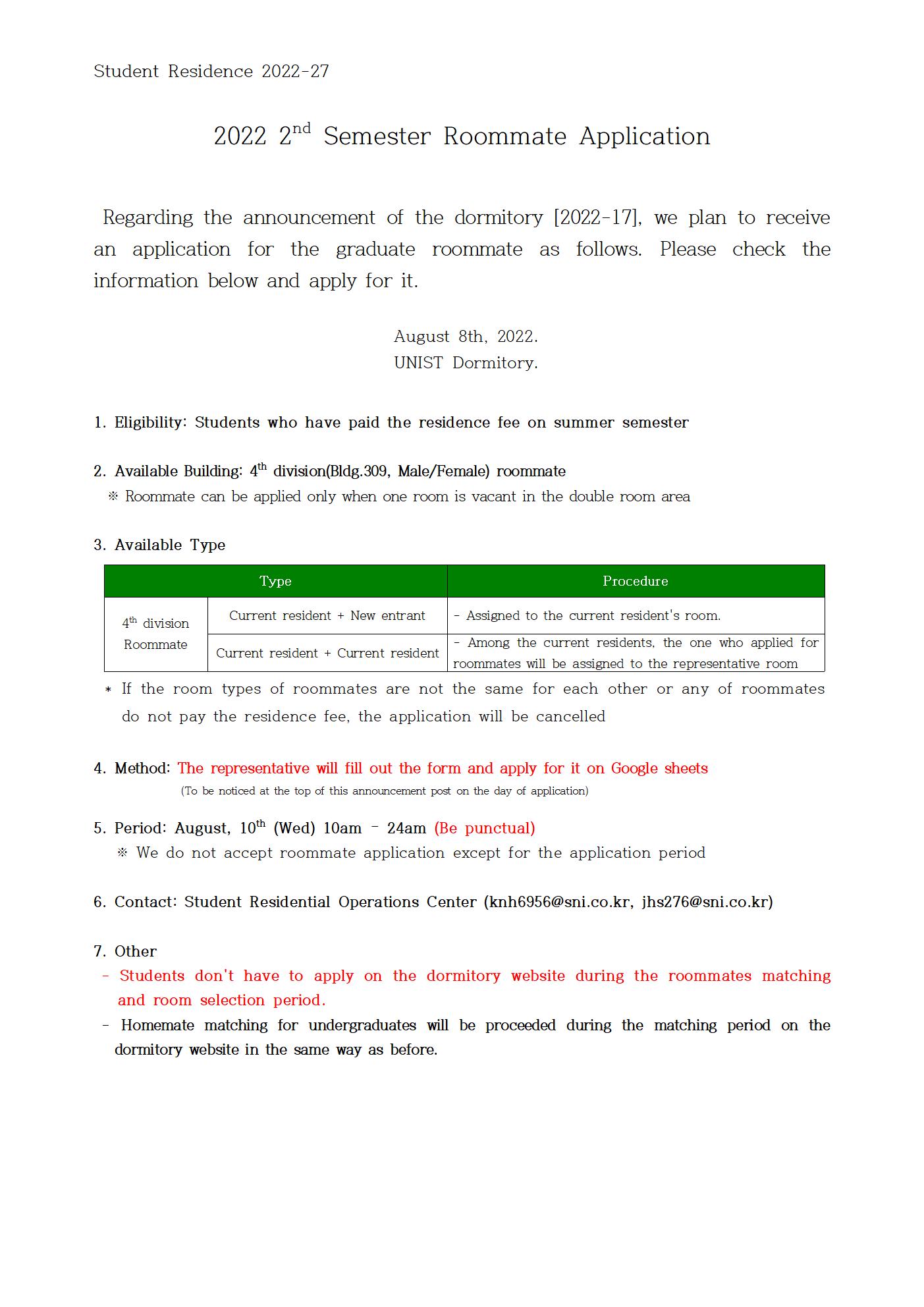 | 673 | (No.2022-27) 2022년 2학기 대학원 룸메이트 신청 안내(2022.. | 2022-08-08 | 1768 |