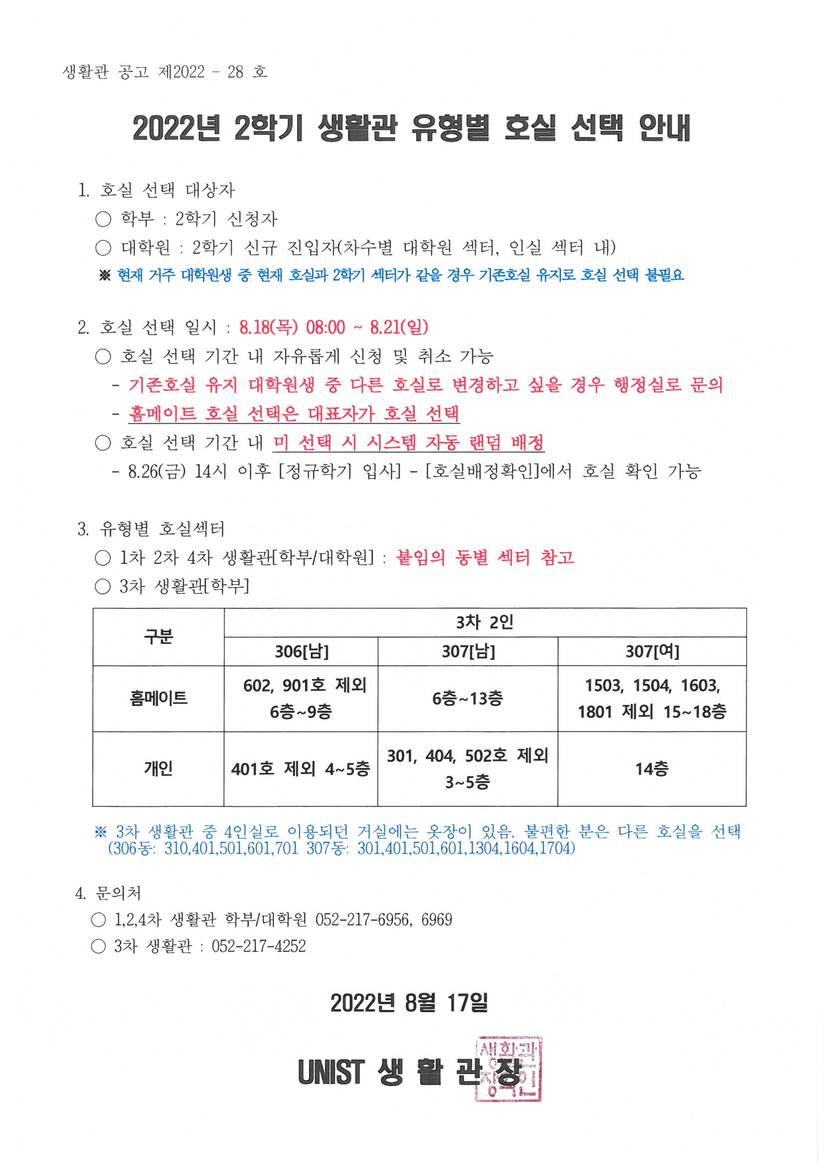 | 676 | (No.2022-28) 2022년 2학기 생활관 유형별 호실 선택 안내(N.. | 2022-08-17 | 2209 |