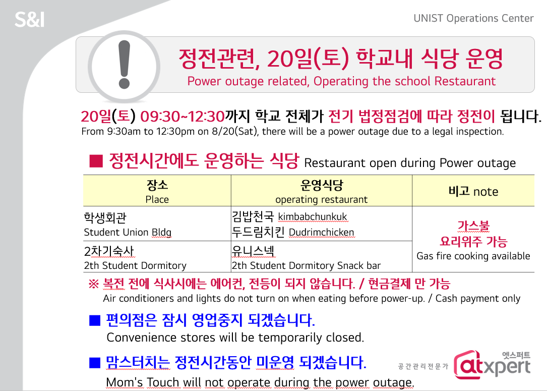 | 677 | 정전관련 8.20(토) 교내 식당운영 안내 Operating the resta.. | 2022-08-18 | 1340 |