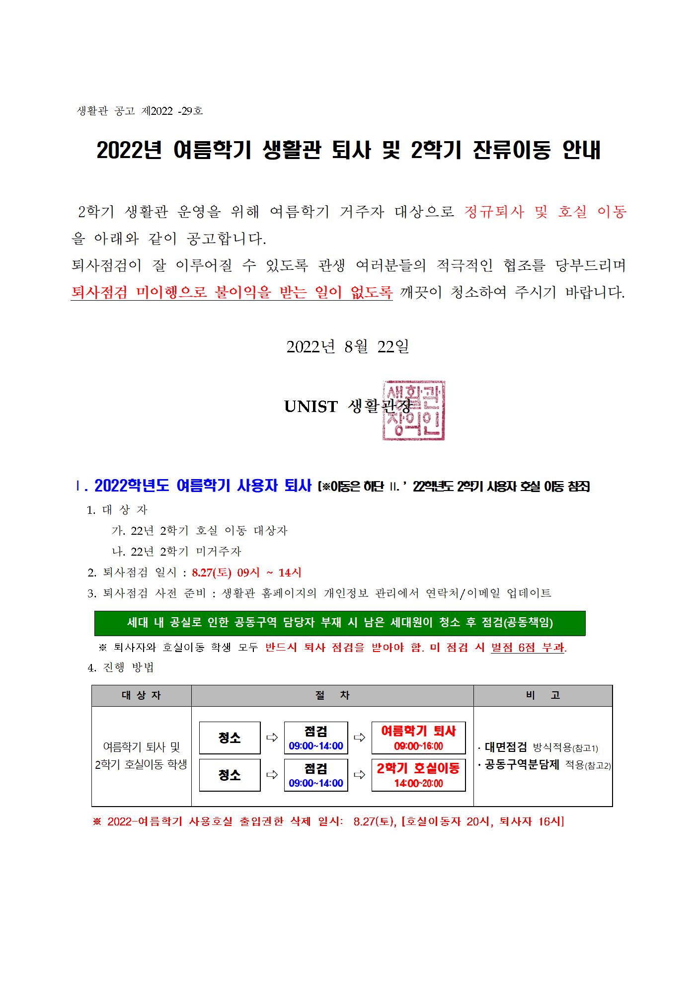 | 678 | (No.2022-29) 2022년 여름학기 생활관 퇴사 및 2학기 잔류이.. | 2022-08-22 | 3271 |