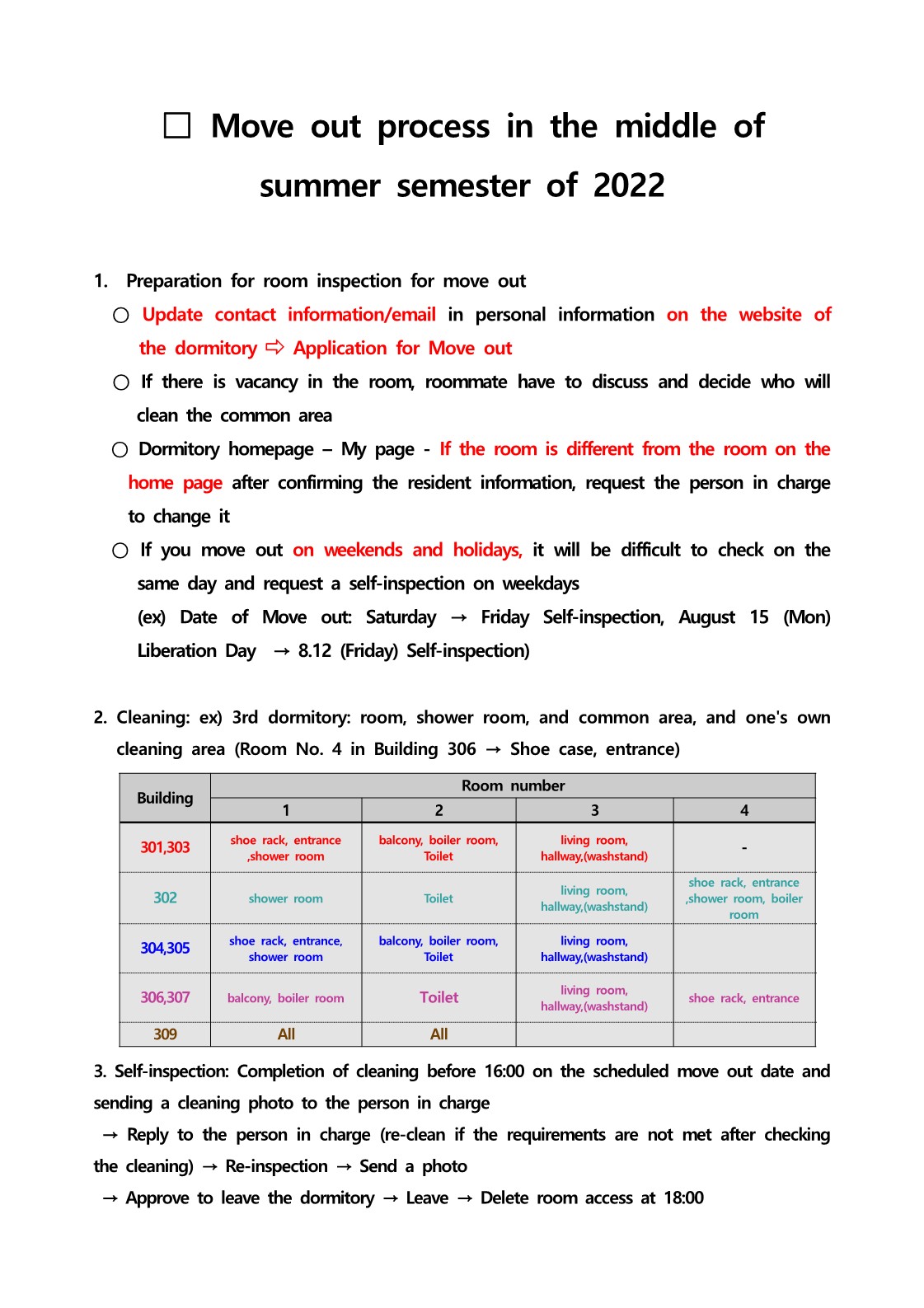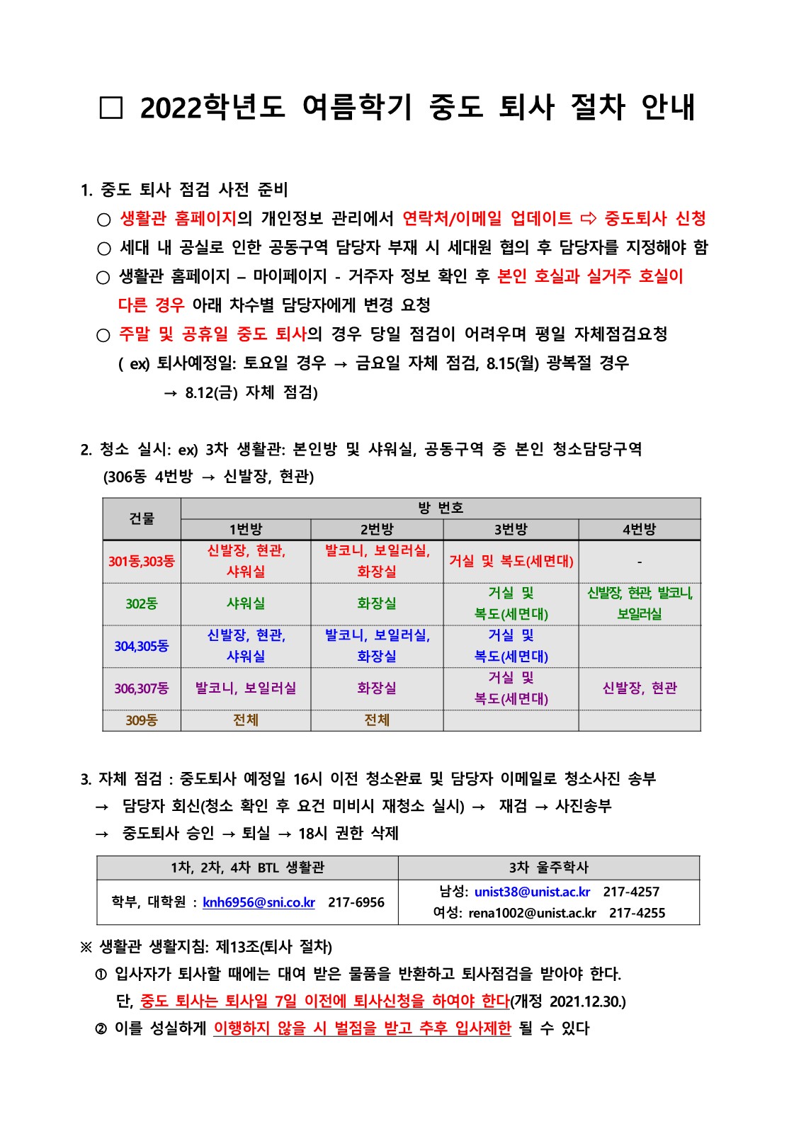 | 662 | 2022 여름학기 중도퇴사 절차 안내 / Move out process in t.. | 2022-07-01 | 2388 |