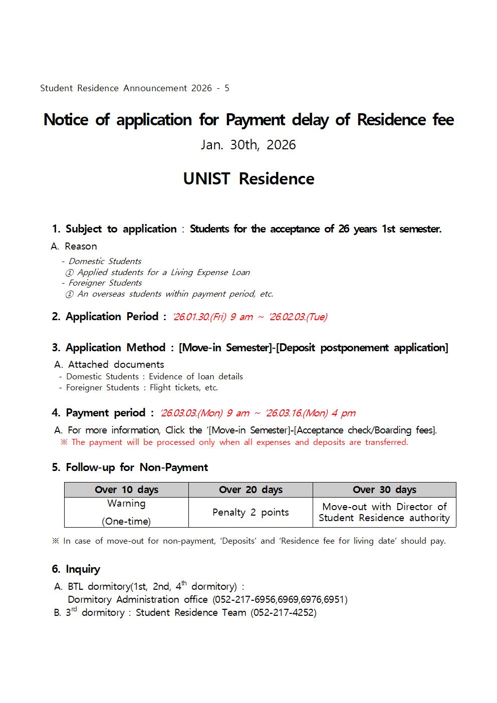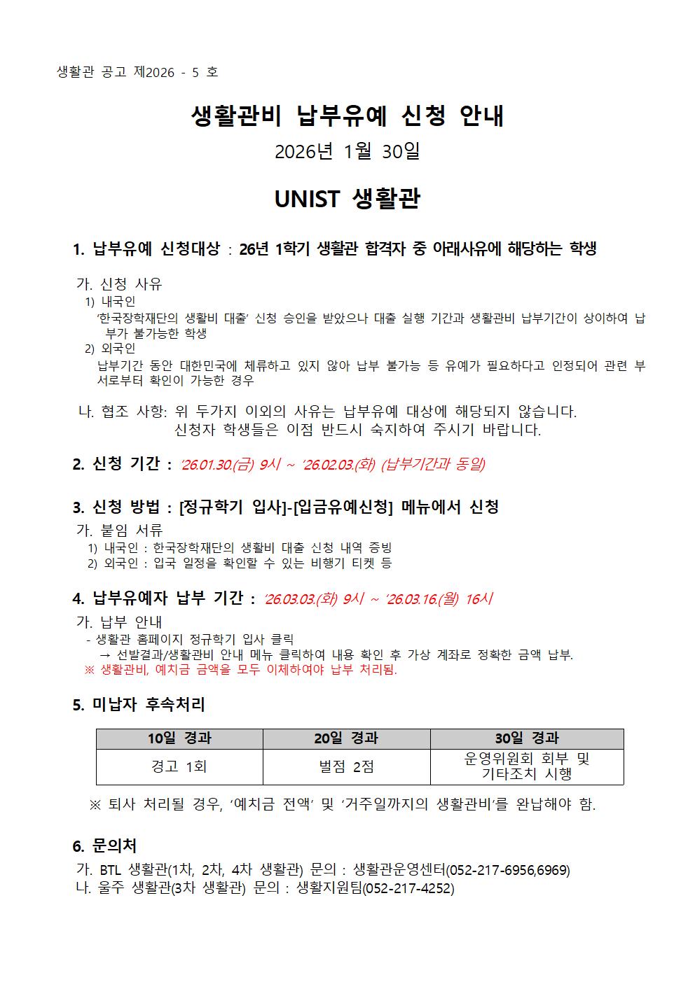 | 1081 | [No.2026-5] 생활관비 납부유예 신청 안내(Notice of applic.. | 2026-01-30 | 915 |