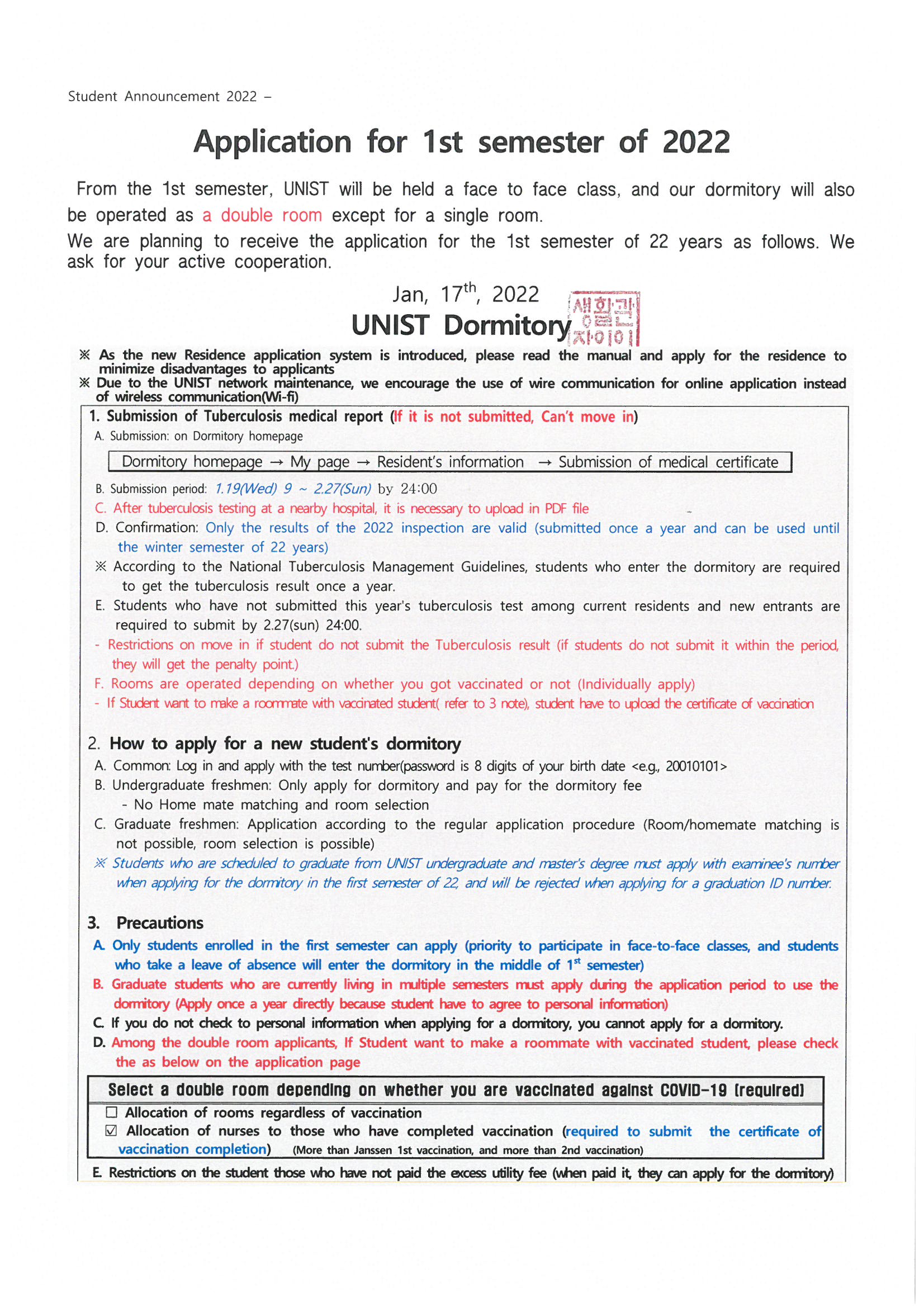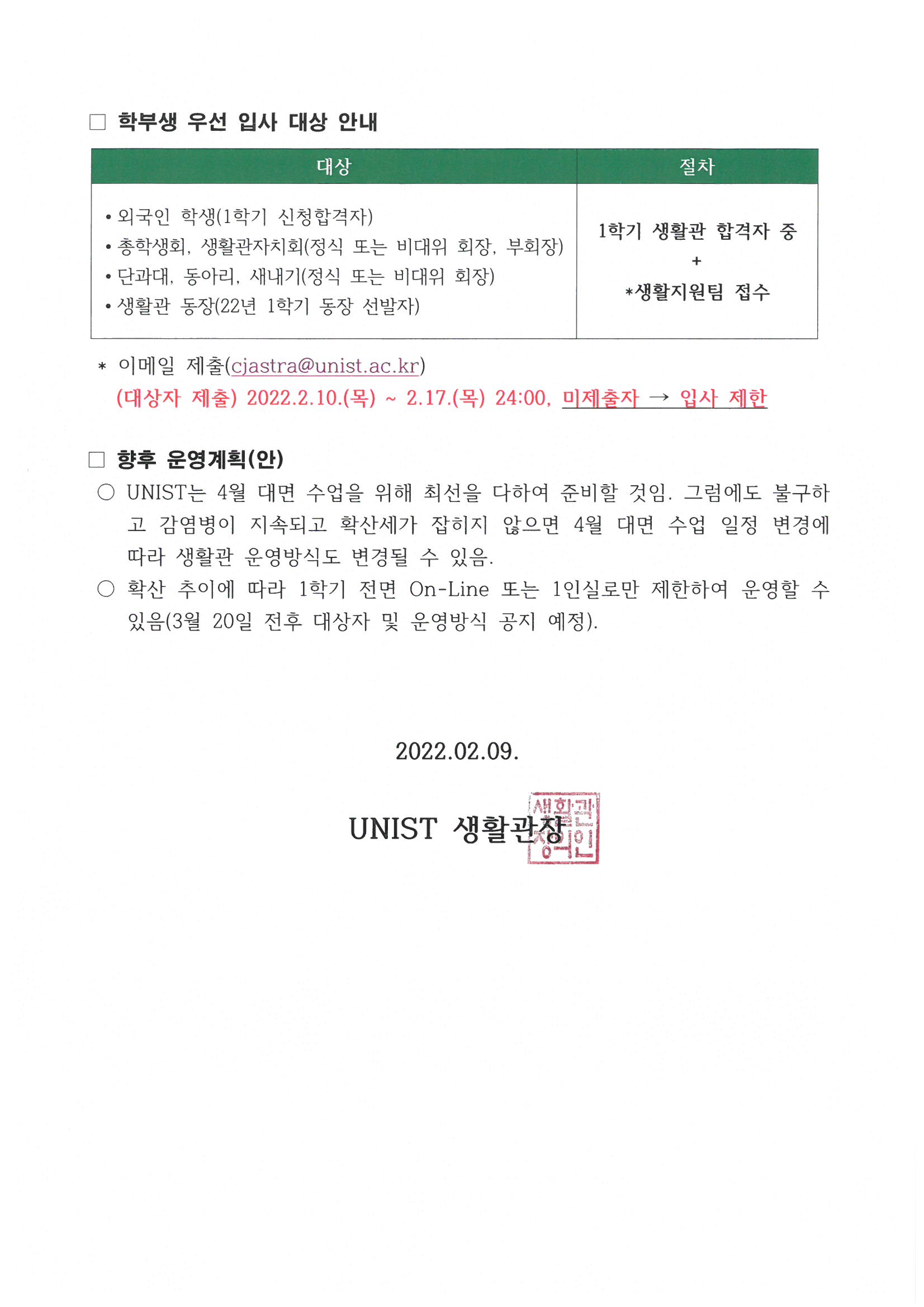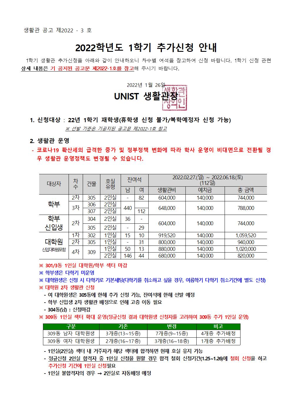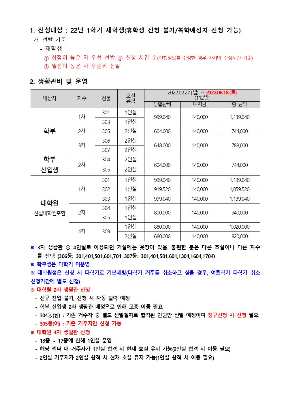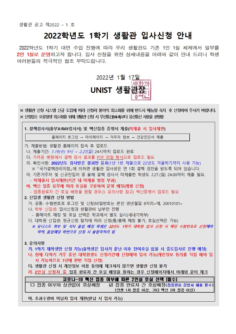 | 603 | (No.2022-1)[변경] 2022학년도 1학기 생활관 입사신청 안내(.. | 2022-01-18 | 18960 |