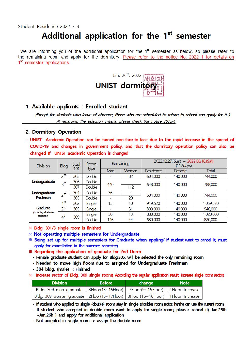 | 606 | COVID-19 안내 / Notice of COVID-19 | 2022-02-04 | 2287 | |