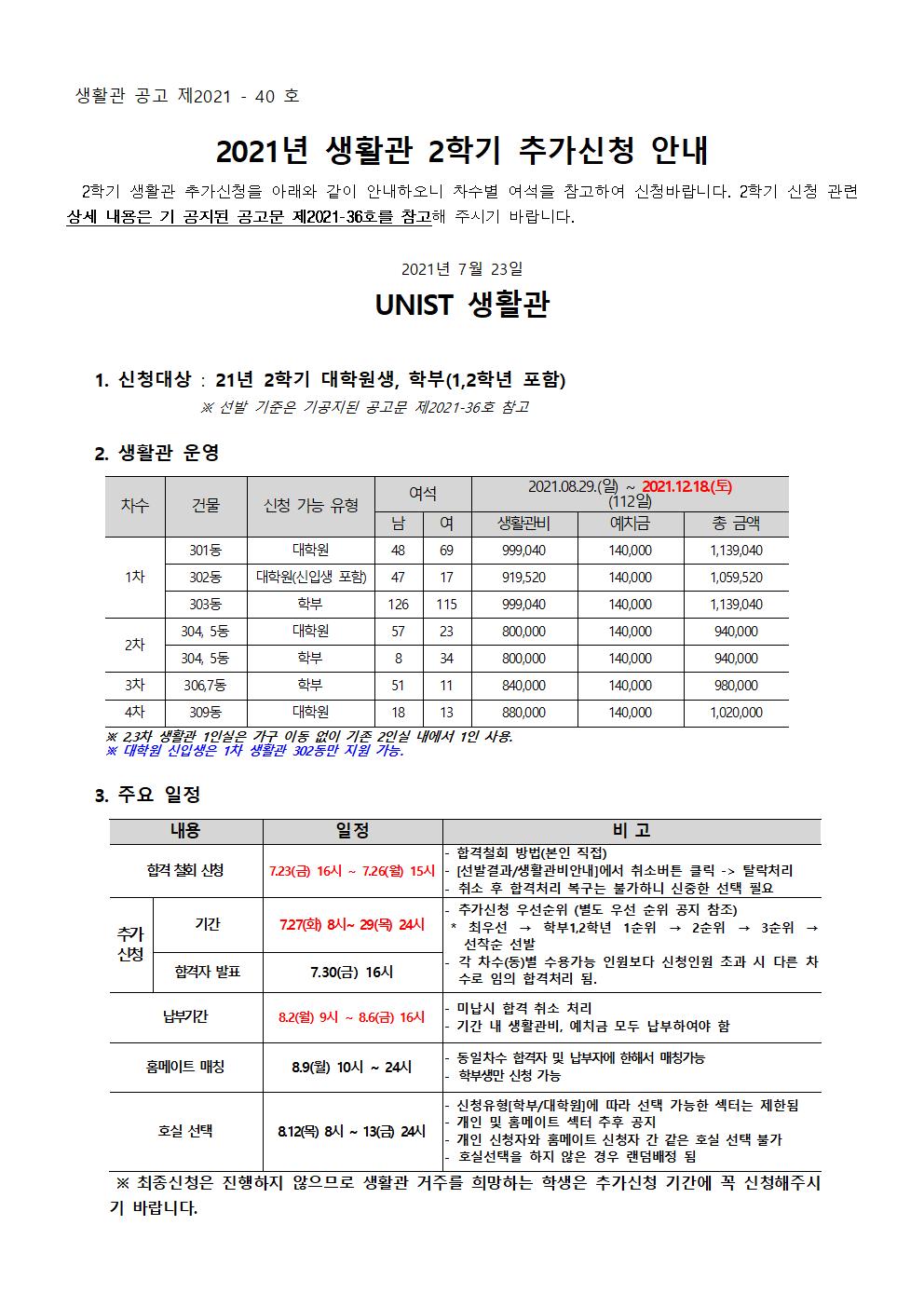 | 545 | (No.2021-40) 2021년 생활관 2학기 추가신청 안내(Additiona.. | 2021-07-23 | 6996 |