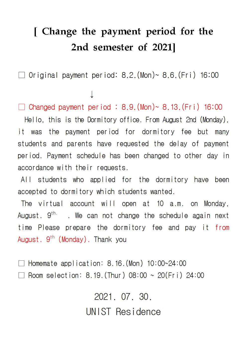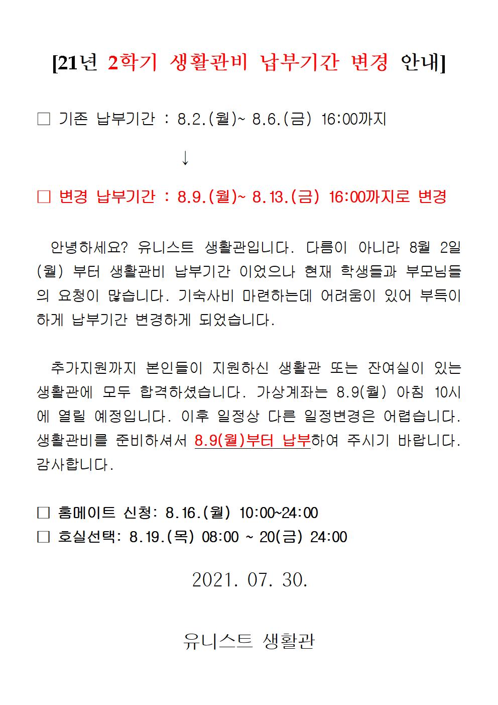 | 547 | 21년 2학기 생활관비 납부기간 변경 안내(Change the paymen.. | 2021-07-30 | 6966 |