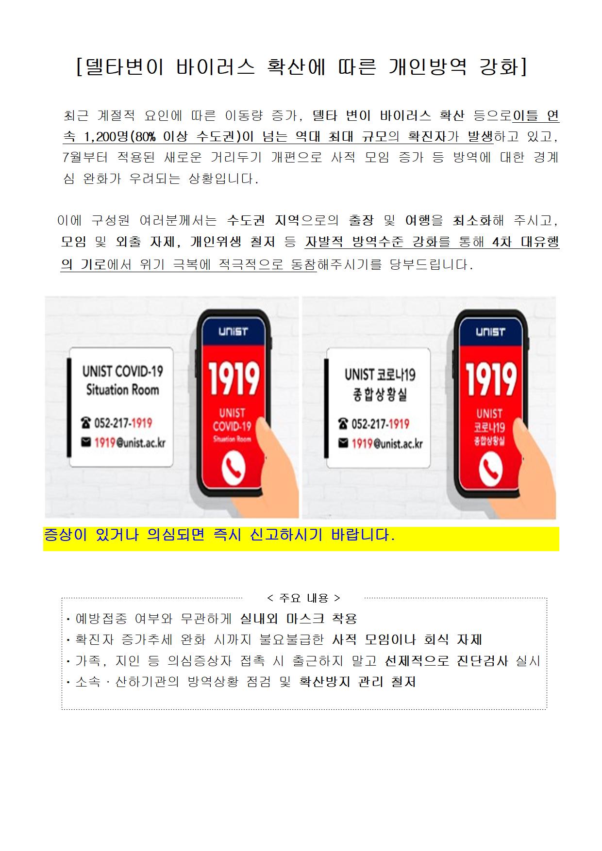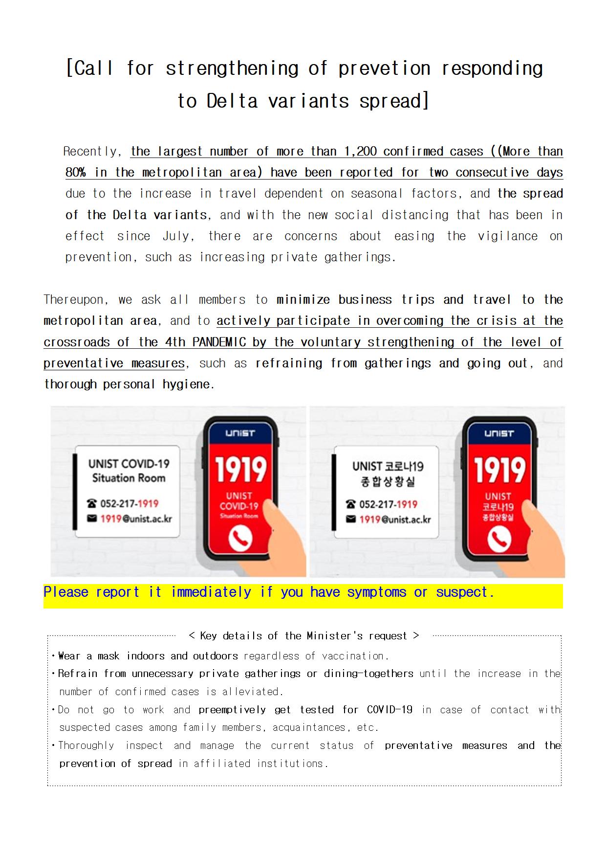 | 533 | 델타변이 바이러스 확산에 따른 개인방역 강화[Call for str.. | 2021-07-09 | 1918 |
