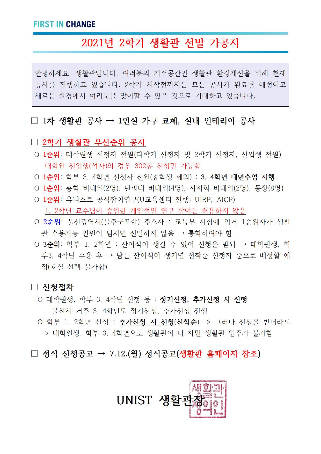 | 534 | 2021년 2학기 생활관 선발 가공지 | 2021-07-09 | 4062 |