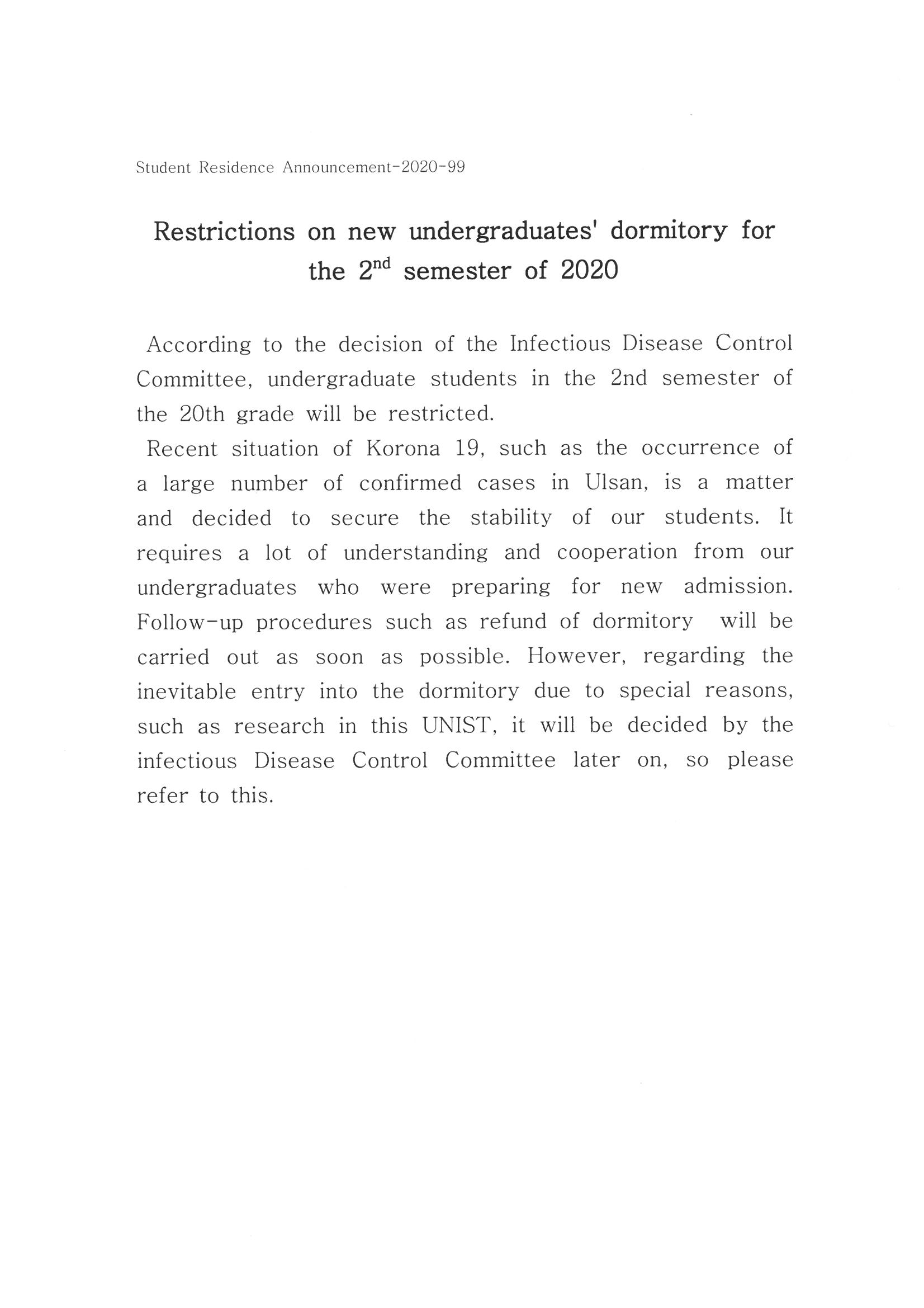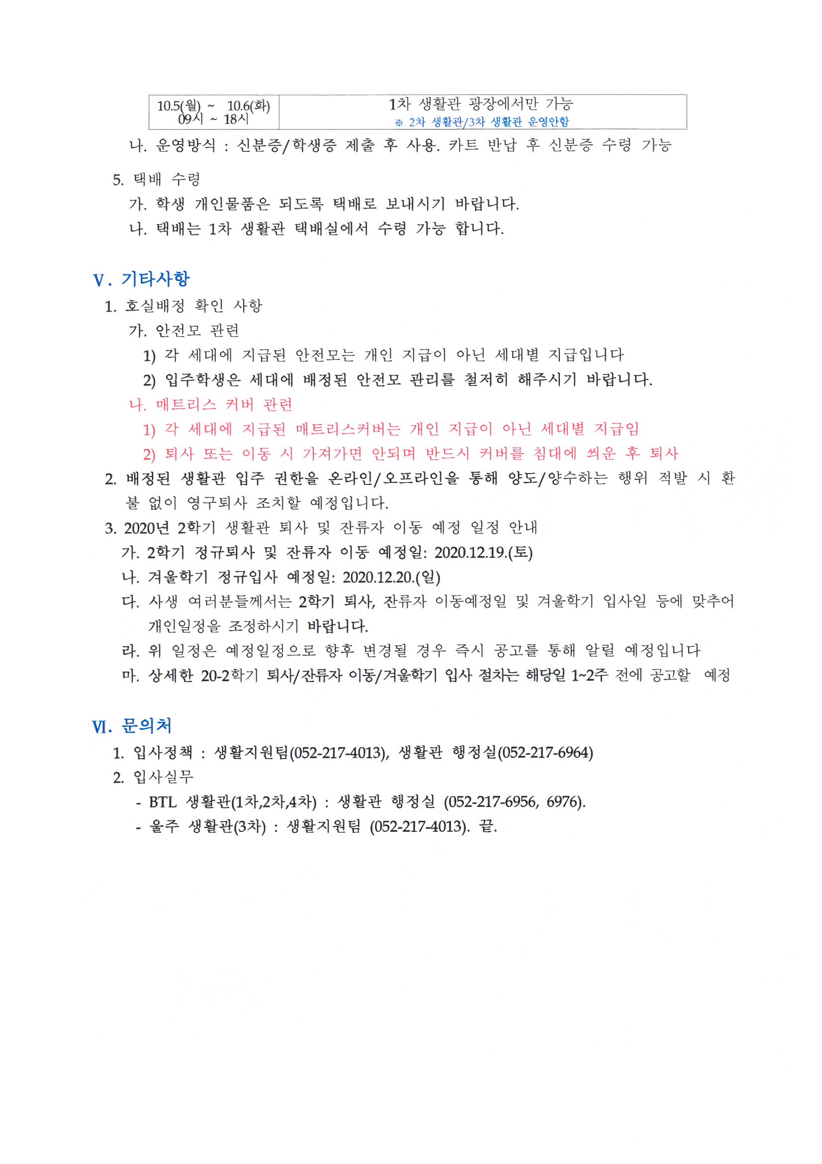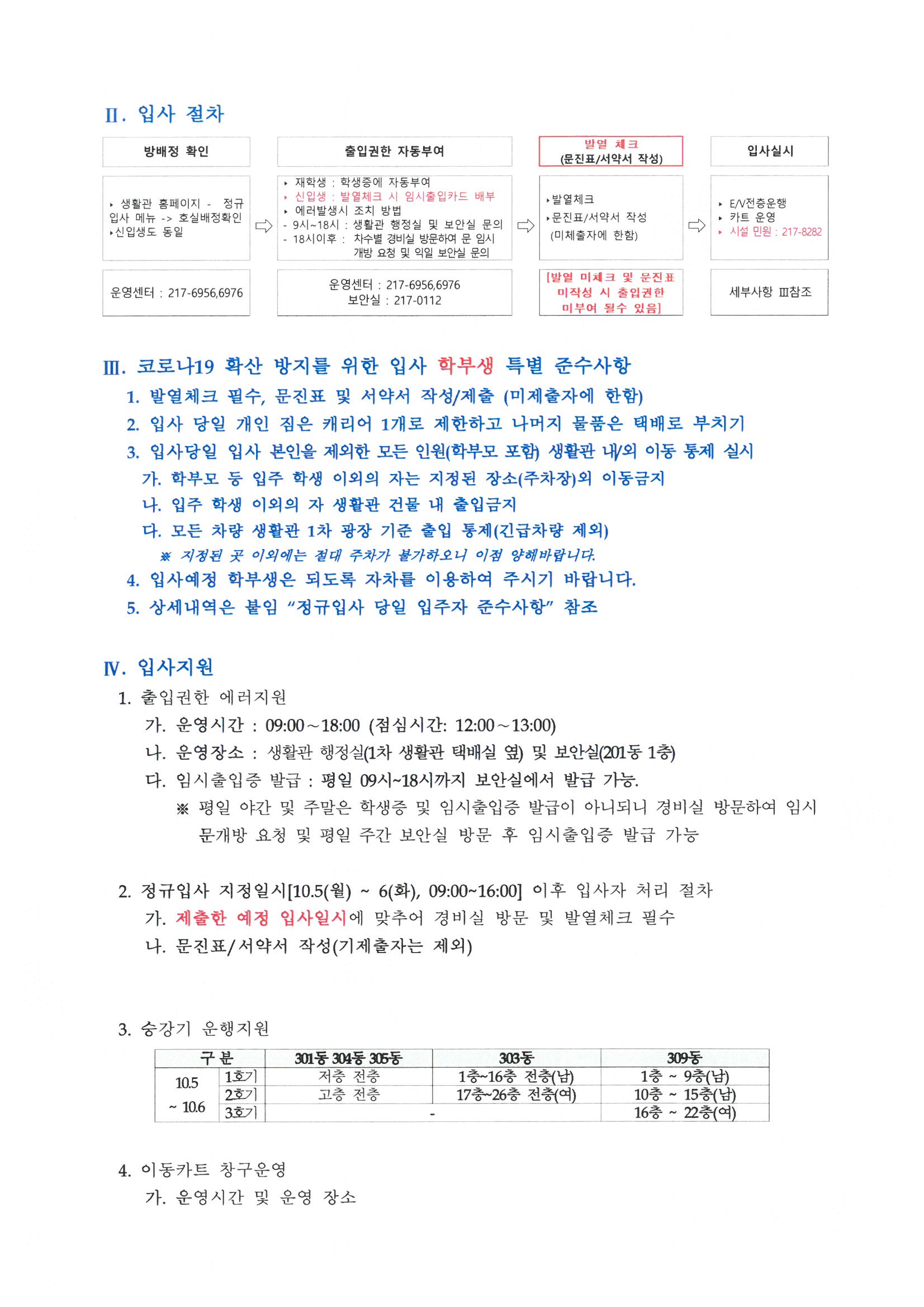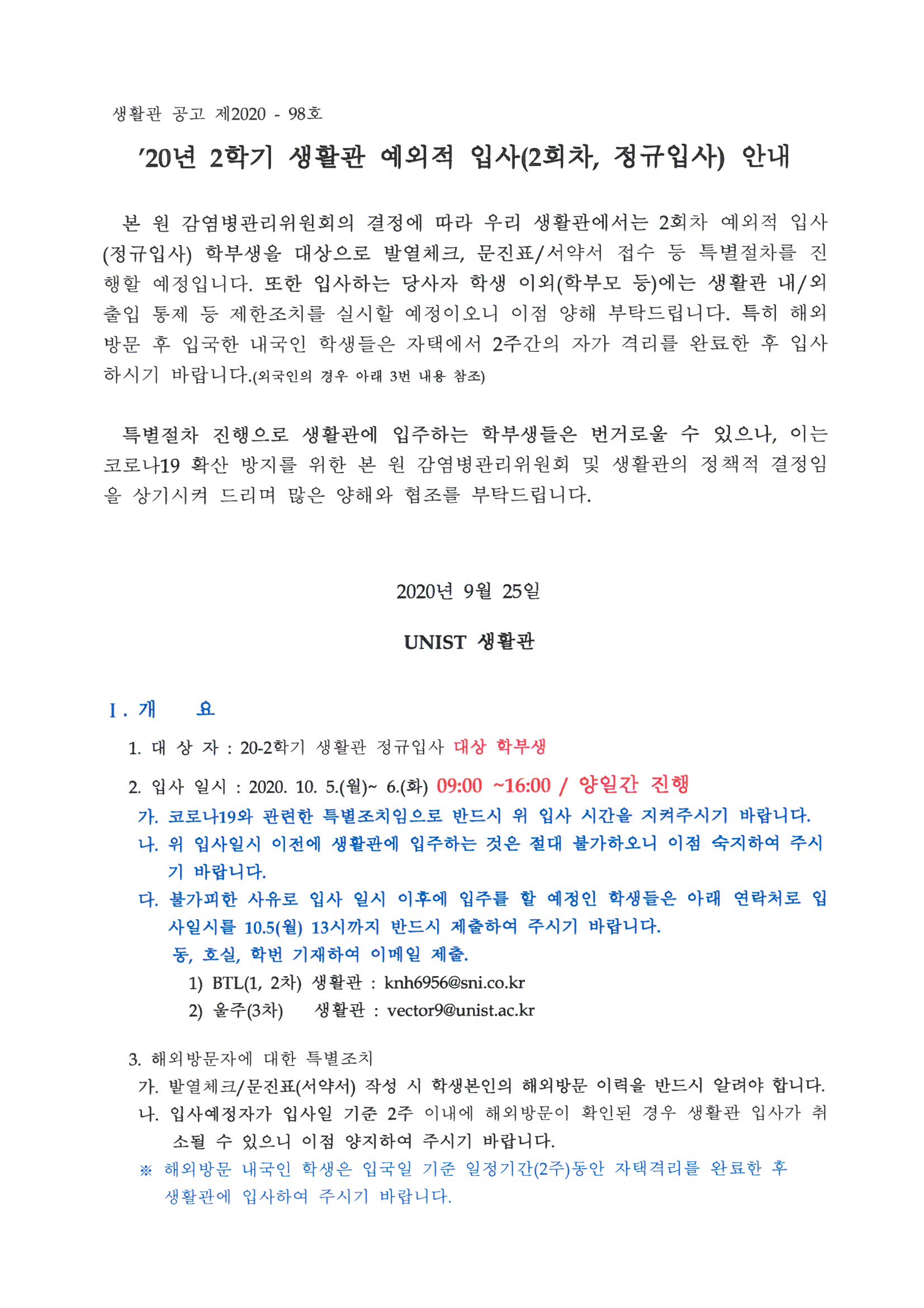 | 418 | (No.2020-98) 20년 2학기 생활관 예외적 입사(2회차, 정규입.. | 2020-09-25 | 2961 |