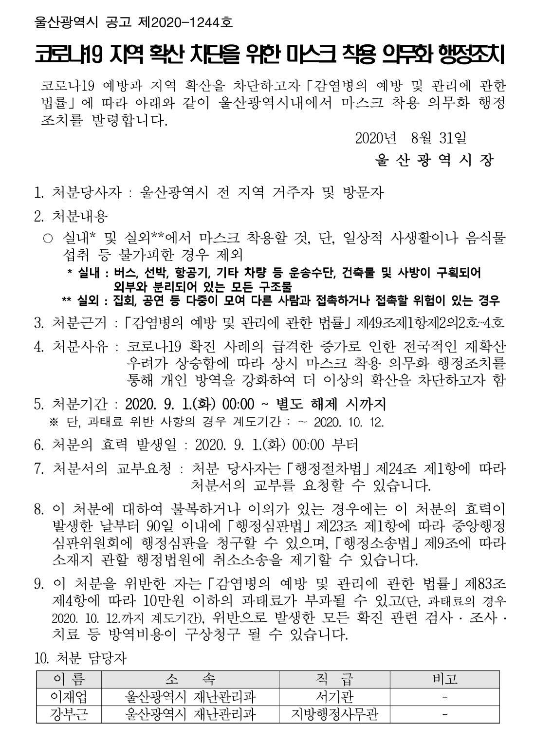 | 403 | 마스크 착용 의무화 행정조치 | 2020-09-02 | 1753 |