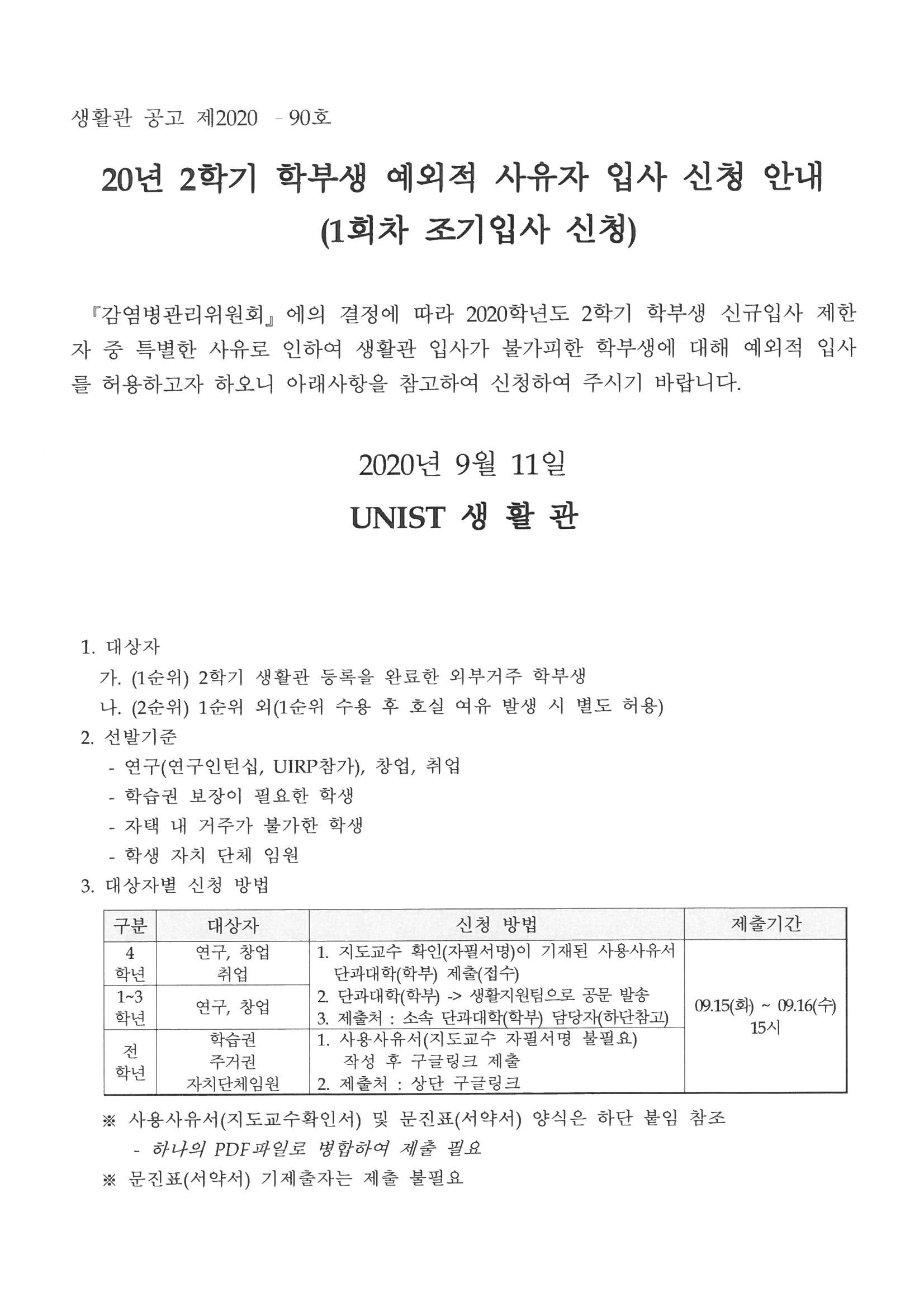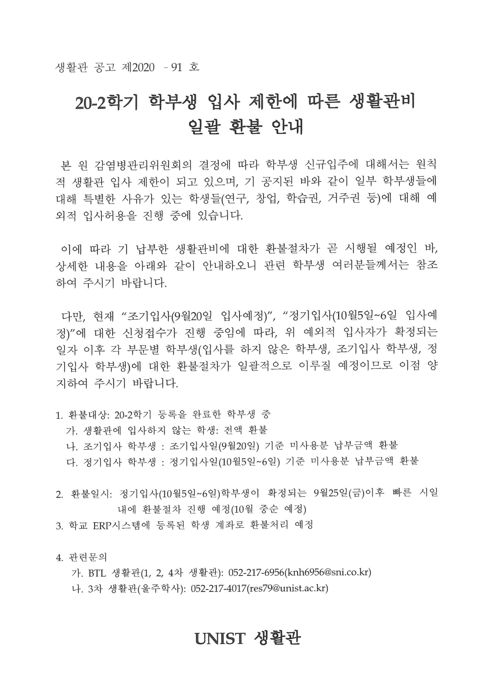 | 406 | (No.2020-91) 20-2학기 학부생 입사 제한에 따른 생활관비 .. | 2020-09-15 | 2759 |