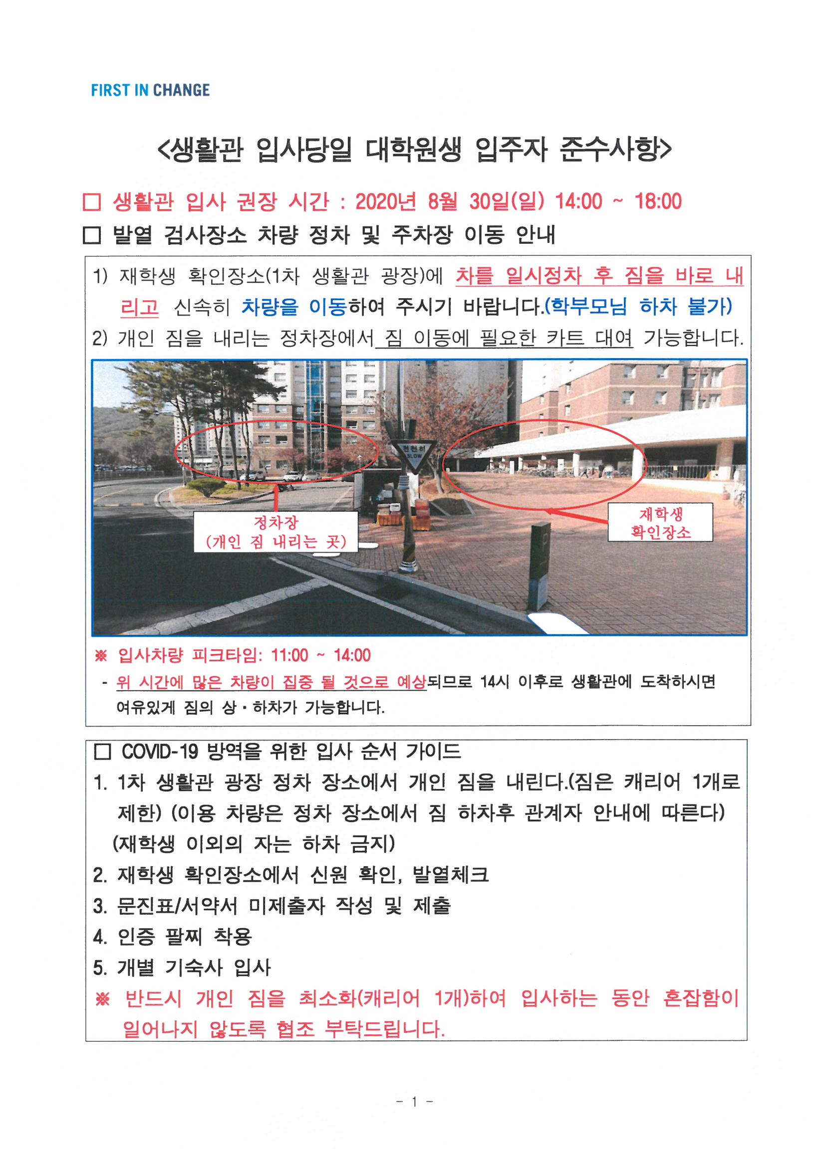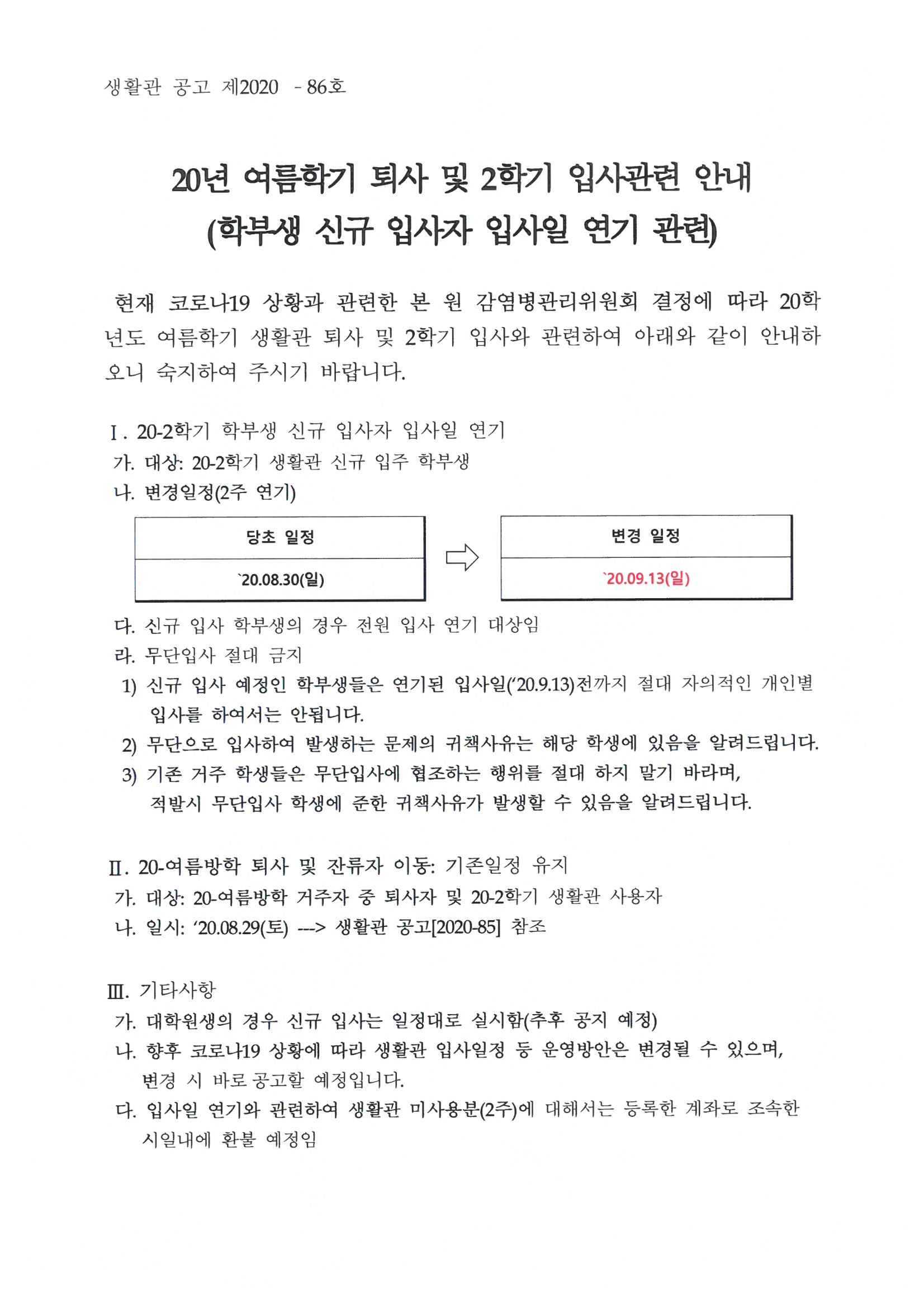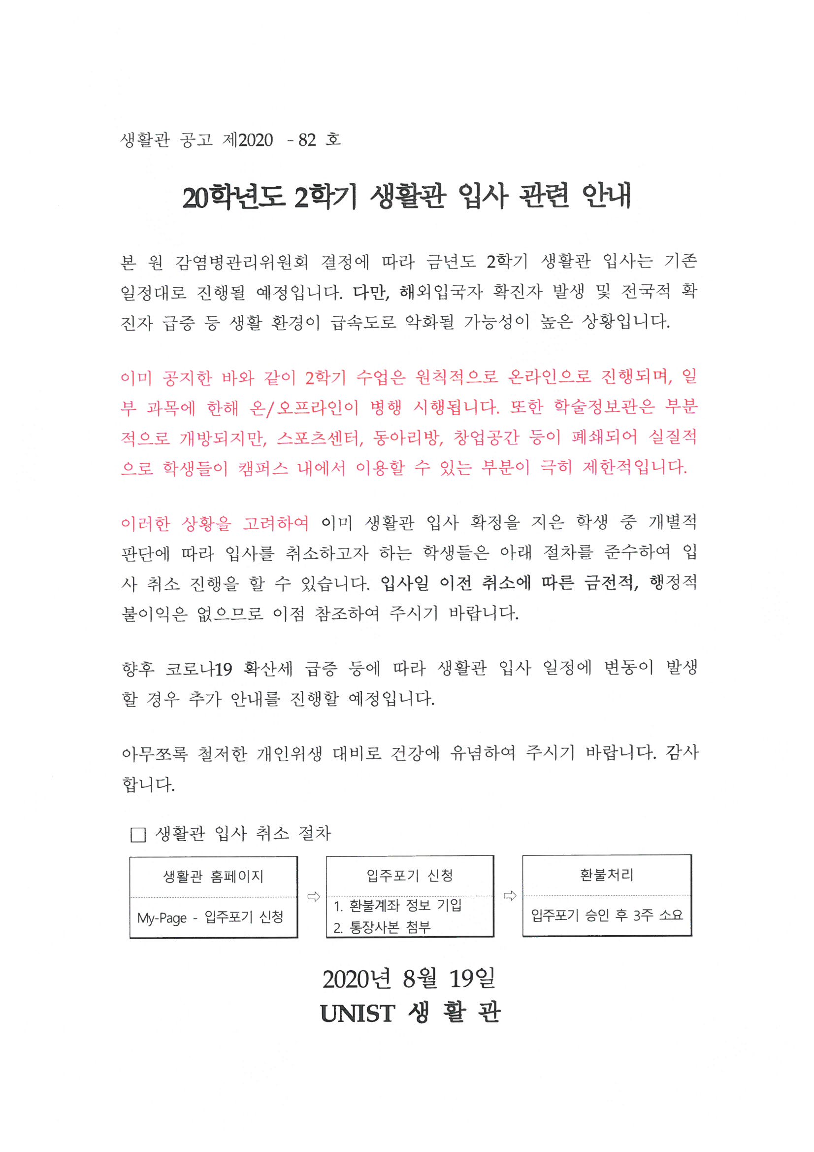 | 398 | (No.2020-84) 20-2학기 생활관 입사관련 안내(2회차) | 2020-08-21 | 4059 |