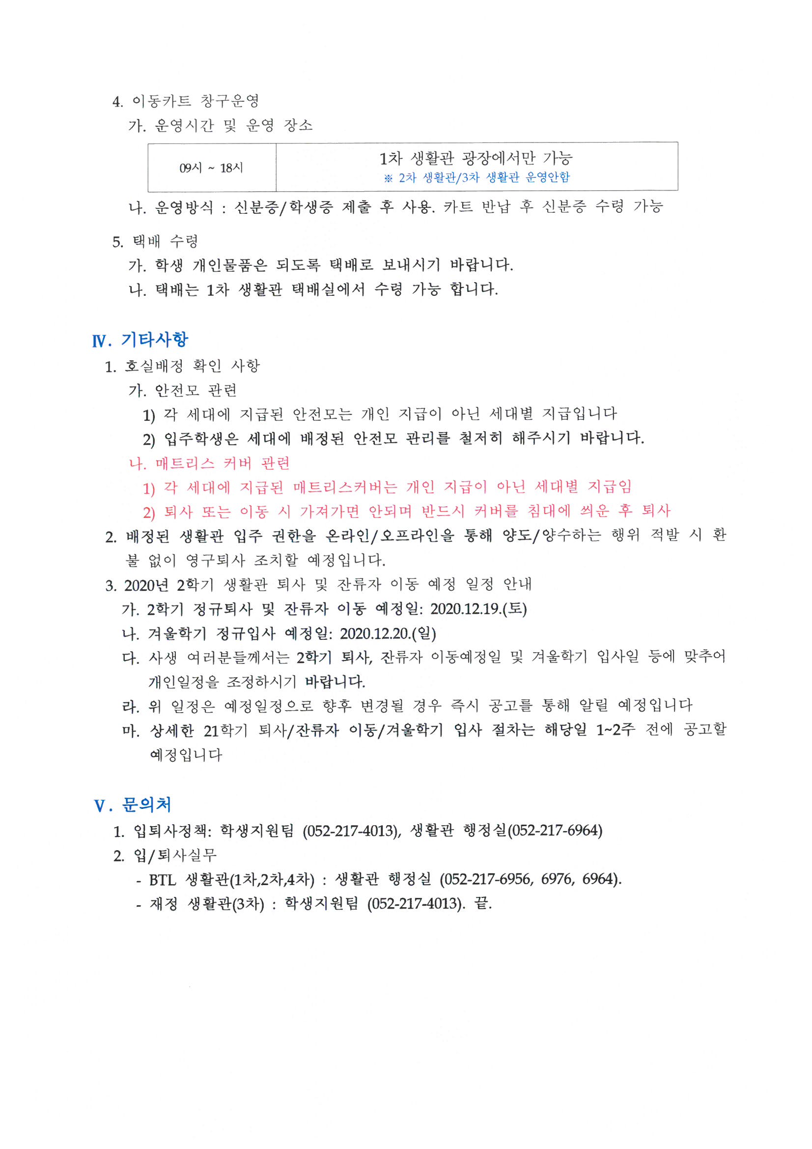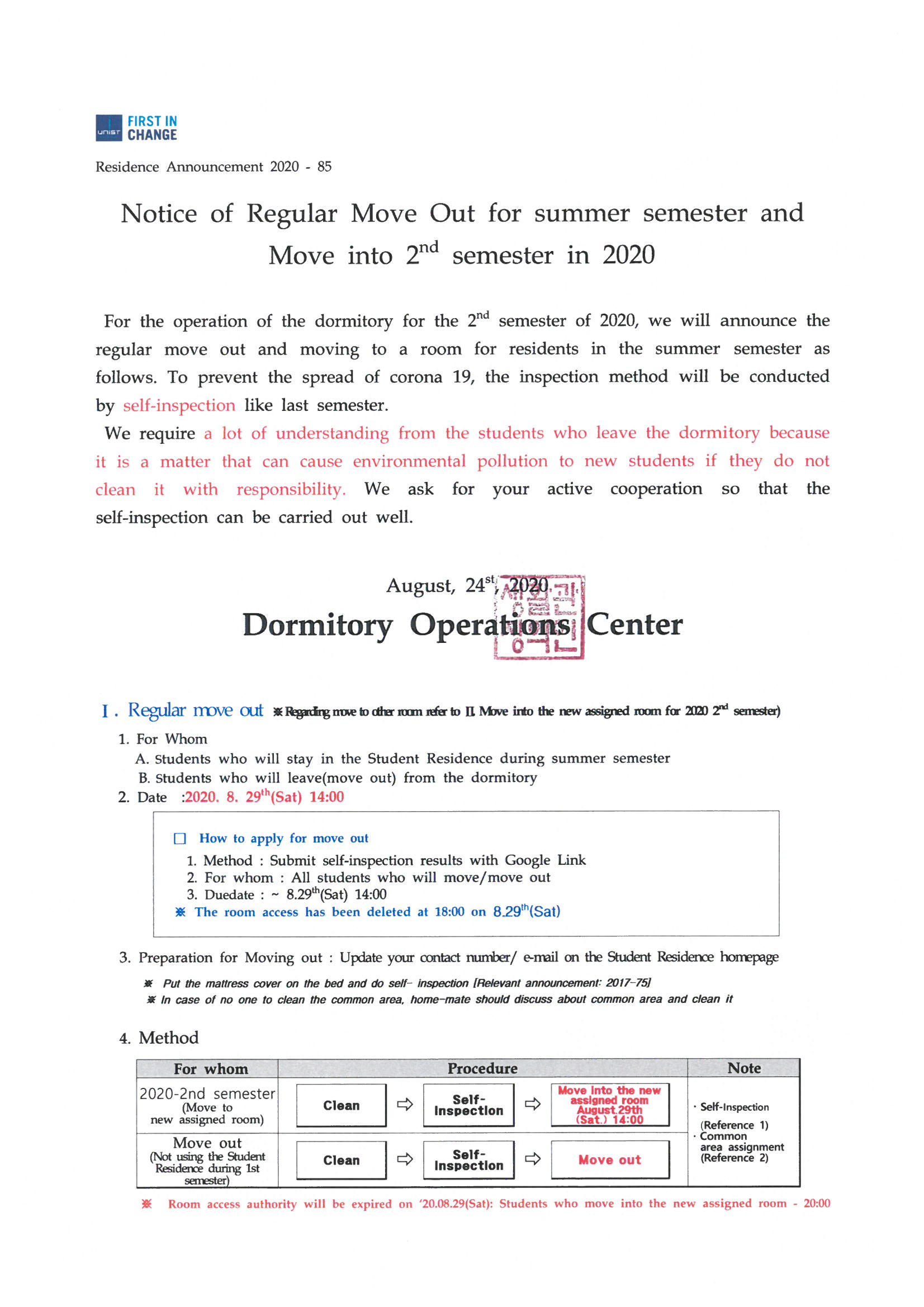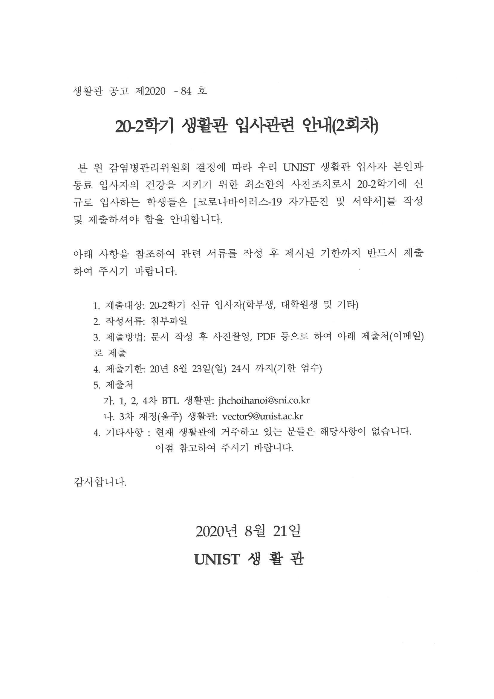| 398 | (No.2020-84) 20-2학기 생활관 입사관련 안내(2회차) | 2020-08-21 | 4059 |