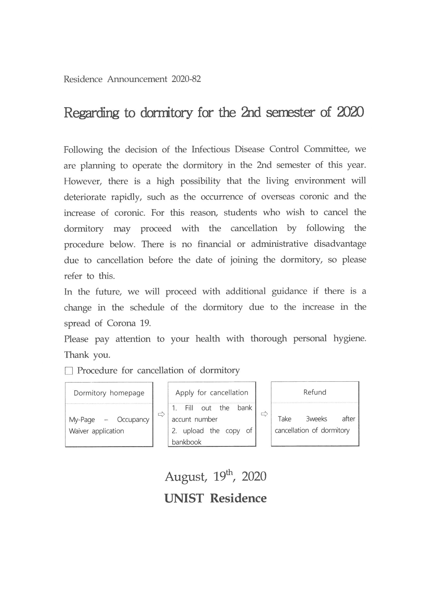 | 395 | (No.2020-82) 20학년도 2학기 생활관 입사 관련 안내 | 2020-08-19 | 3280 |