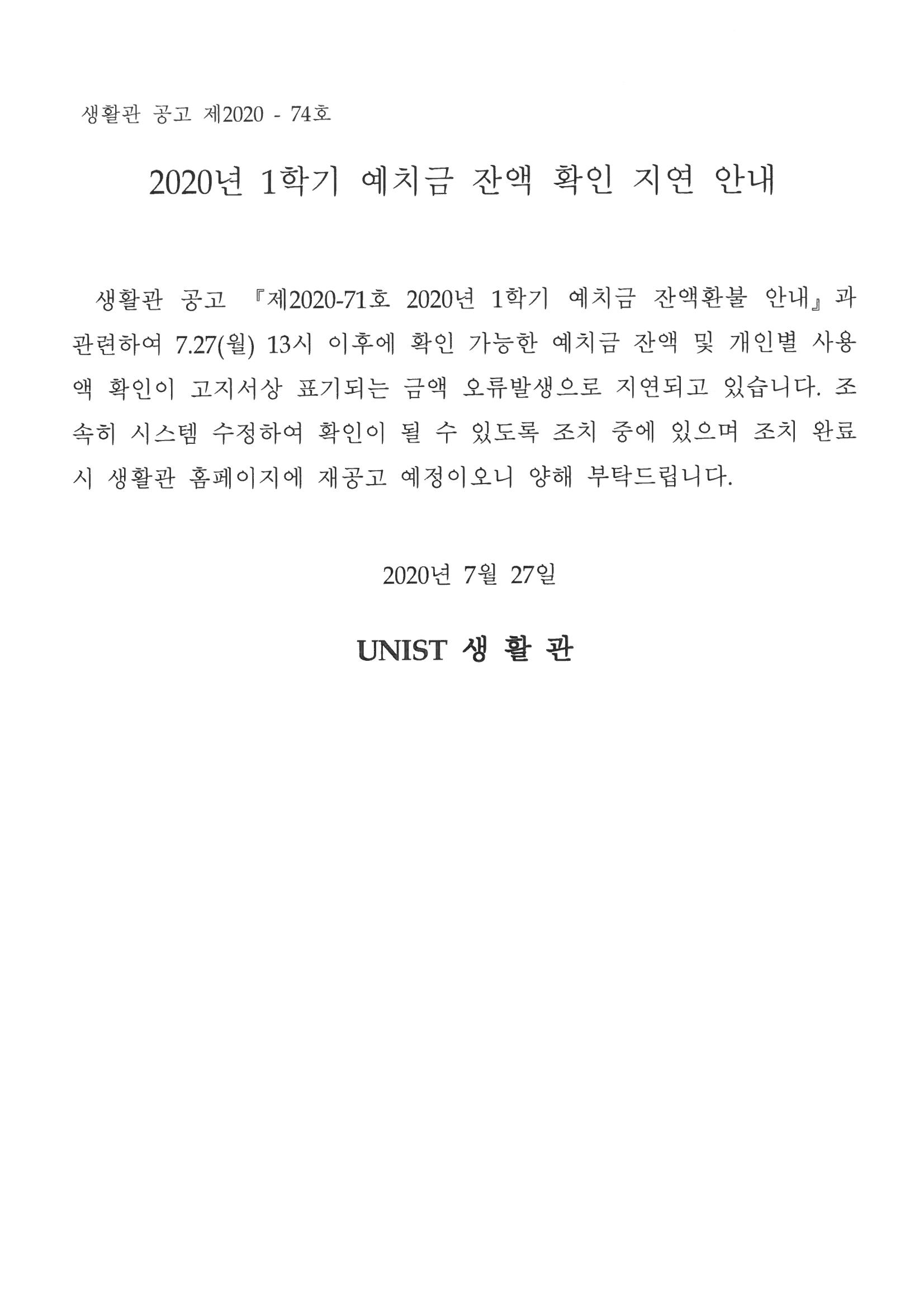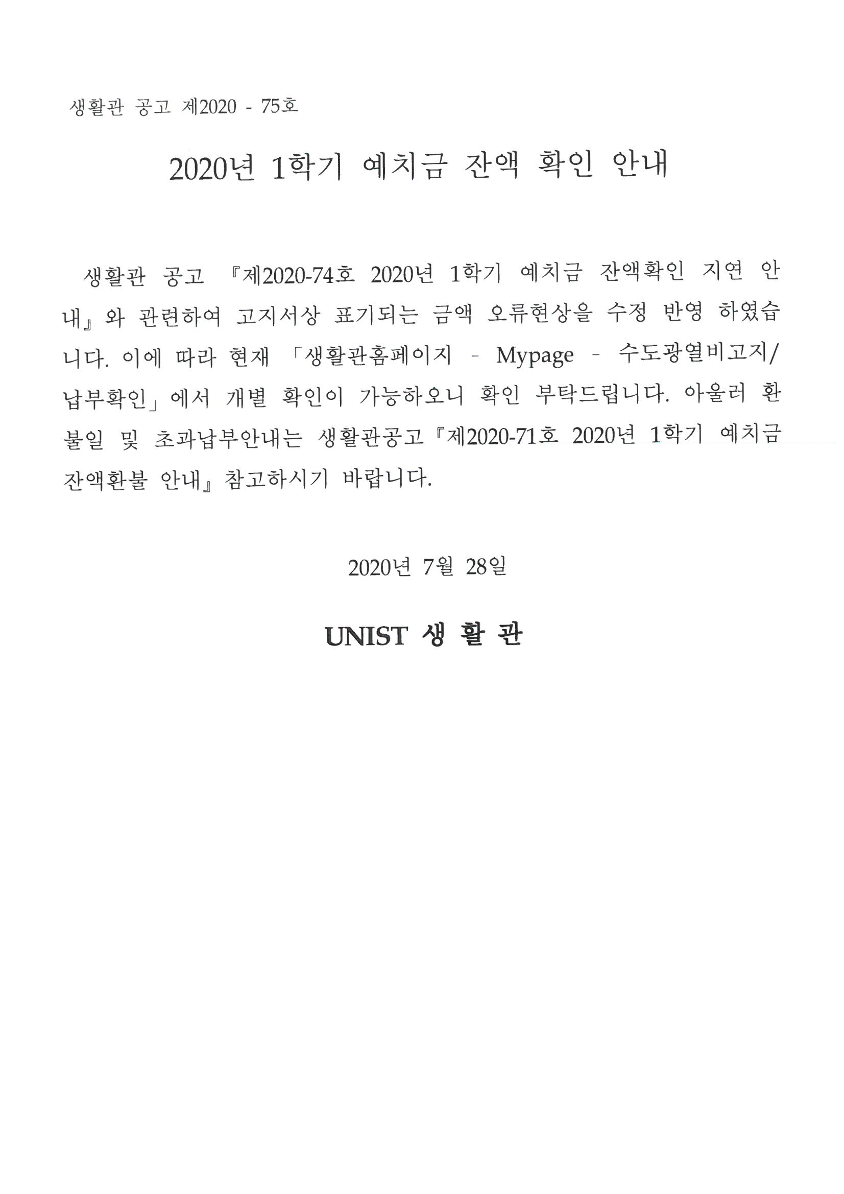 | 383 | (No.2020-74) 2020년 1학기 예치금 잔액 확인 지연 안내 | 2020-07-27 | 1668 |