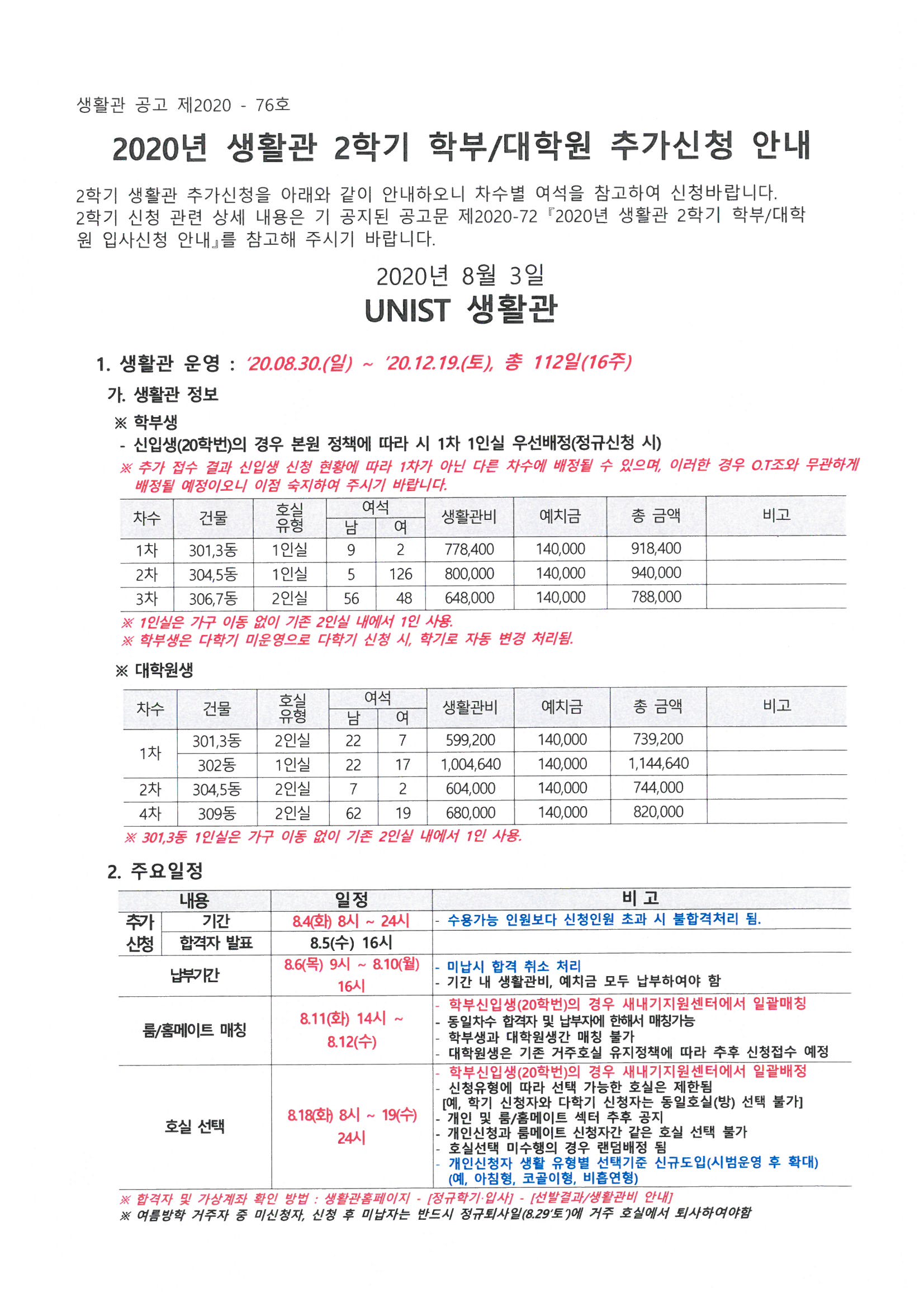 | 386 | (No.2020-76) 2020년 생활관 2학기 학부/대학원 추가신청 안.. | 2020-08-03 | 3315 |
