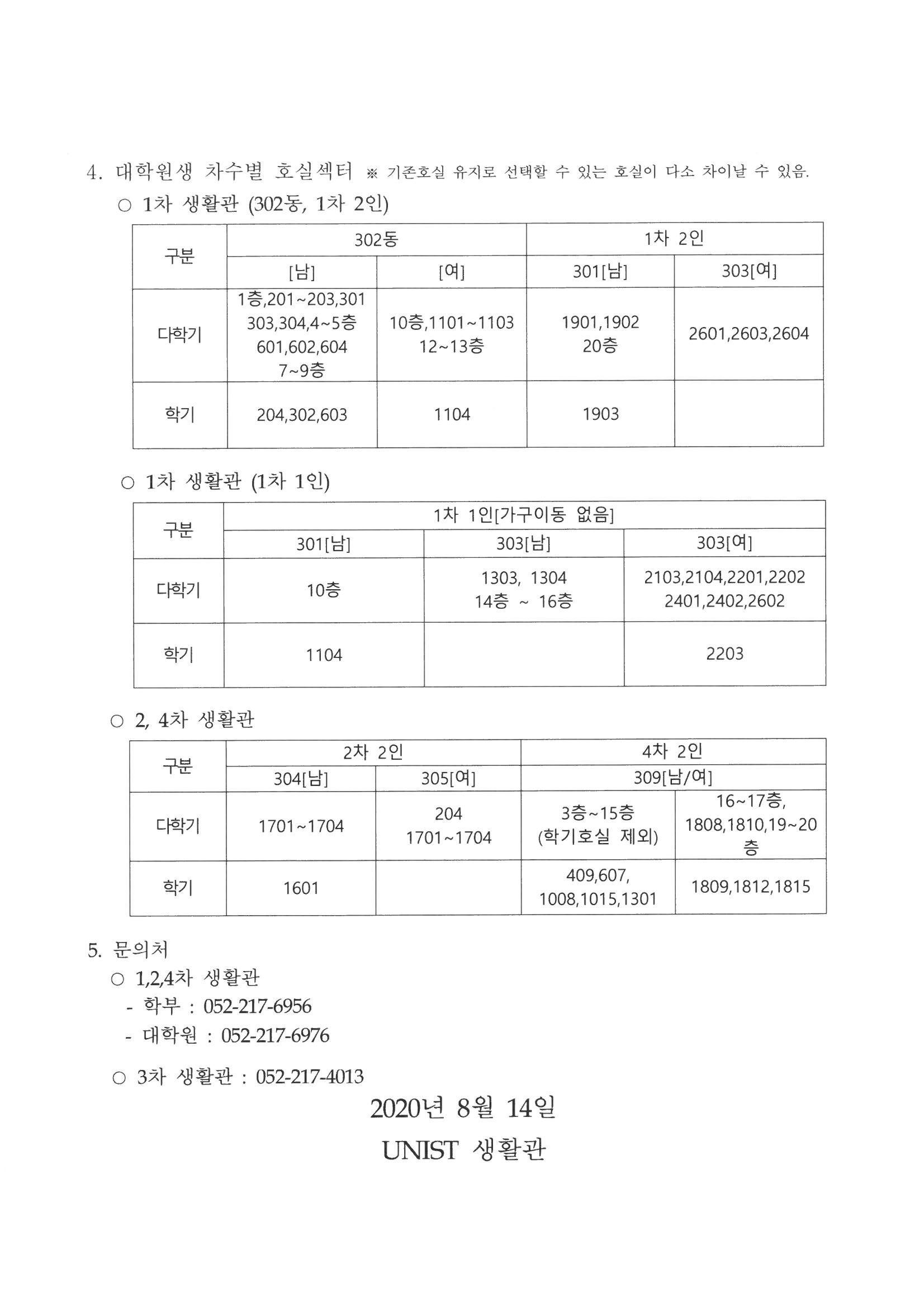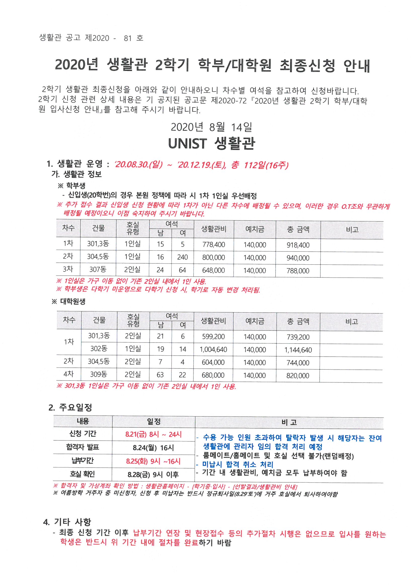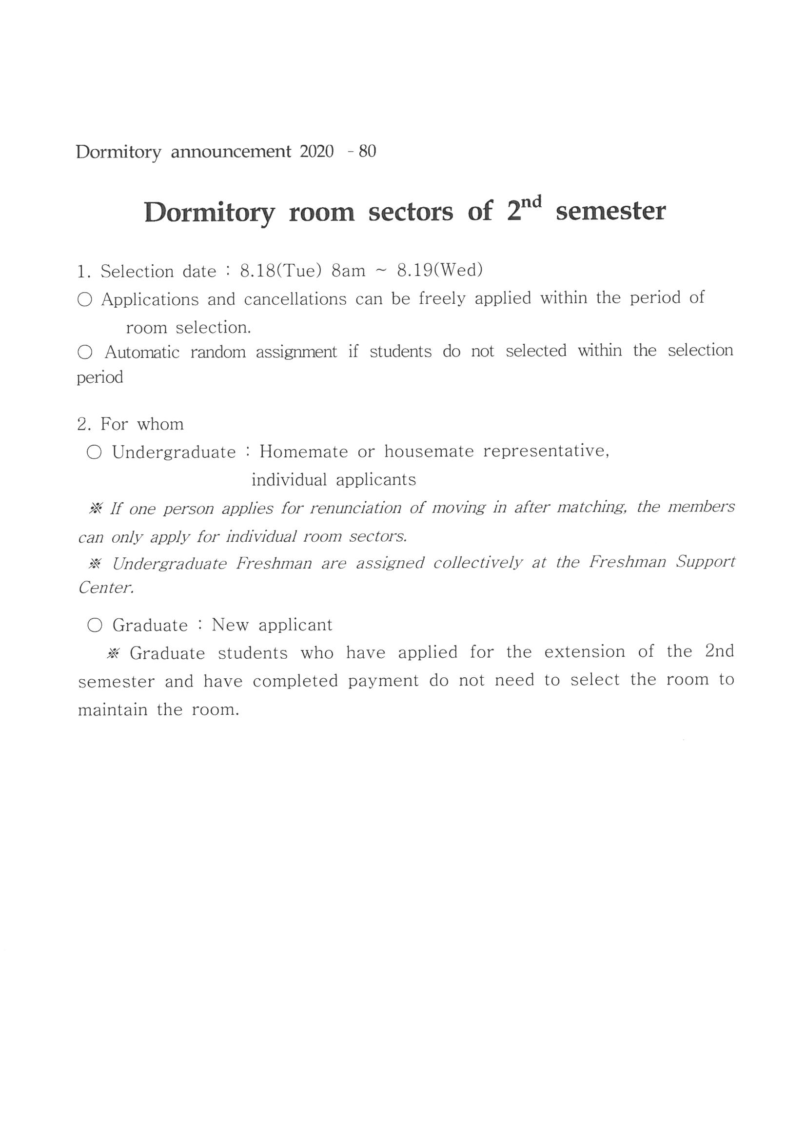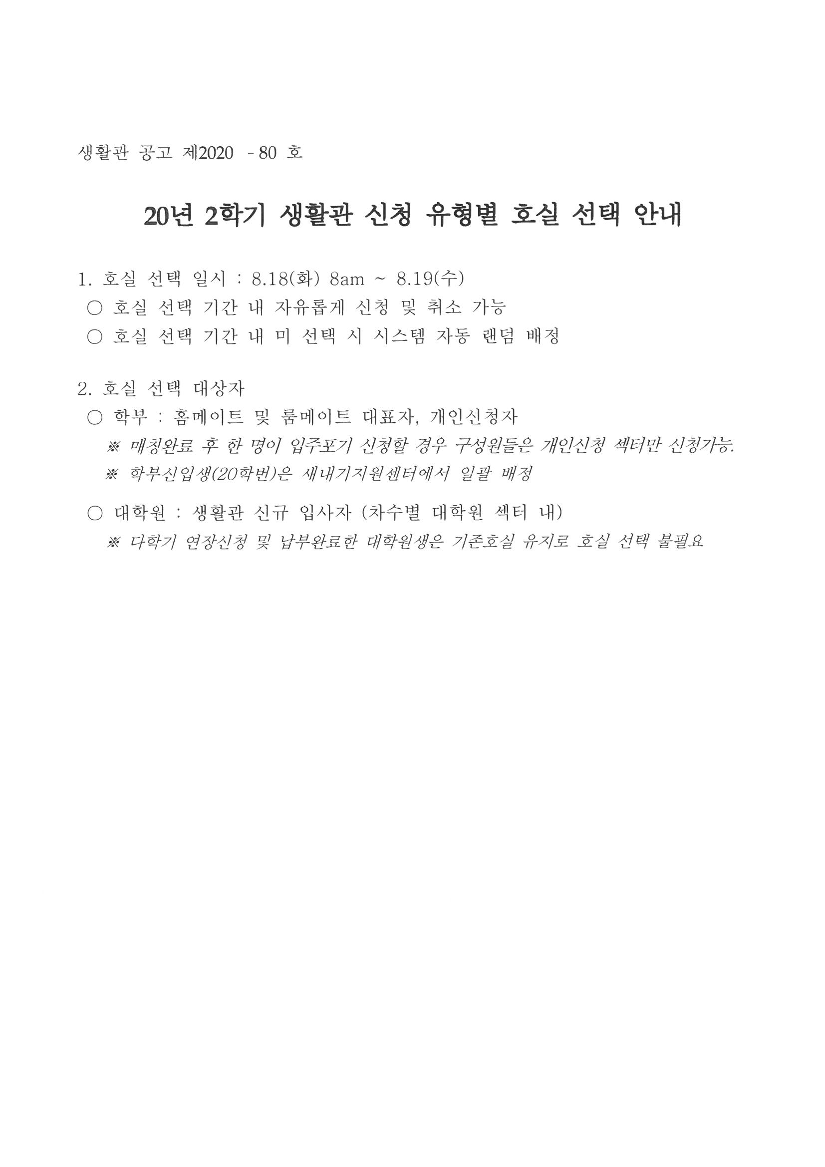 | 391 | (No.2020-81) 2020년 생활관 2학기 학부/대학원 최종신청 안.. | 2020-08-14 | 3244 |