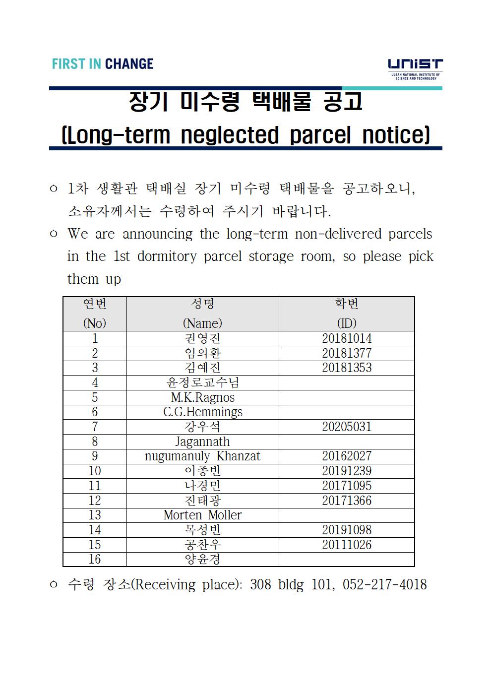 | 353 | 장기 미수령 택배물 공고(long-term neglected parcel notic.. | 2020-05-29 | 1800 |
