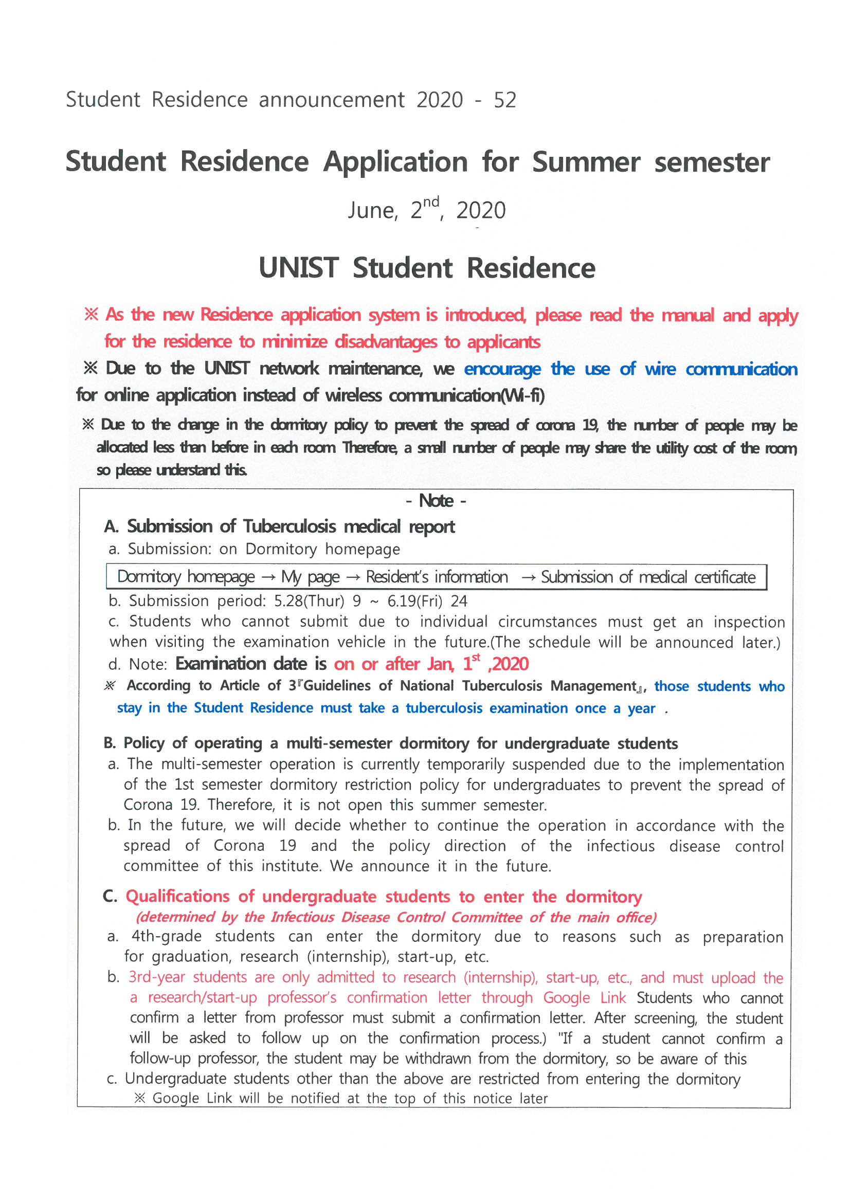 | 359 | (No.2020-56) 생활관비 납부유예 신청 안내(Notice of appli.. | 2020-06-09 | 2469 |