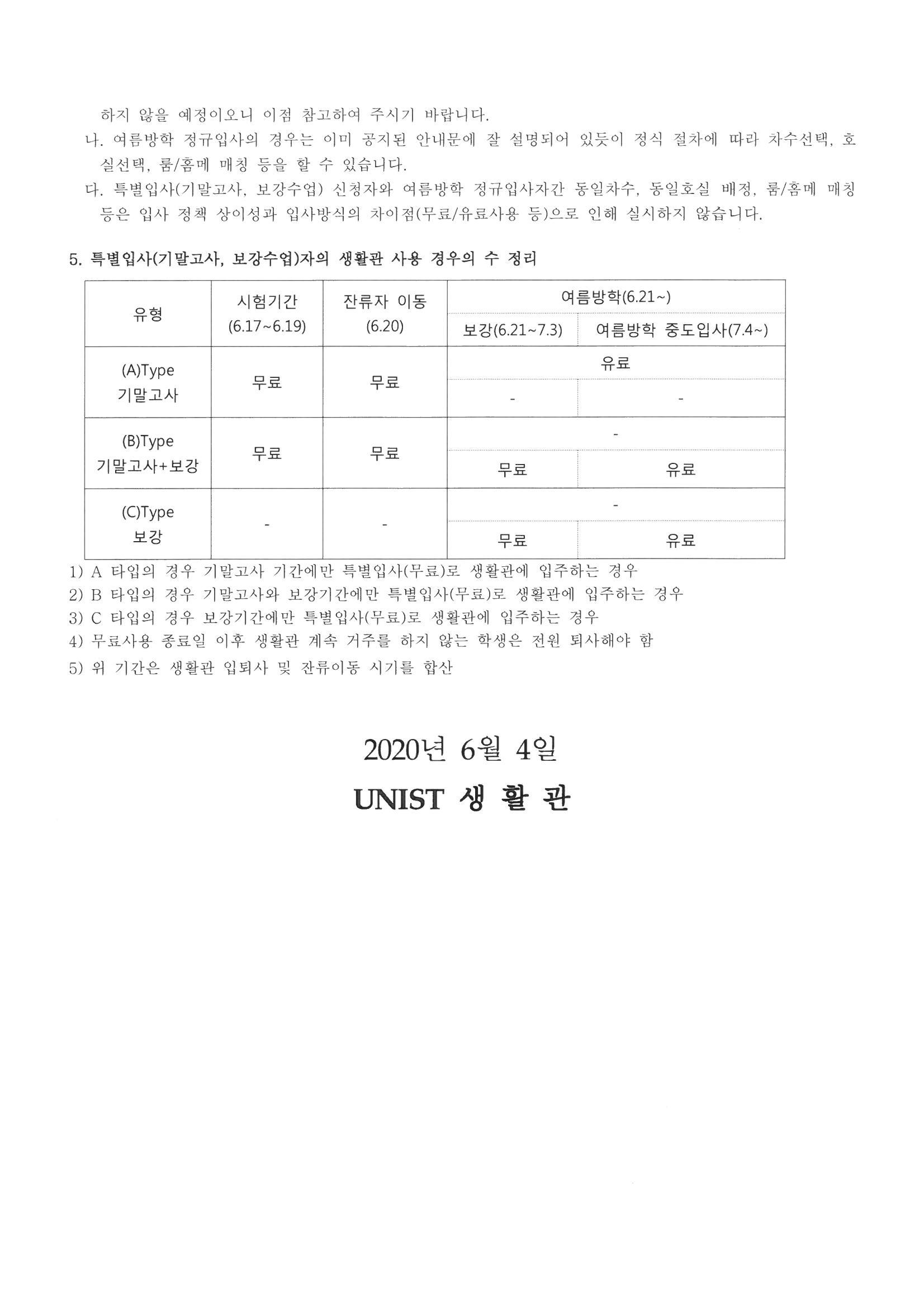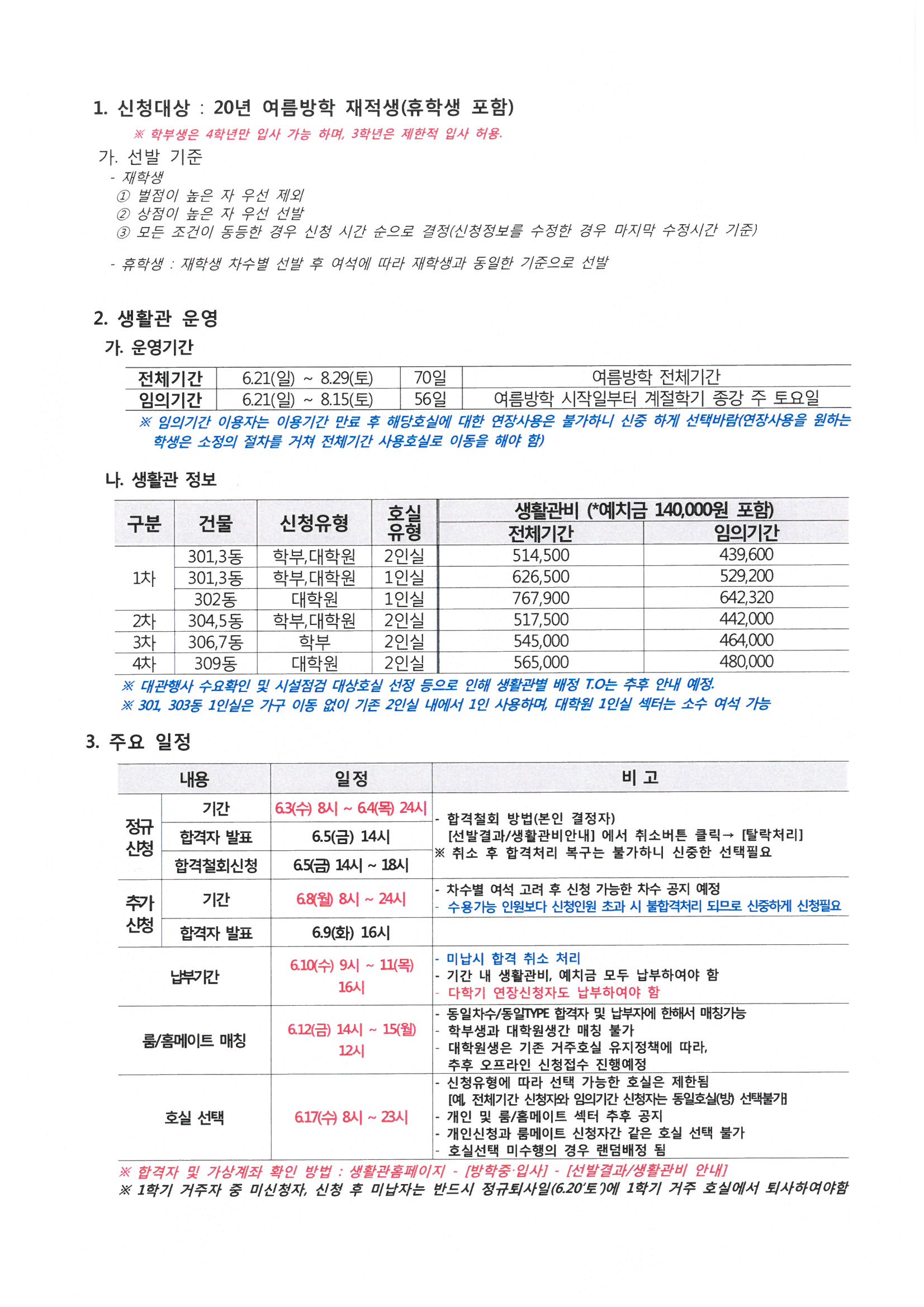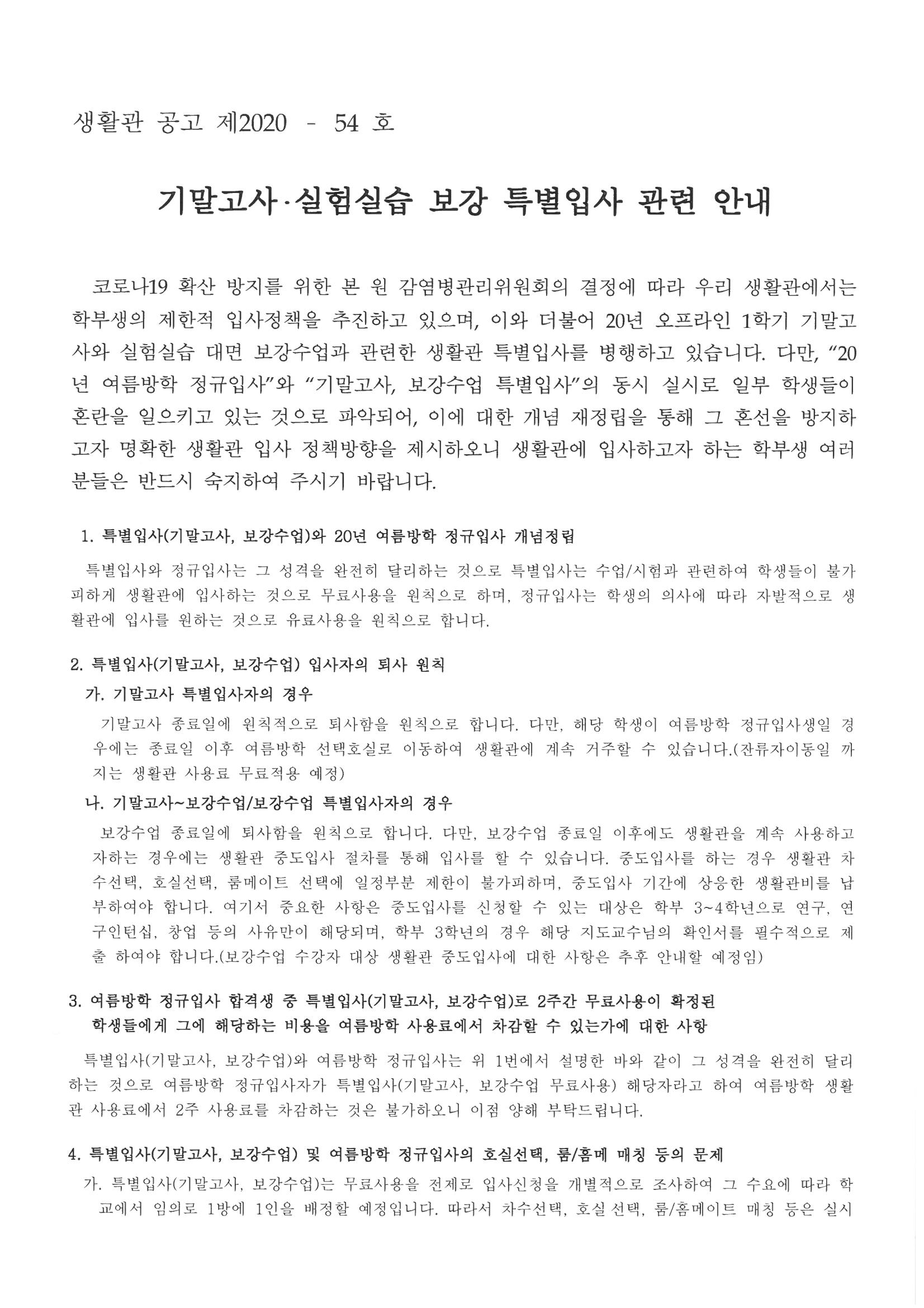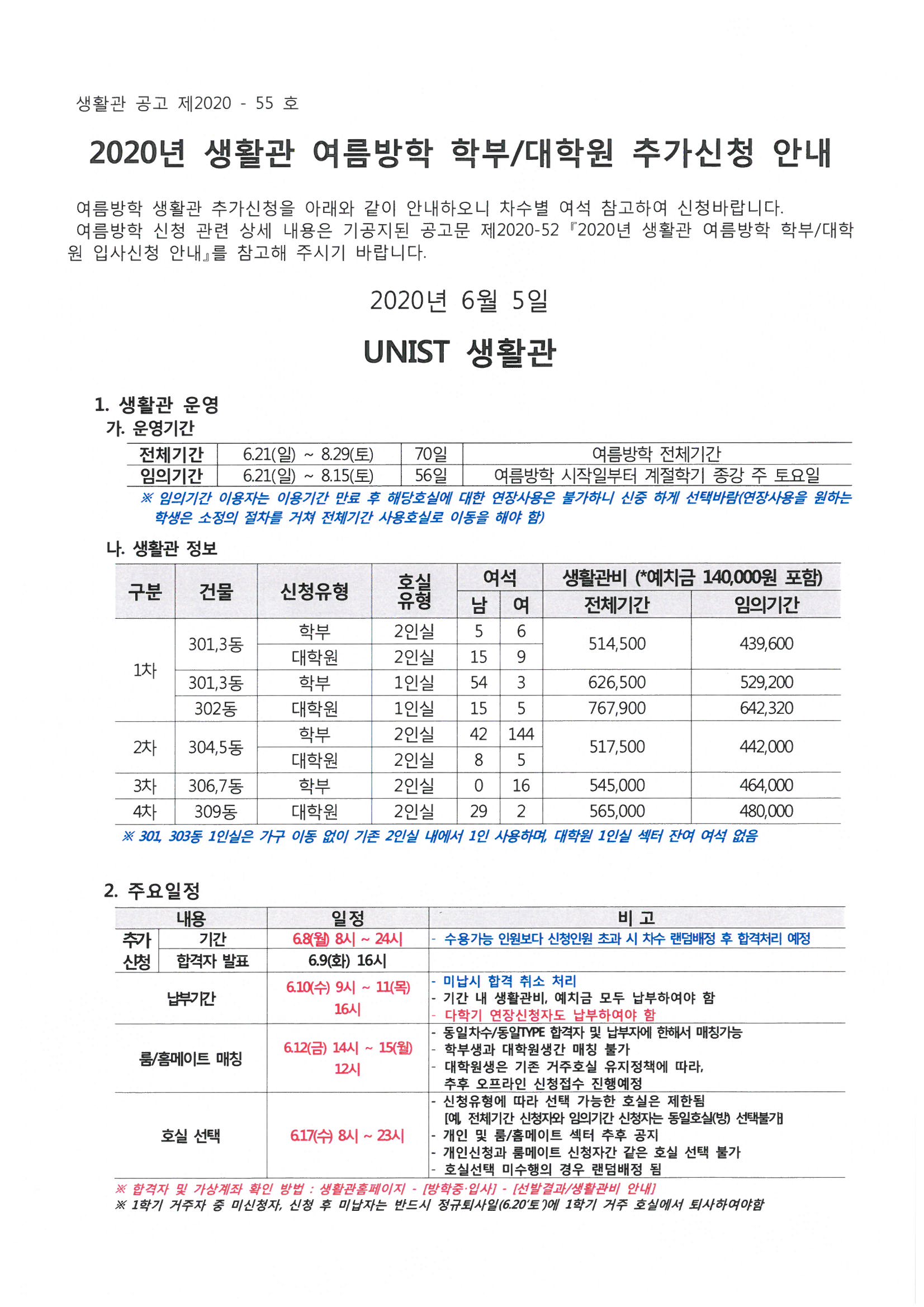| 357 | (No.2020-55) 2020년 생활관 여름방학 학부/대학원 추가신청.. | 2020-06-05 | 3663 |