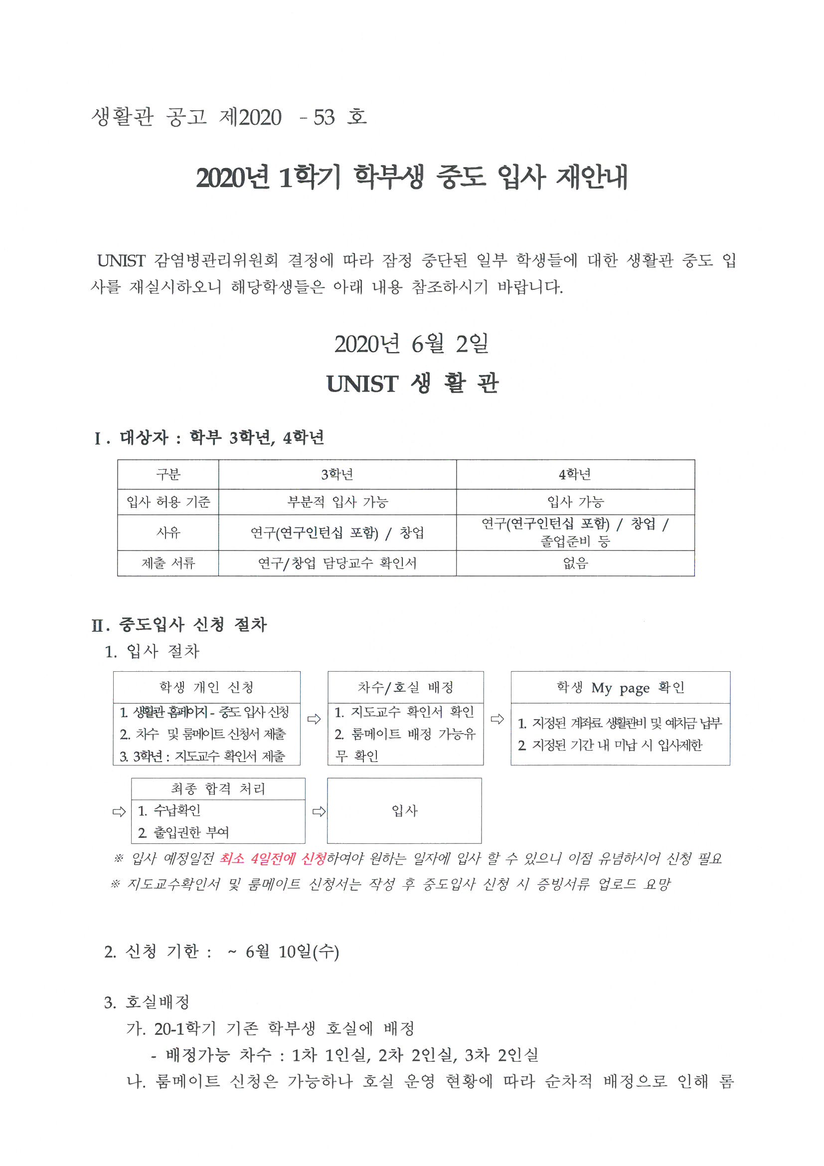 | 355 | (No.2020-53) 2020년 1학기 학부생 중도 입사 재안내 | 2020-06-02 | 2066 |