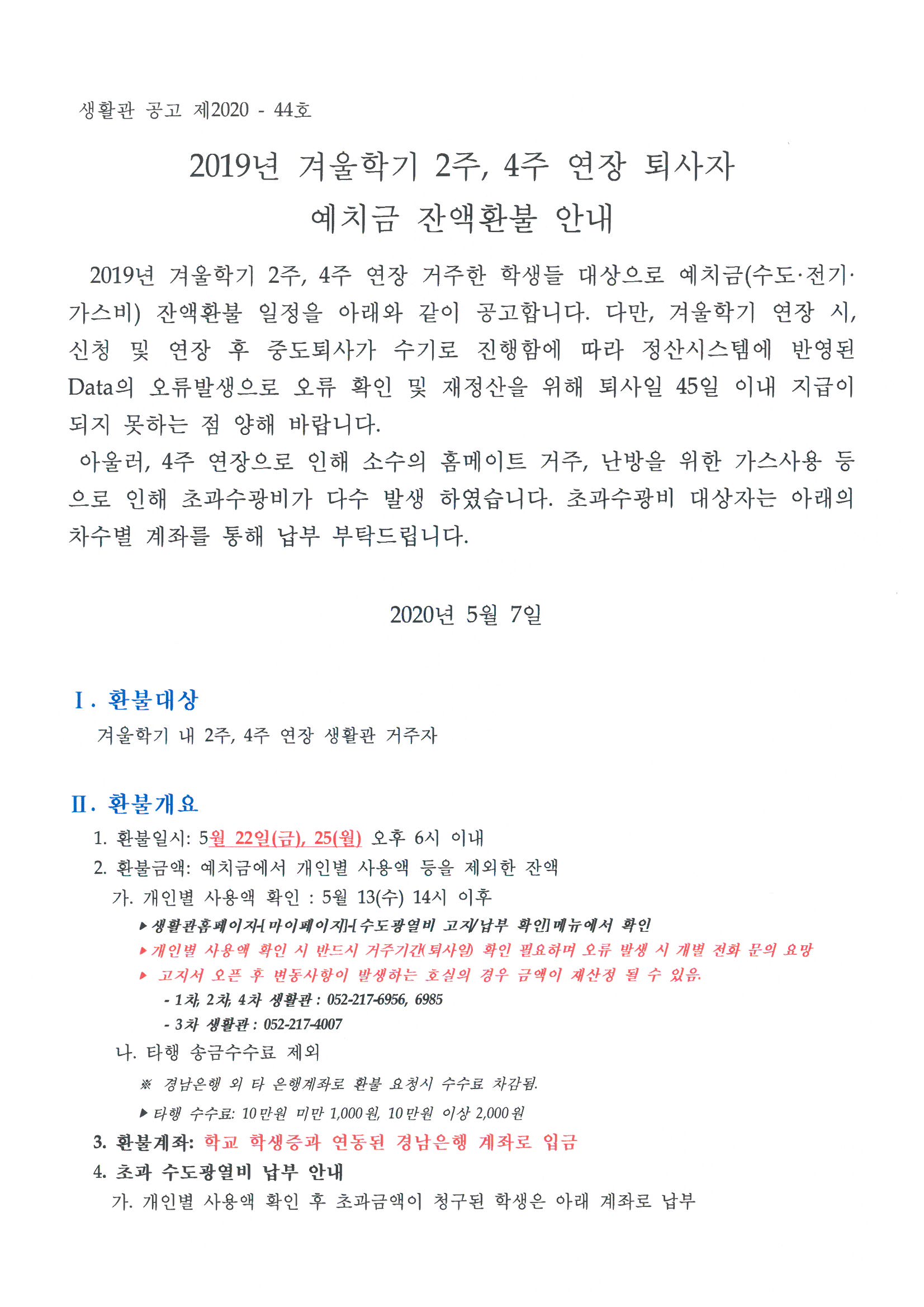 | 342 | (No.2020-44) 2019년 겨울학기 2주, 4주 연장 퇴사자 예치.. | 2020-05-07 | 2293 |