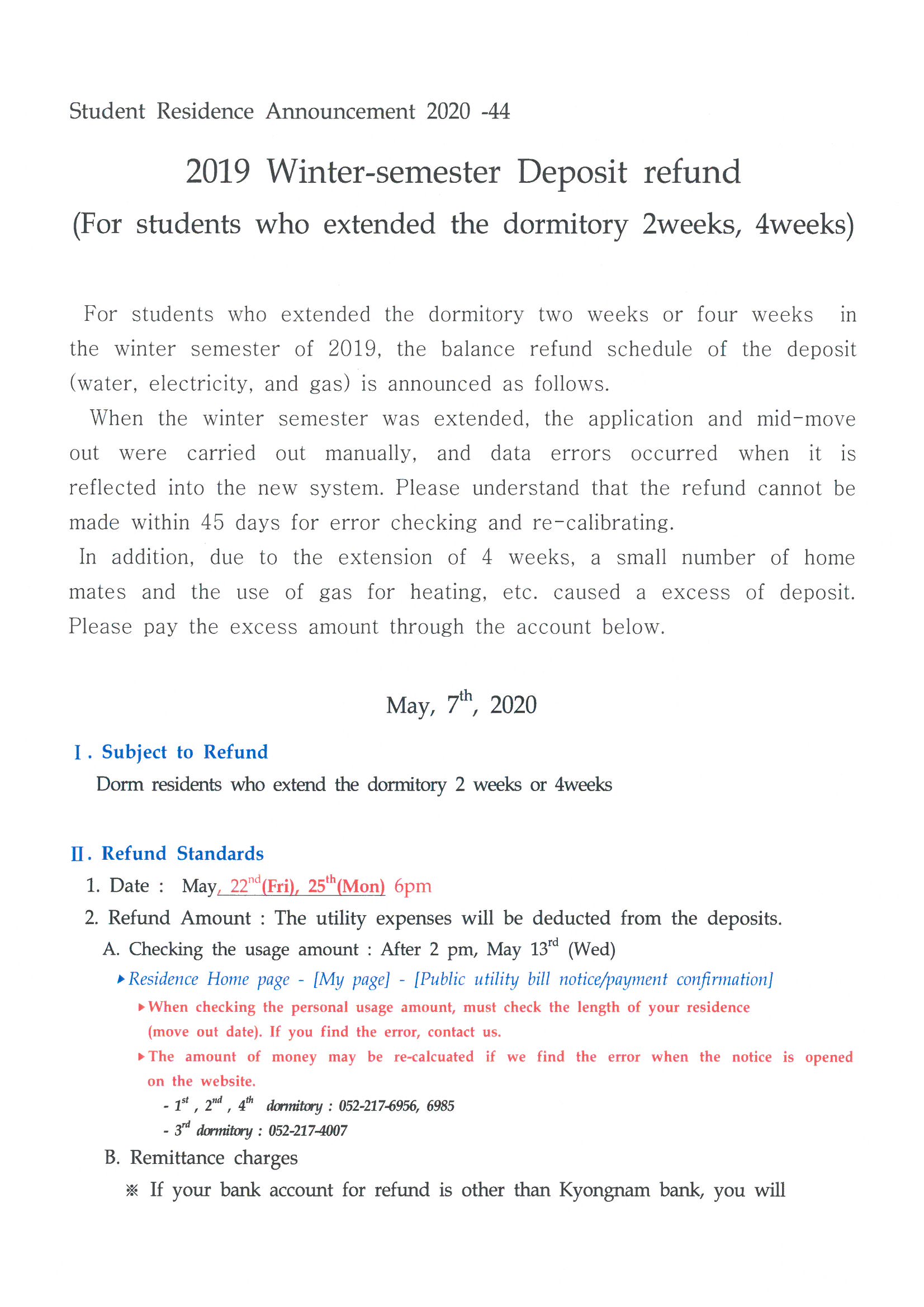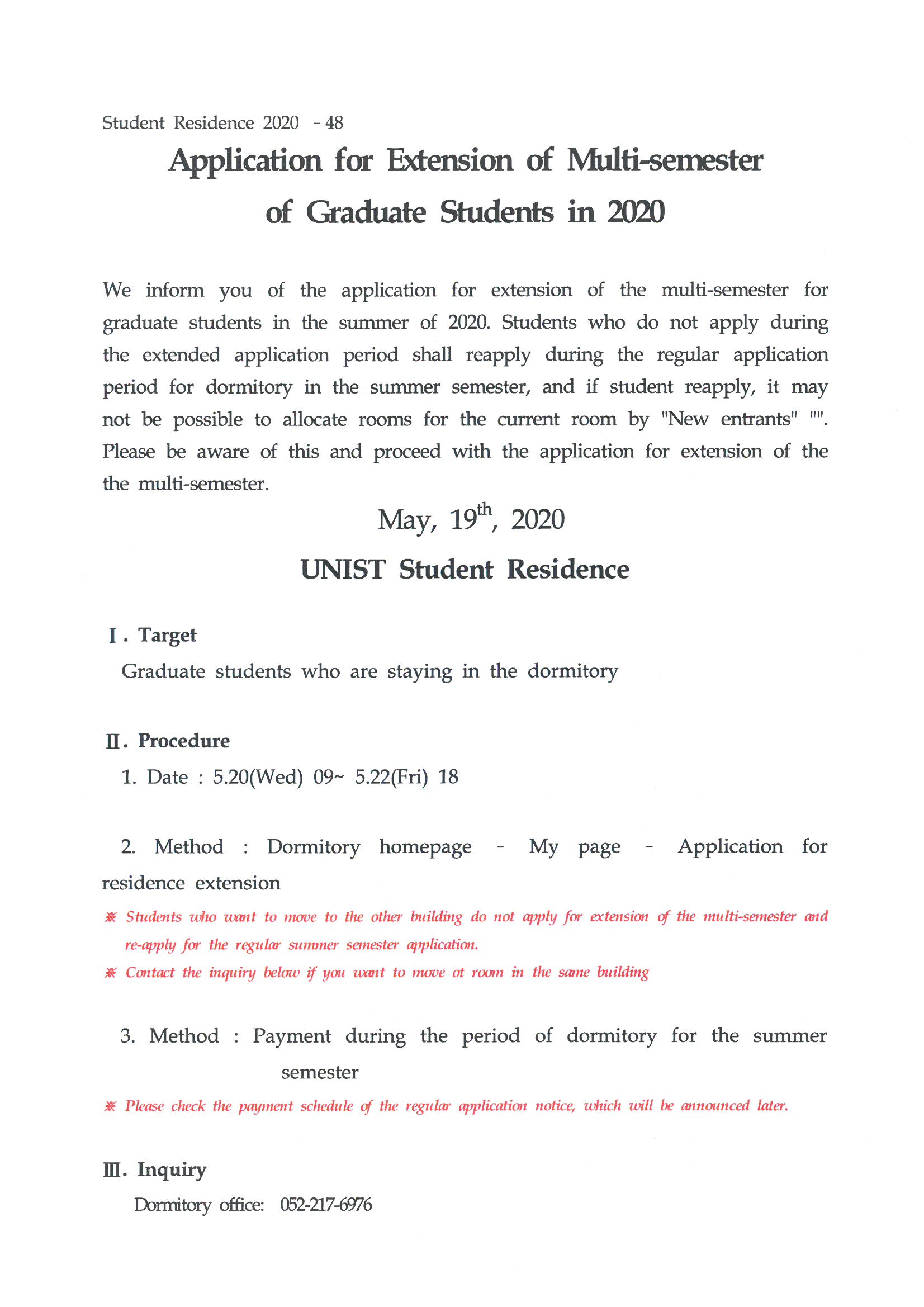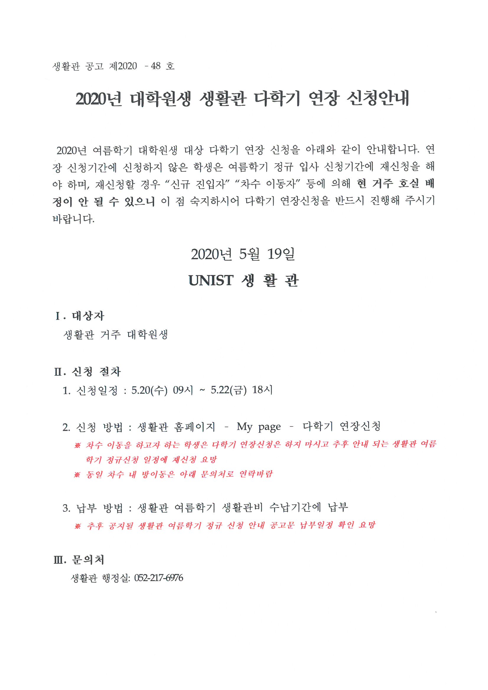| 348 | (No.2020-48) 2020년 대학원생 생활관 다학기 연장 신청안내.. | 2020-05-19 | 3108 |