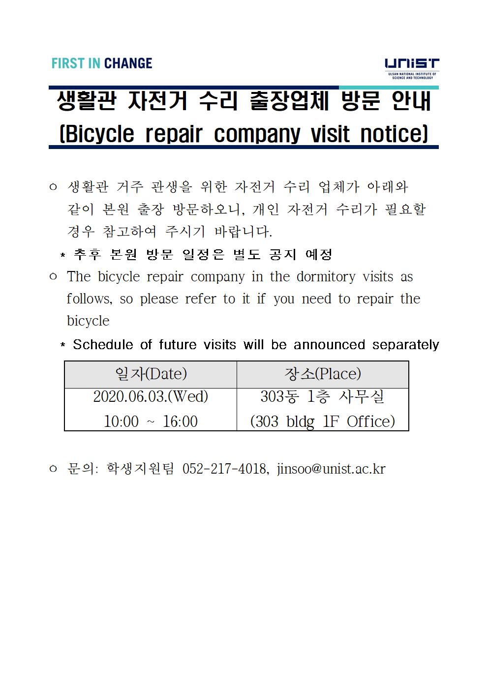 | 350 | 생활관 자전거 수리 출장업체 방문 안내(Bicycle repair com.. | 2020-05-26 | 1827 |