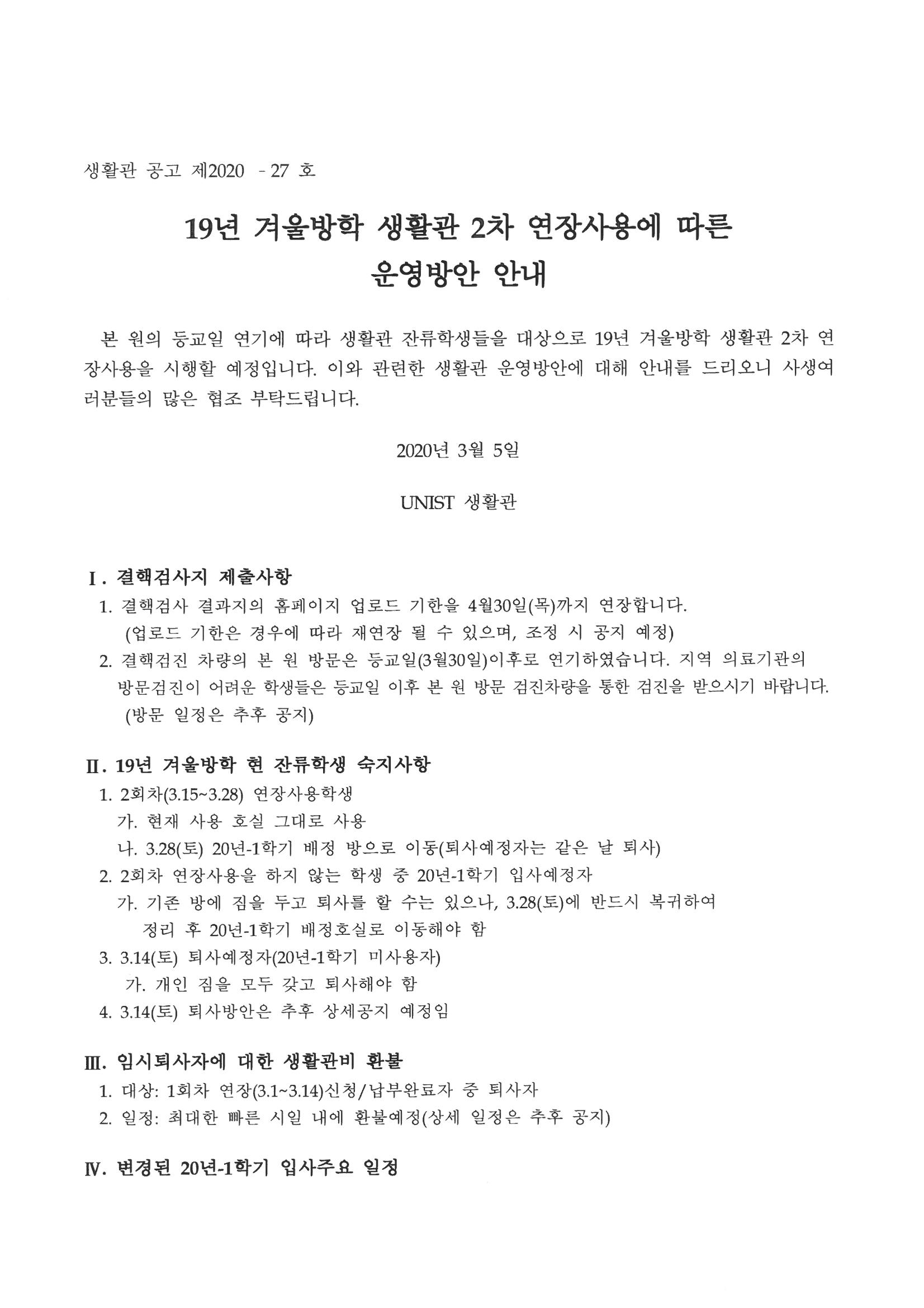 | 309 | (No.2020-27) 19년 겨울방학 생활관 2차 연장사용에 따른 운.. | 2020-03-05 | 3987 |