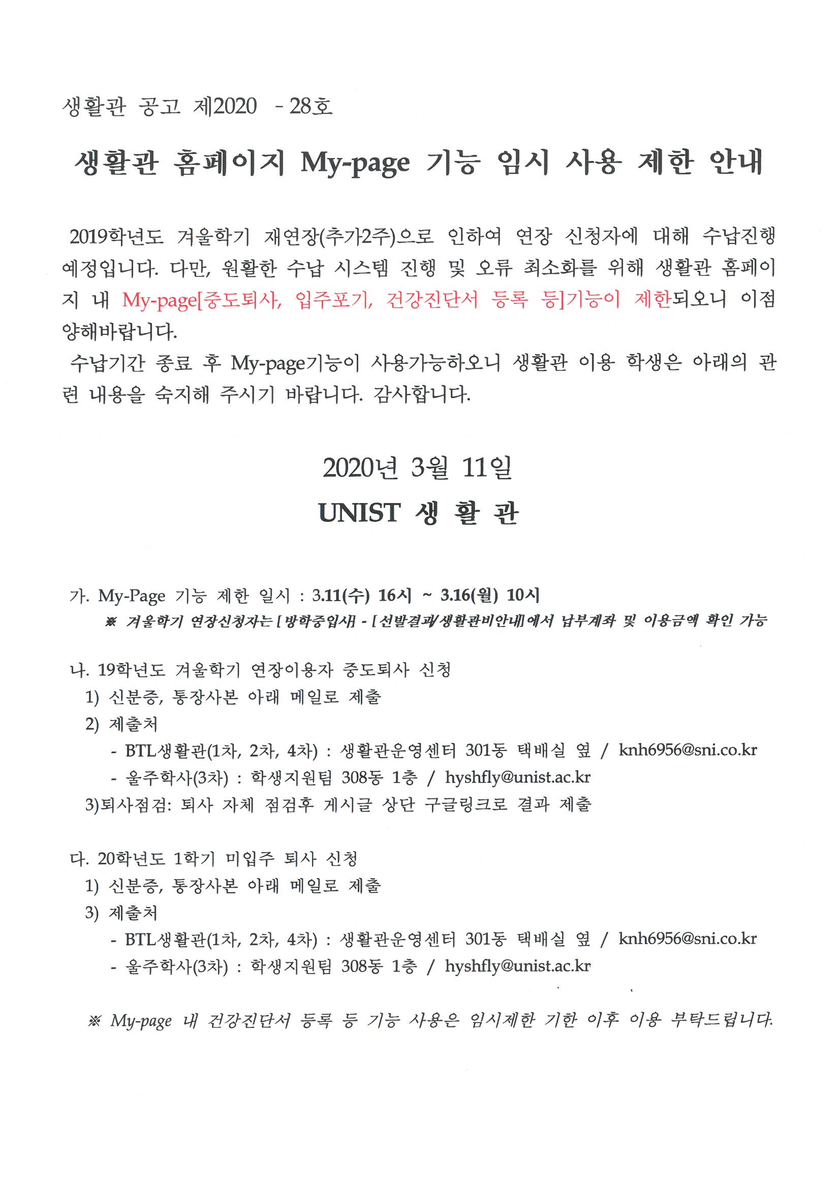 | 311 | (No.2020-28) 생활관 홈페이지 My-page 기능 임시 사용 제한.. | 2020-03-11 | 4964 |