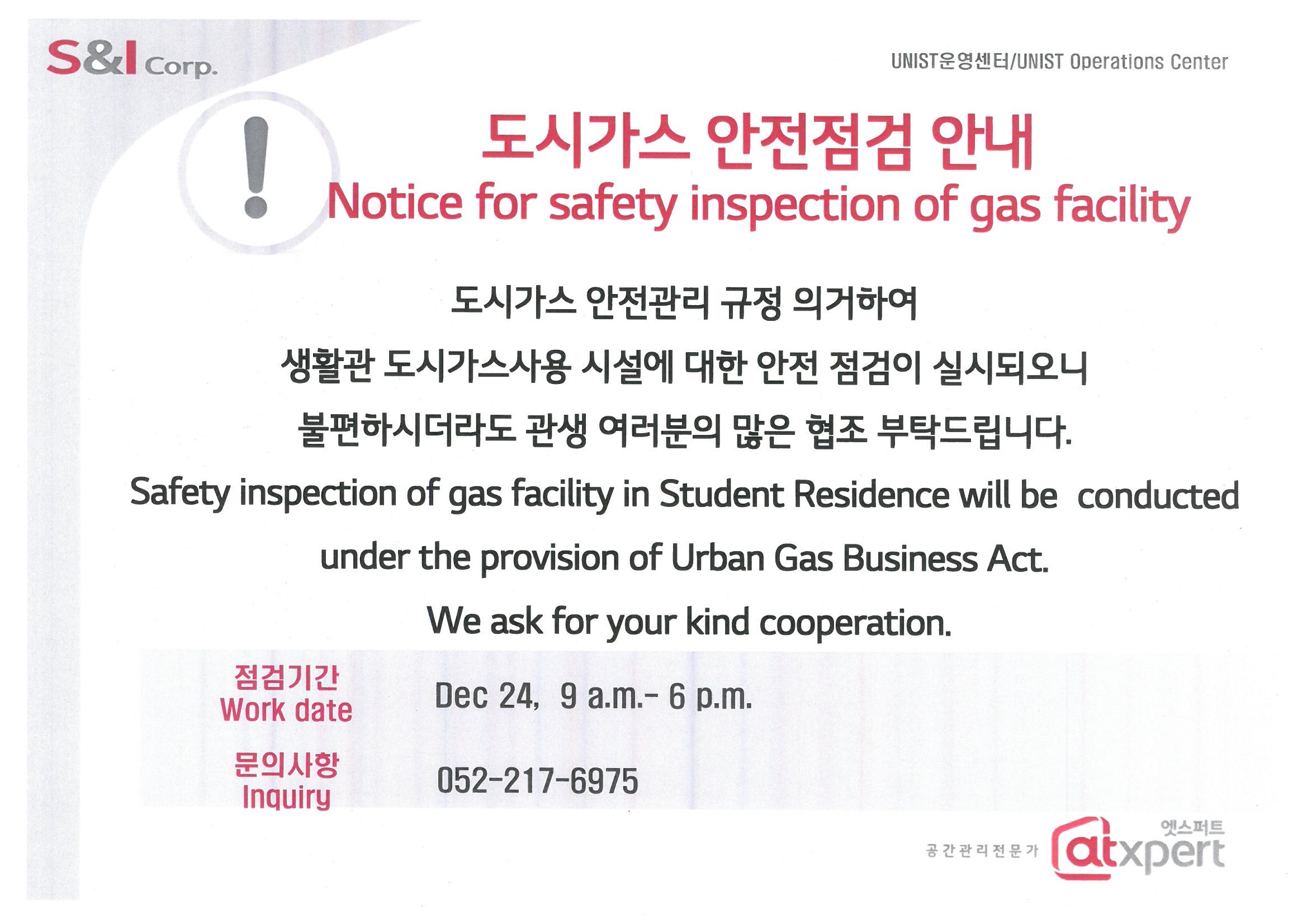 | 262 | 도시가스 안전점검 안내 Notice for safety inspection of g.. | 2019-12-23 | 1696 |