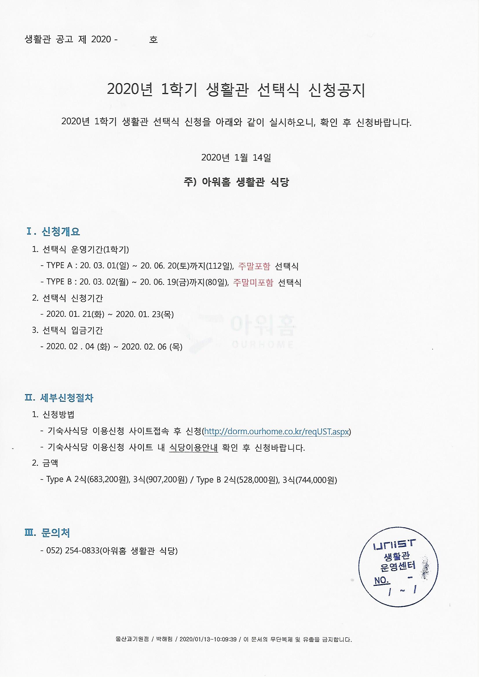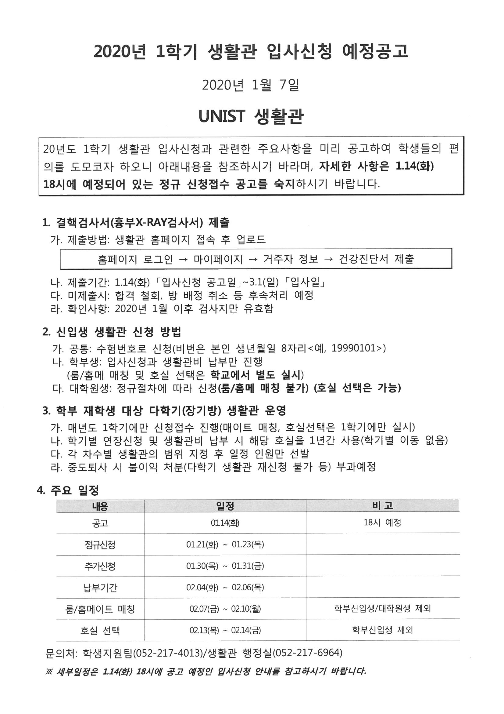 | 269 | 2020년 UNIST 생활관 연간 주요 일정 | 2020-01-08 | 5250 |