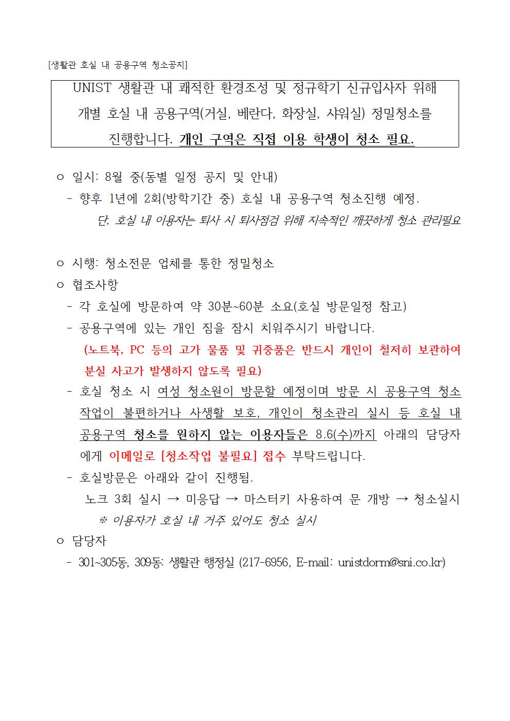 | 1041 | 생활관 호실 내 공용구역 청소 공지(Cleaning for common ar.. | 2025-08-04 | 1291 |