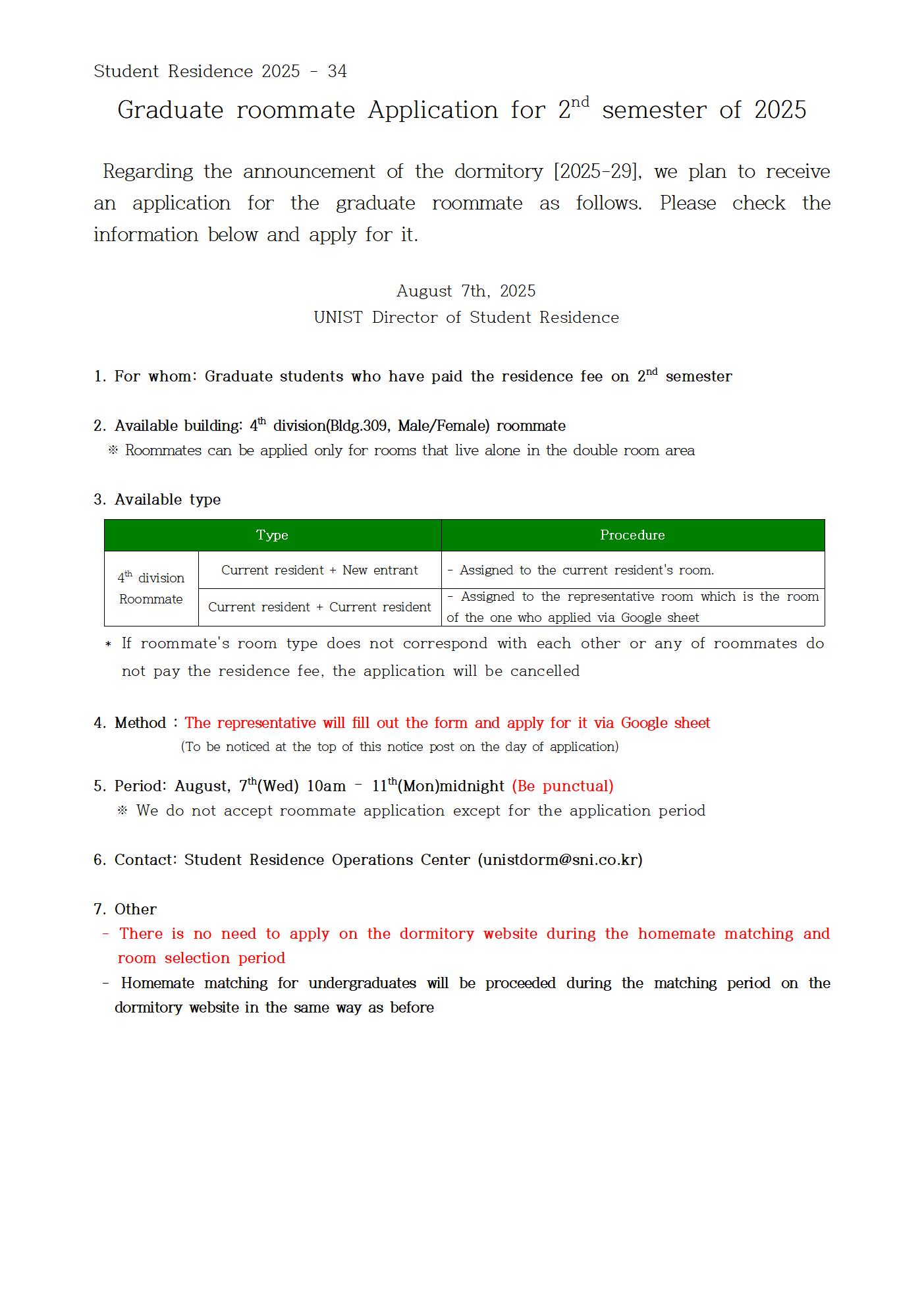| 1043 | [No.2025-34] 2025년 2학기 대학원 룸메이트 신청 안내(Grad.. | 2025-08-07 | 757 |