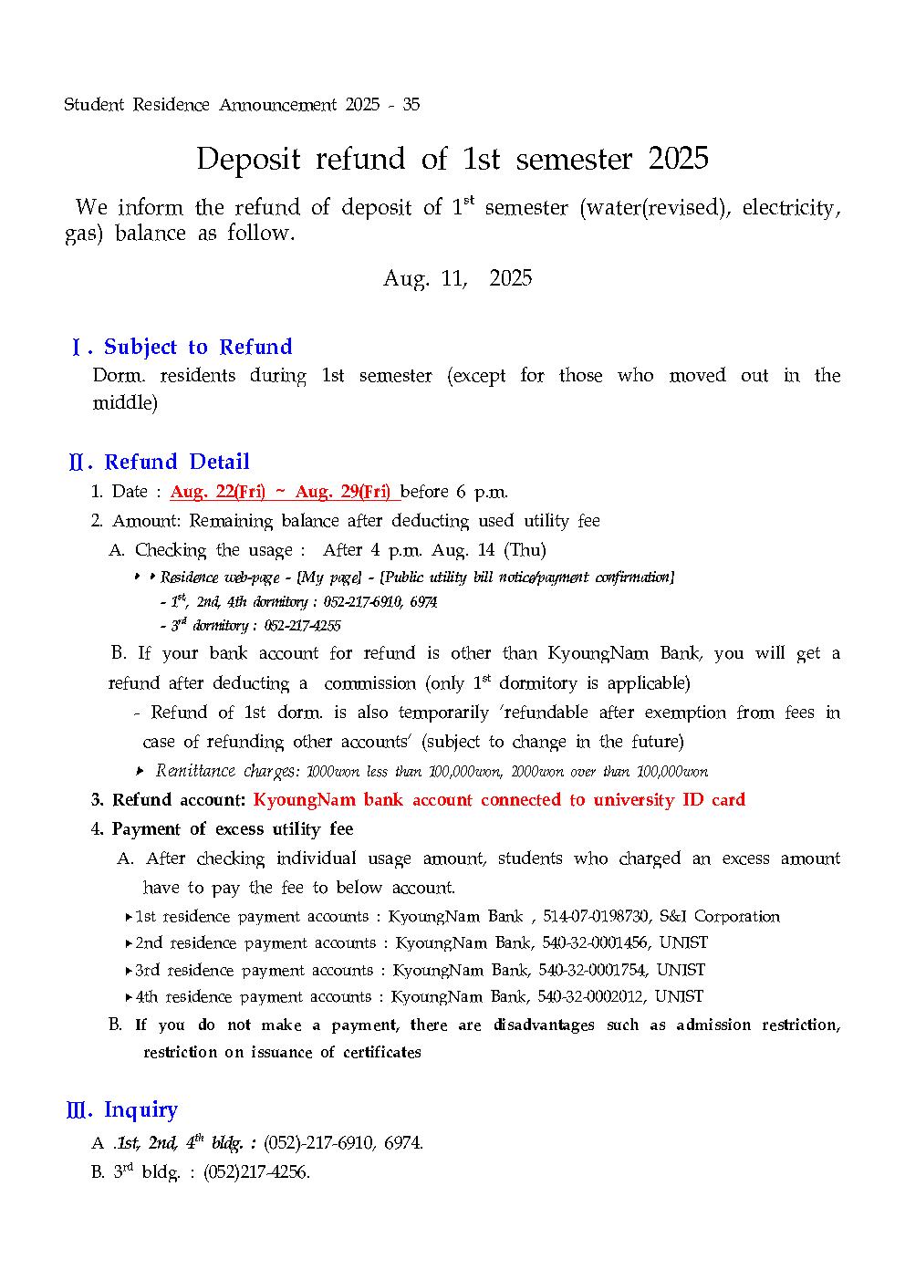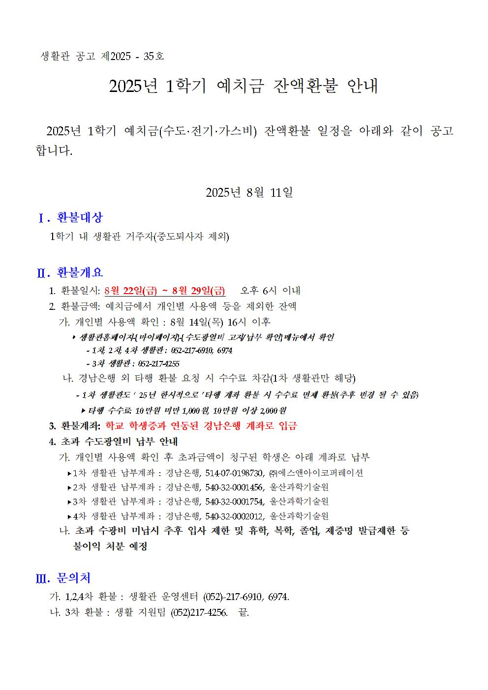 | 1044 | [No.2025-35] 2025년 1학기 예치금 잔액환불 안내(Deposit r.. | 2025-08-11 | 1570 |