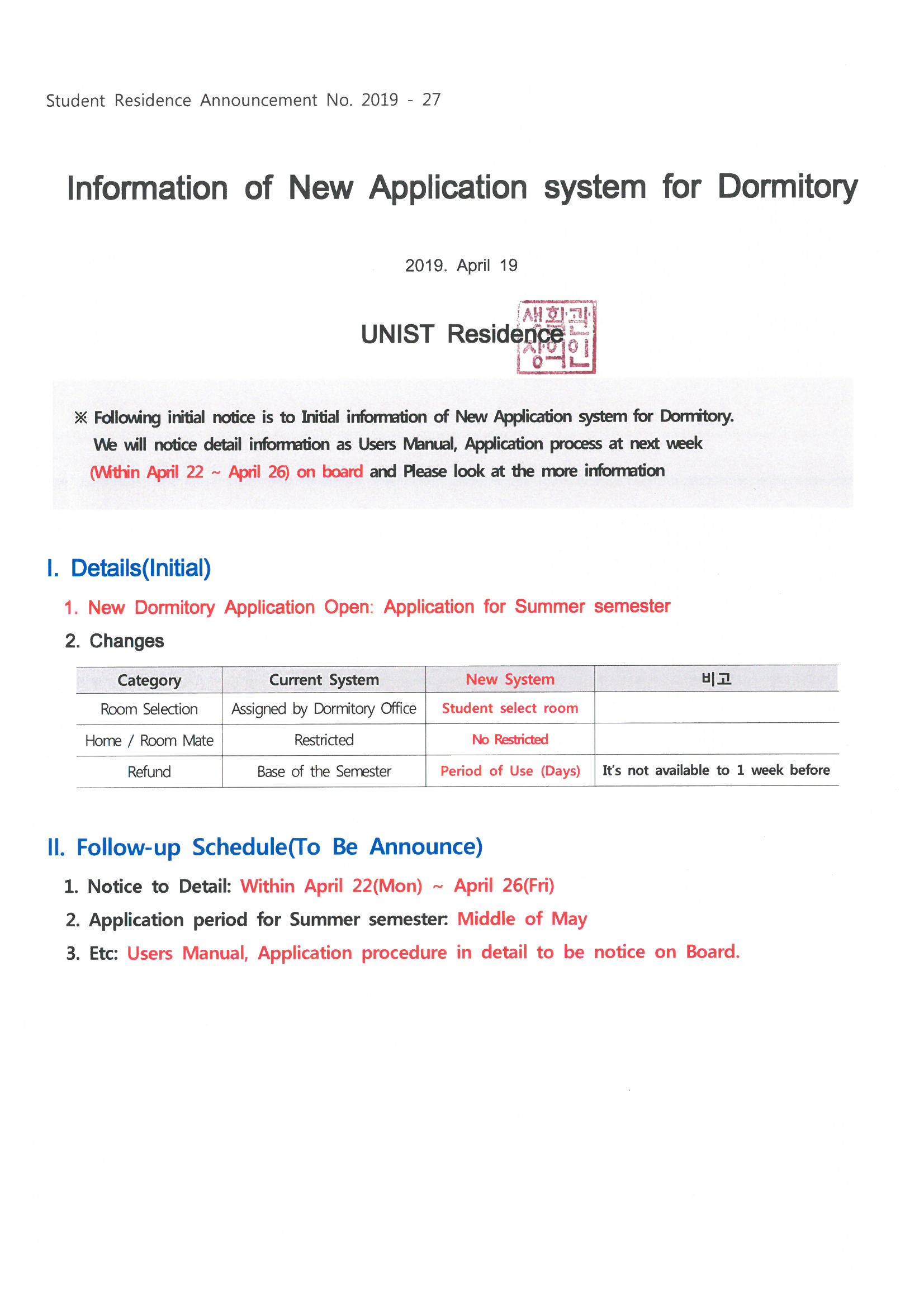 | 160 | (No.2019-29) 입사 신청 시스템 변경에 따른 안내 | 2019-04-27 | 1863 |