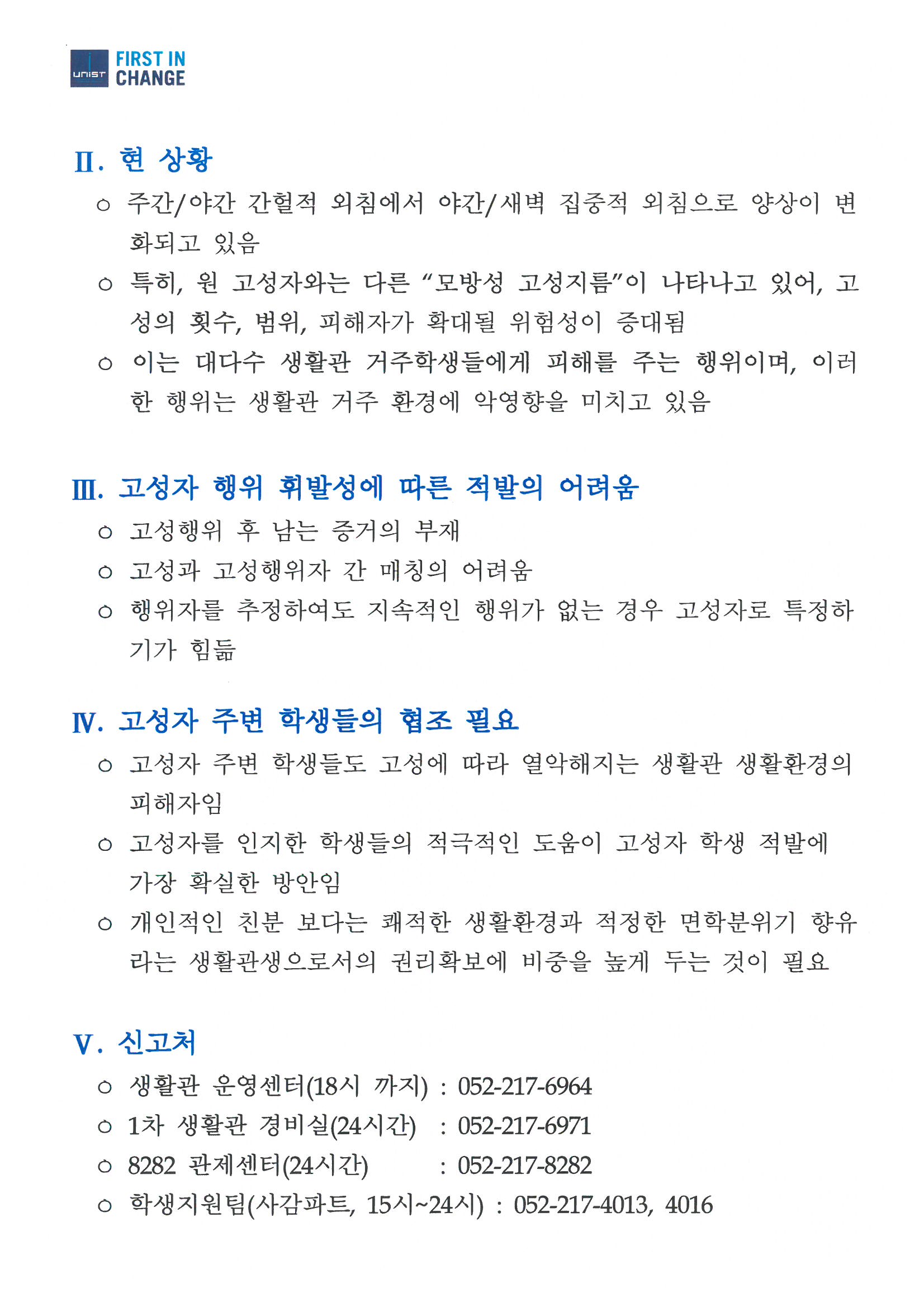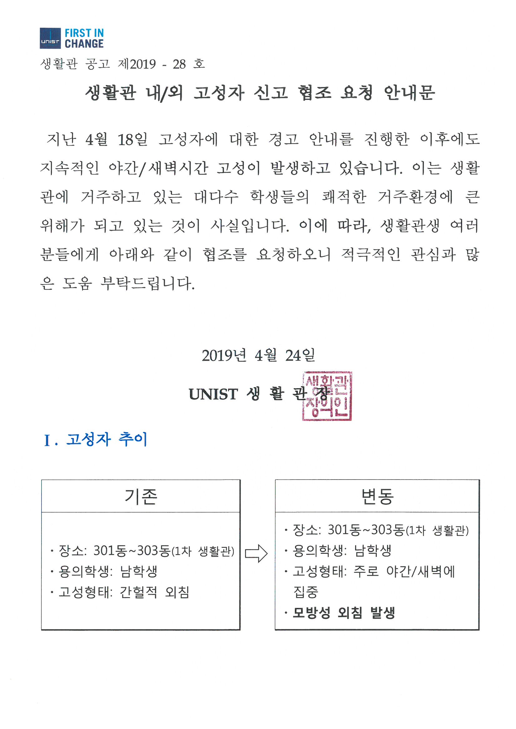 | 159 | (No.2019-28) 생활관 내/외 고성자 신고 협조 요청 안내문 | 2019-04-25 | 1741 |