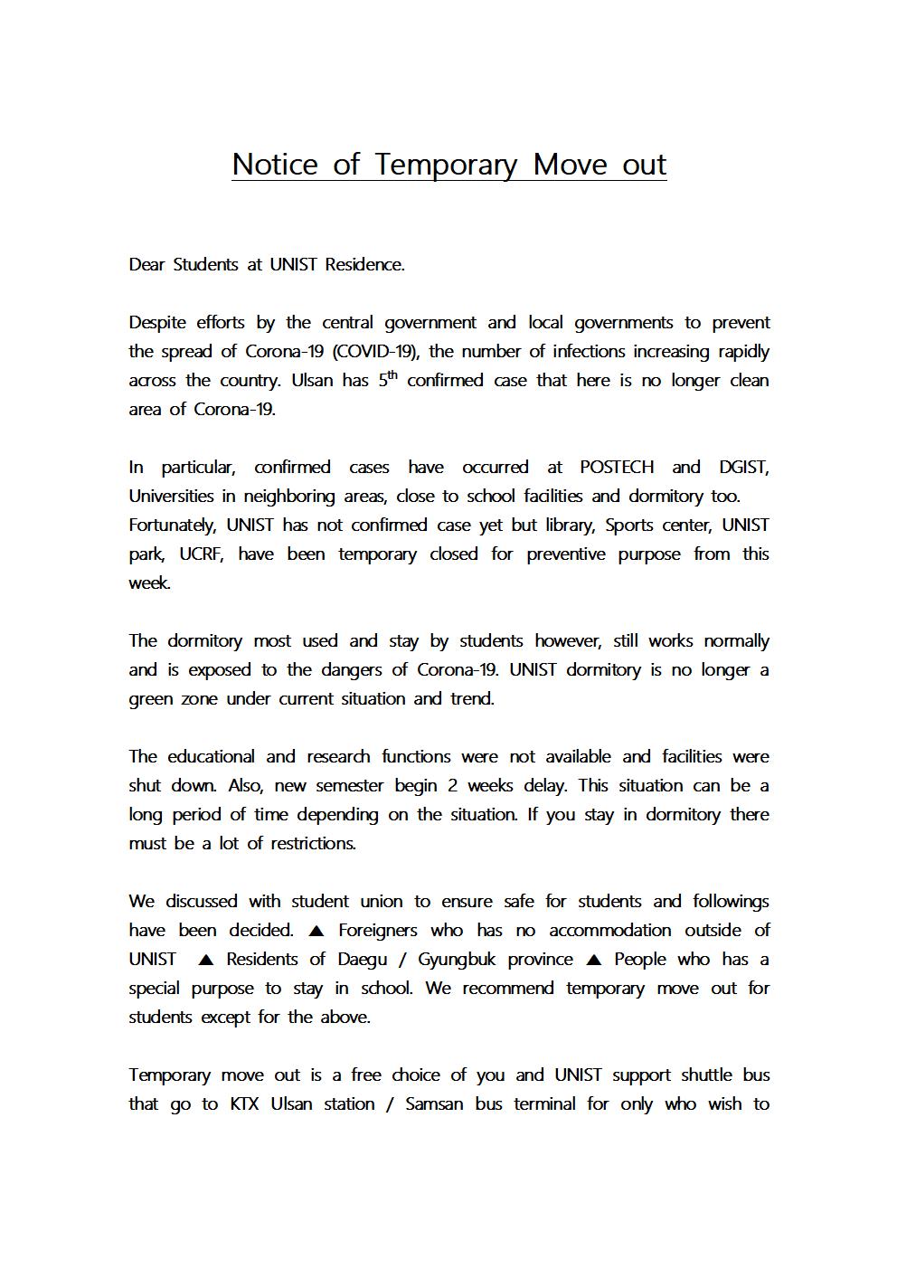 | 9 | Notice of Temporary Move out (임시퇴사 공고문) | 2020-02-26 | 635 |